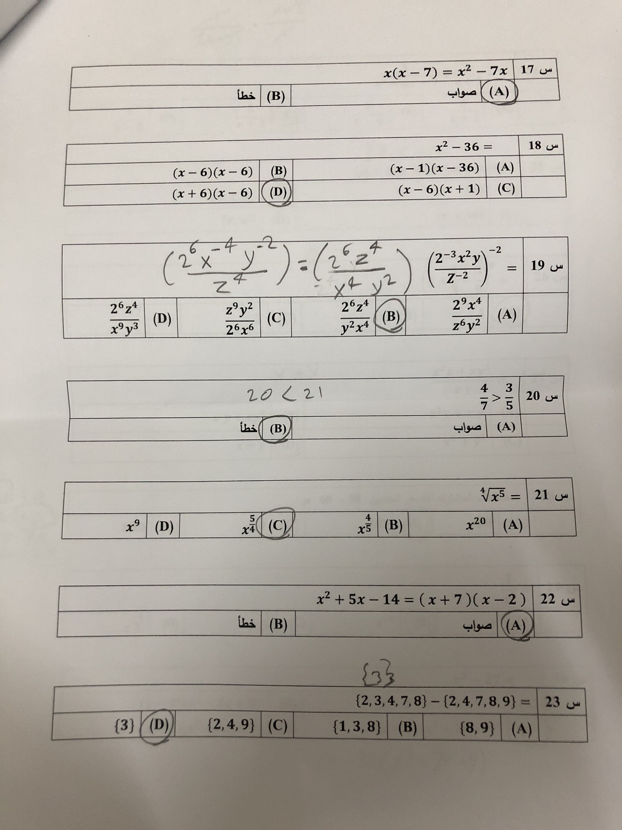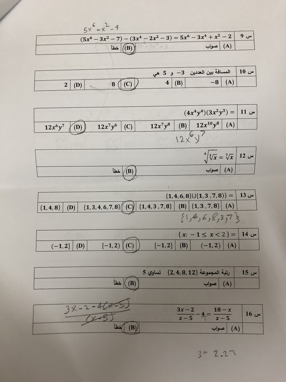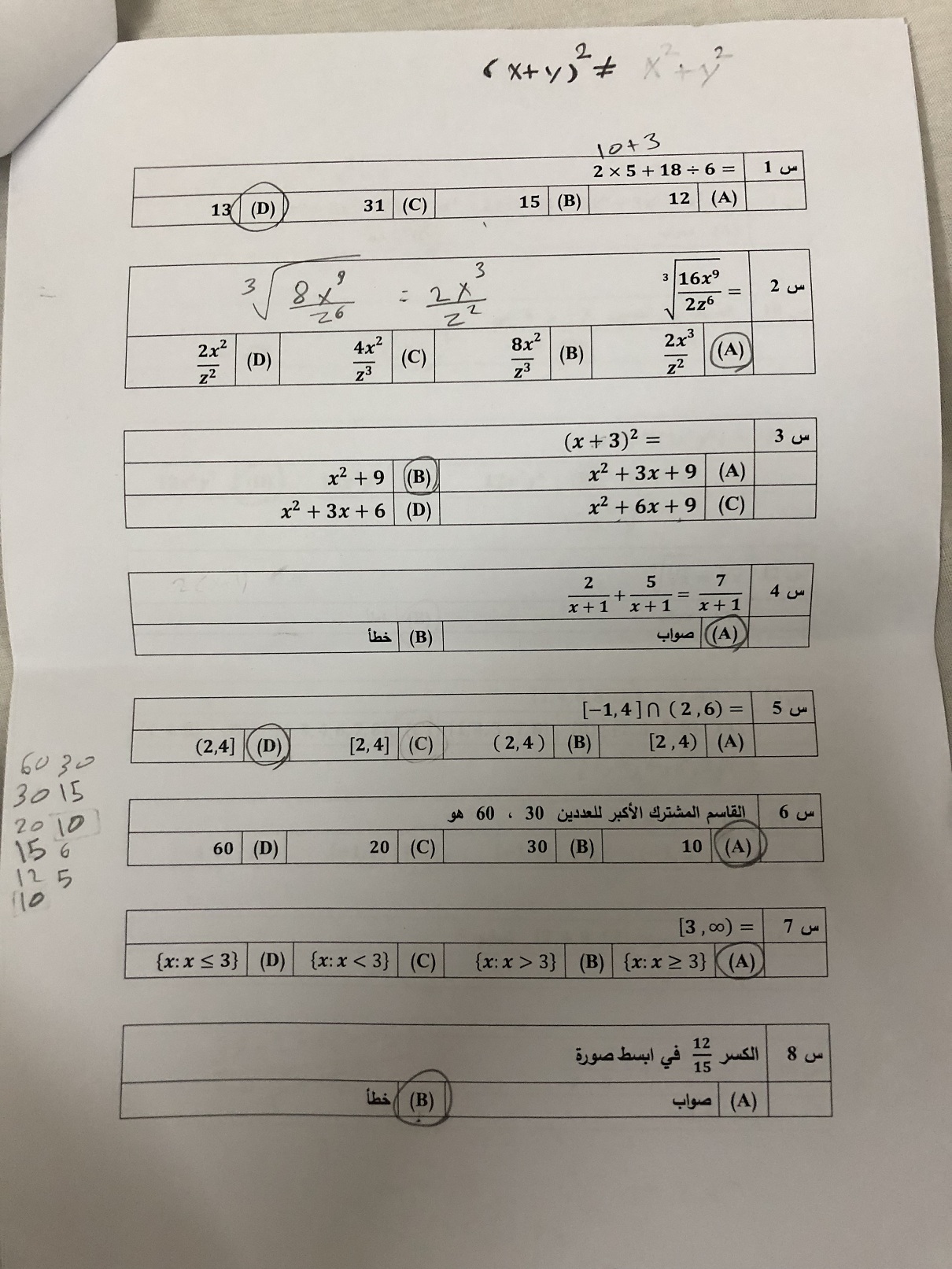 أسئلة اختبار مادة الرياضيات math 111 الفصل الدراسي الأول 1438 نموذج د جامعة الملك عبد العزيز