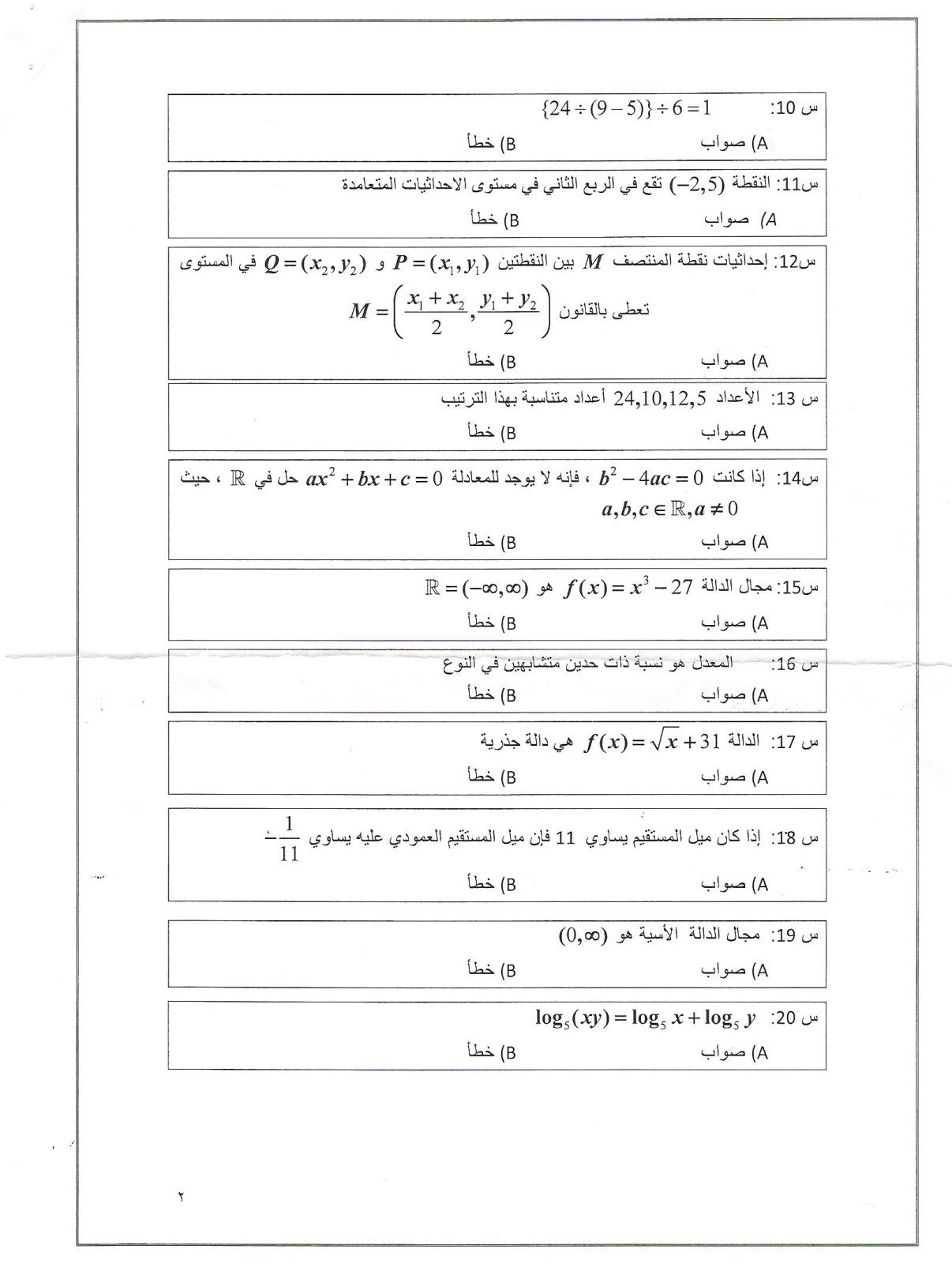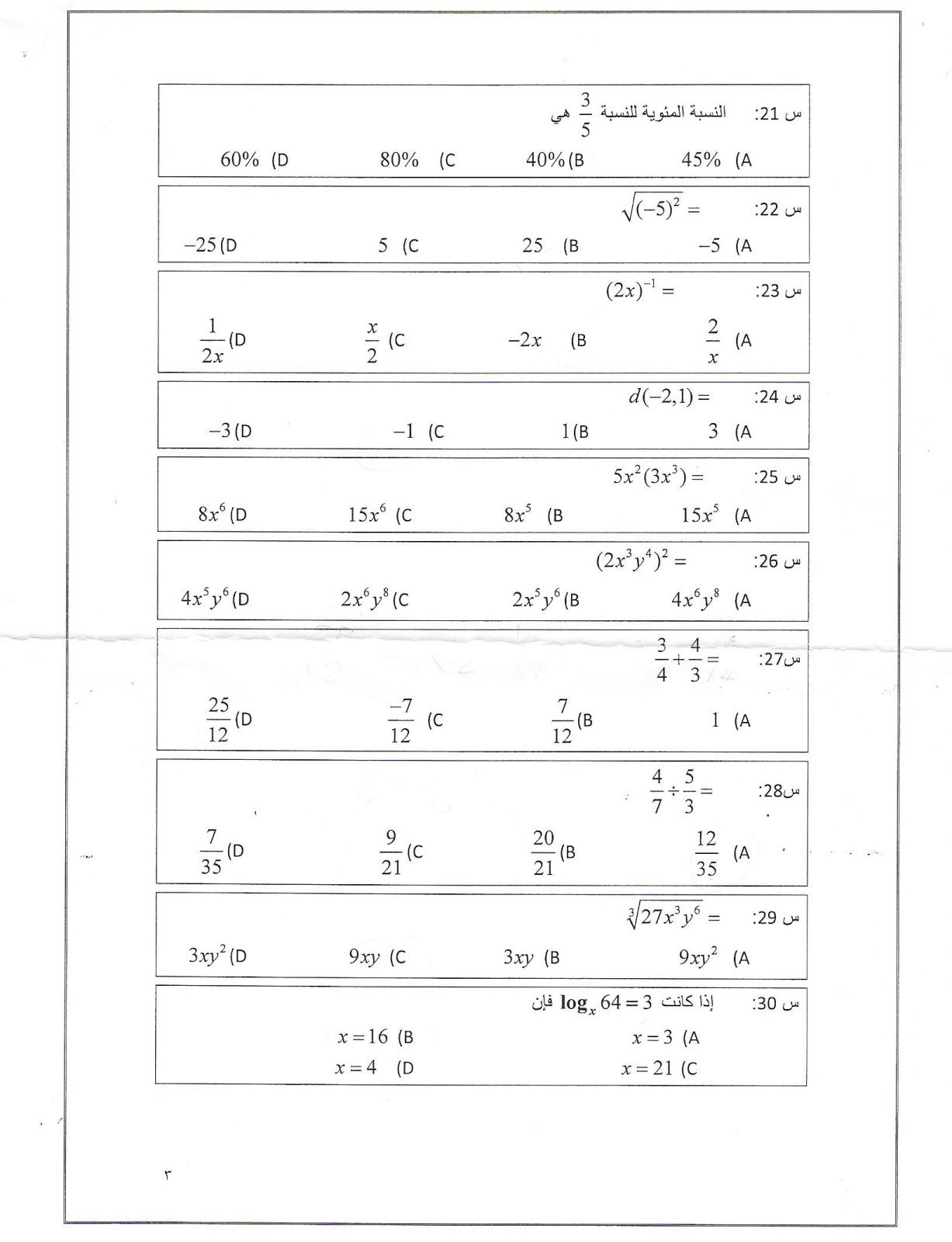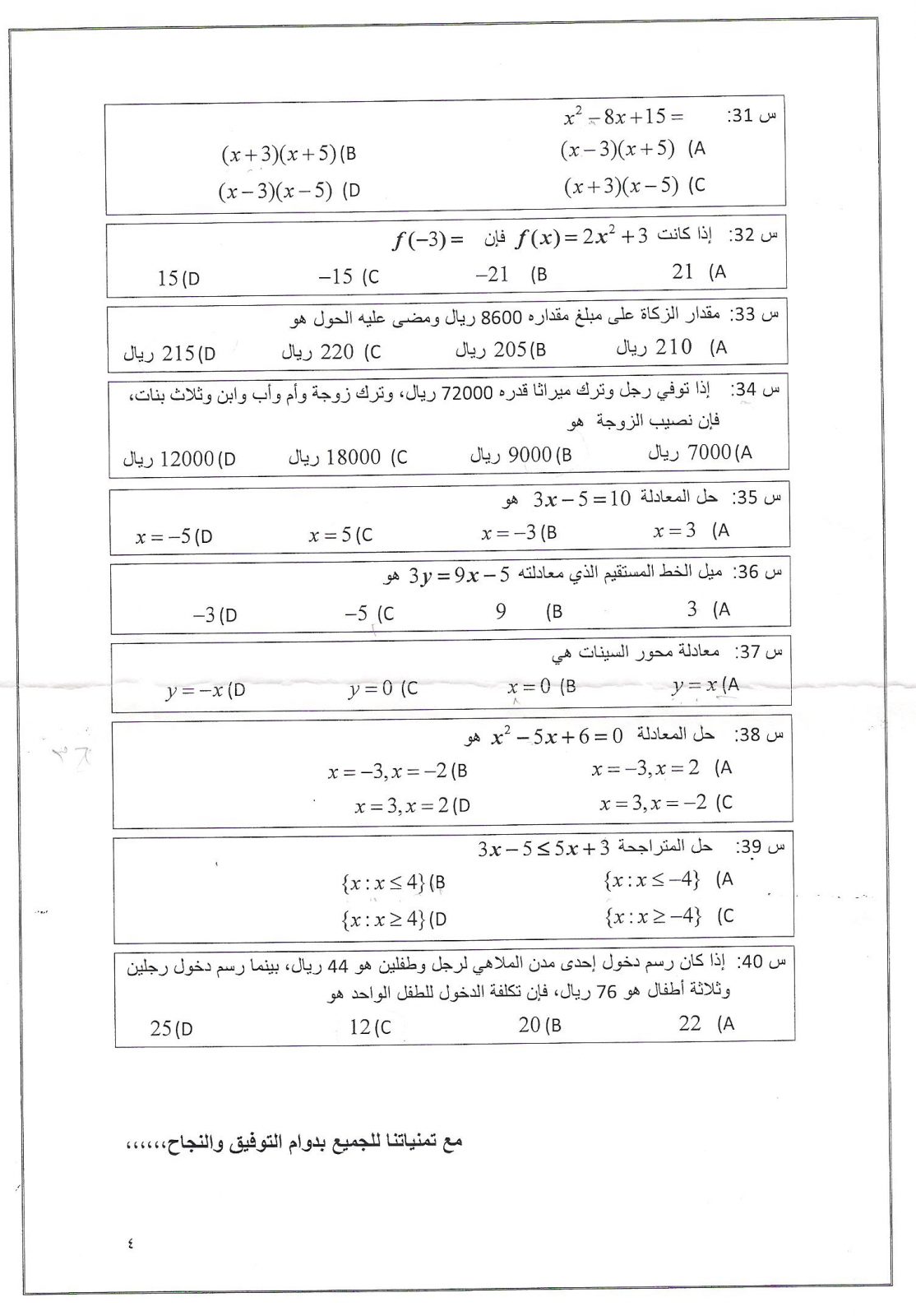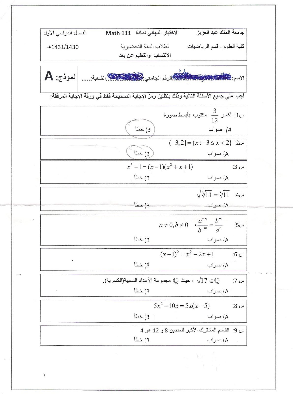 أسئلة اختبار مادة الرياضيات math111 الفصل الدراسي الأول 1432 نموذج A