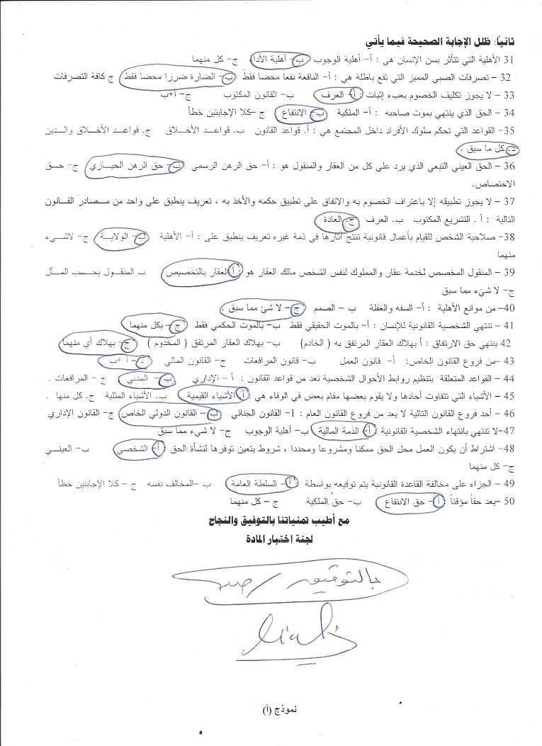 أسئلة اختبار مادة القانون التجاري BL221 الفصل الدراسي الأول 1433 انتساب
