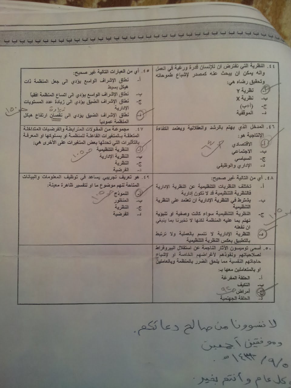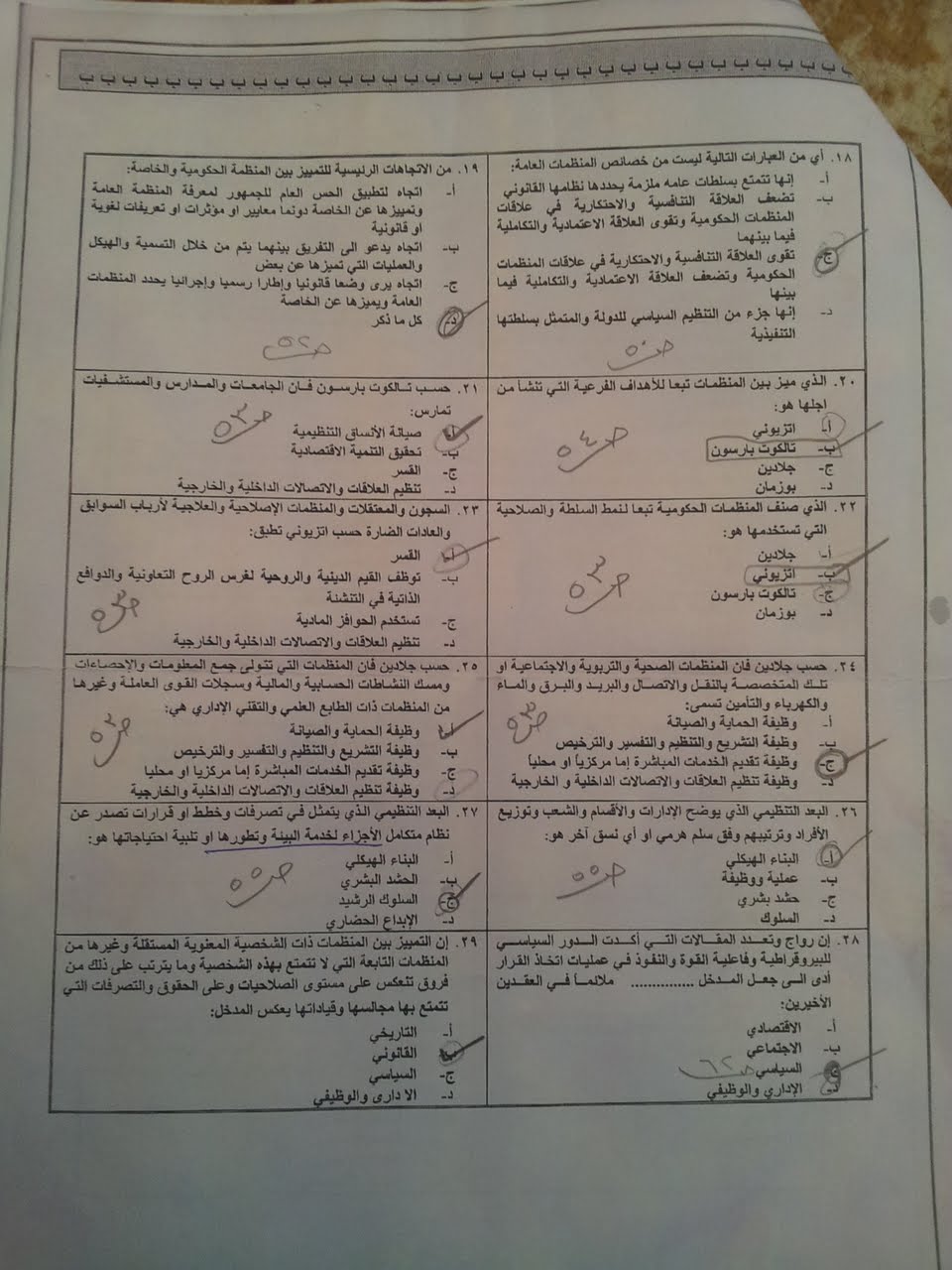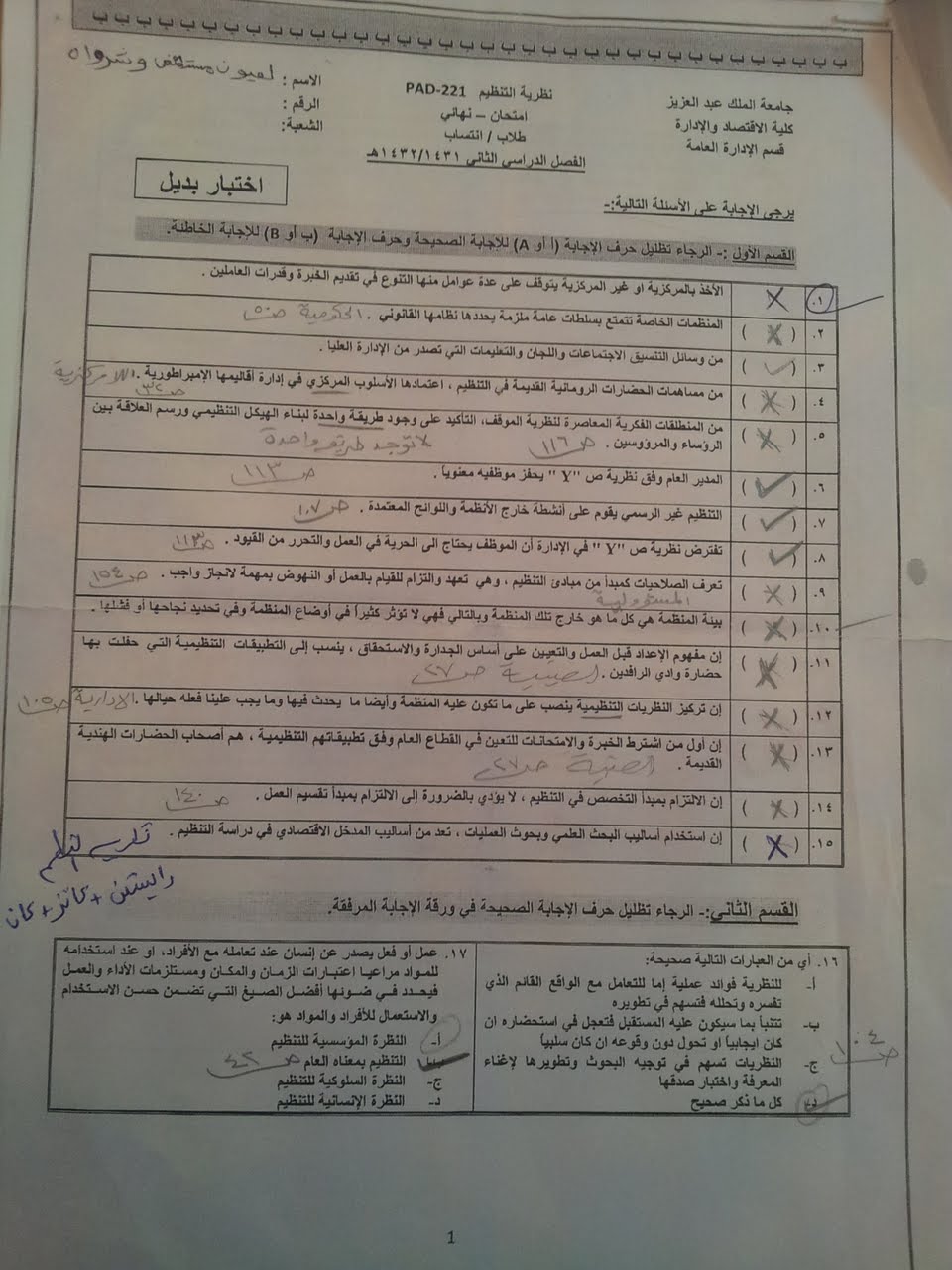 أسئلة اختبار مادة نظرية التنظيم pad 221 الفصل الثاني 1431هـ نموذج ب جامعة الملك عبد العزيز