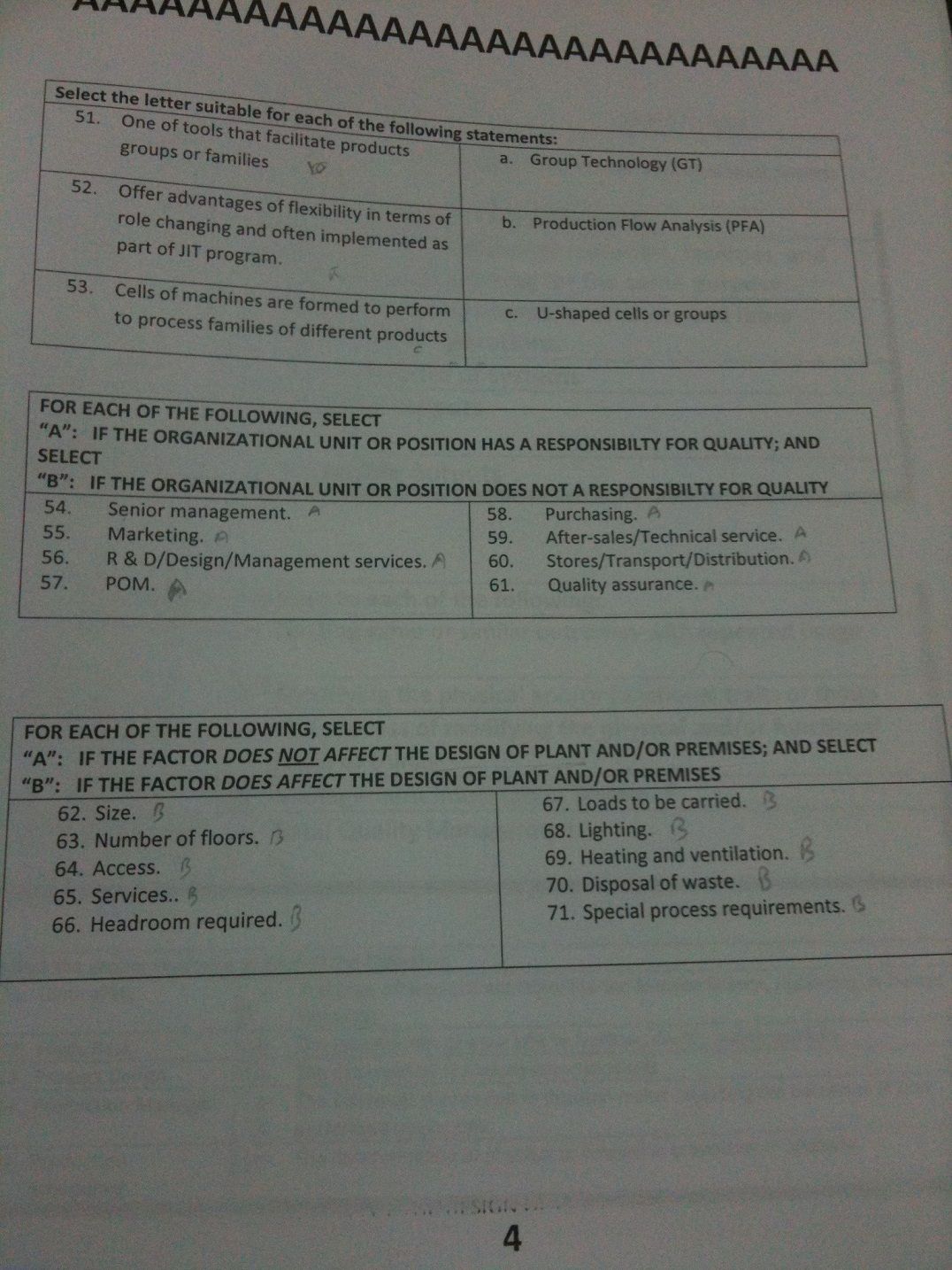 أسئلة اختبار مادة ادارة العمليات والجودة بالانجليزي BUS 462 للعام الدراسي 2010 نموذج أ - جامعة الملك عبد العزيز