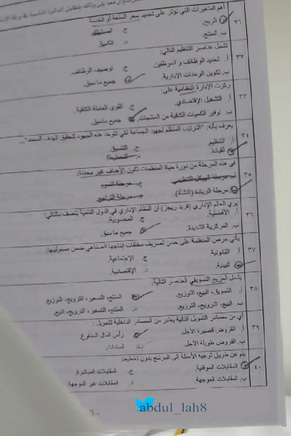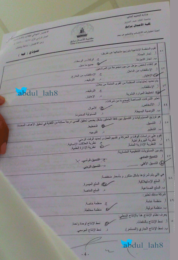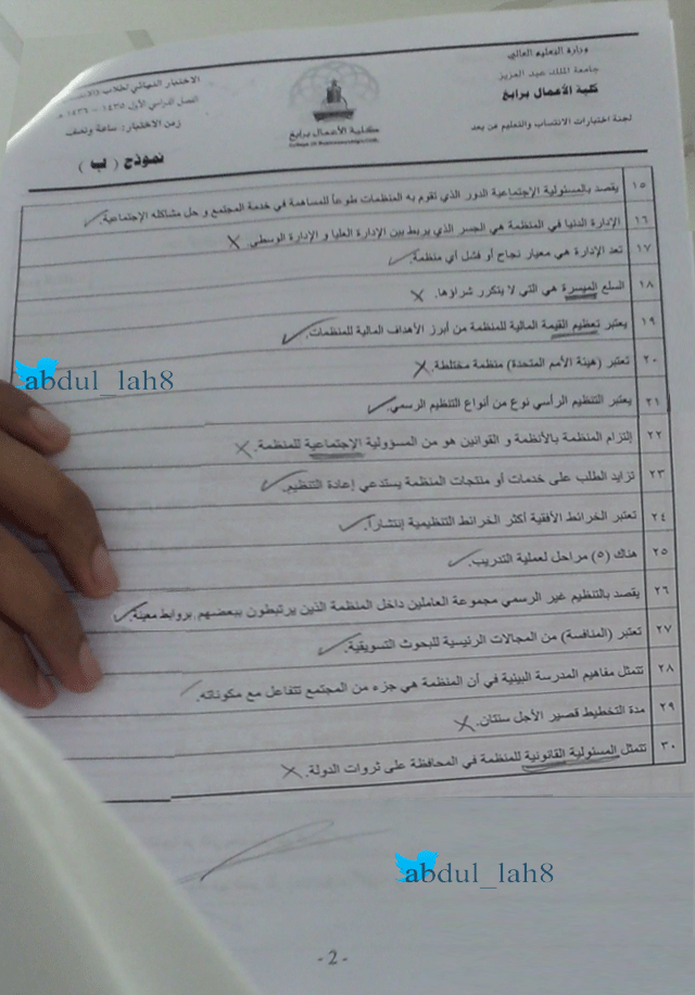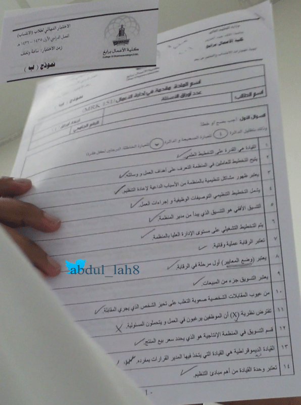 أسئلة اختبار مادة مقدمة في إدارة الاعمال MRK 151 الفصل الثاني 1436هـ نموذج ب - جامعة الملك عبد العزيز