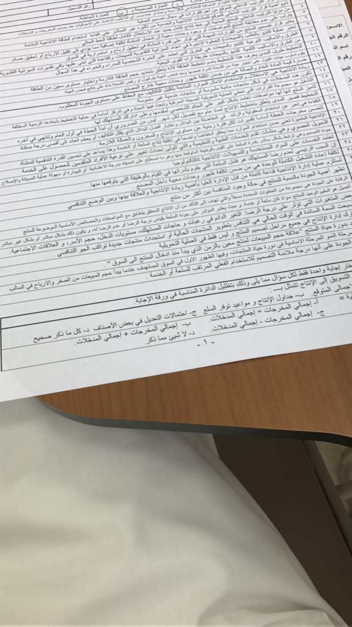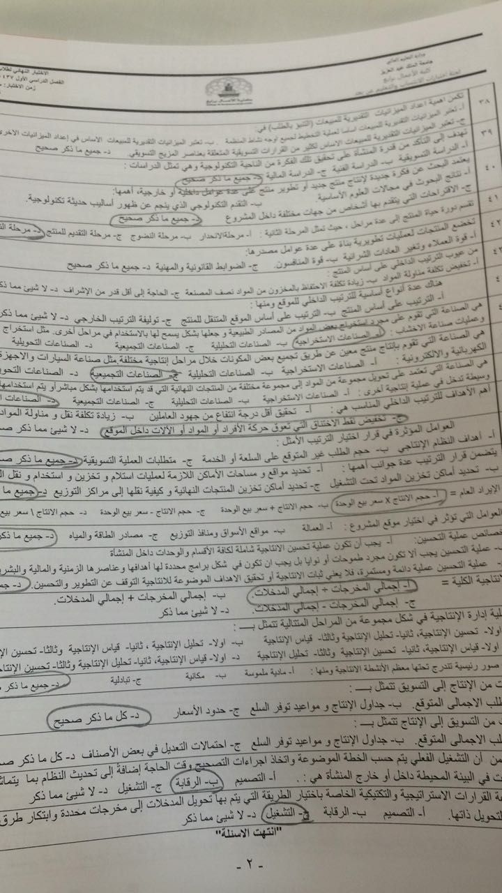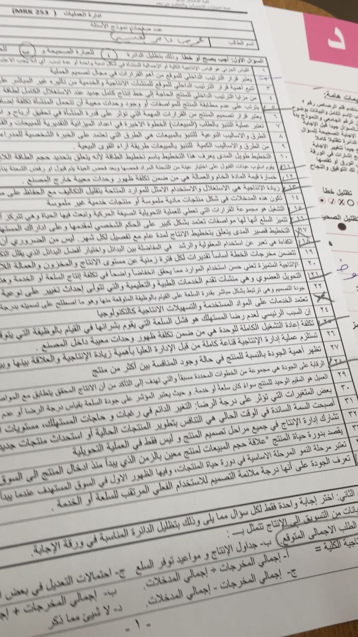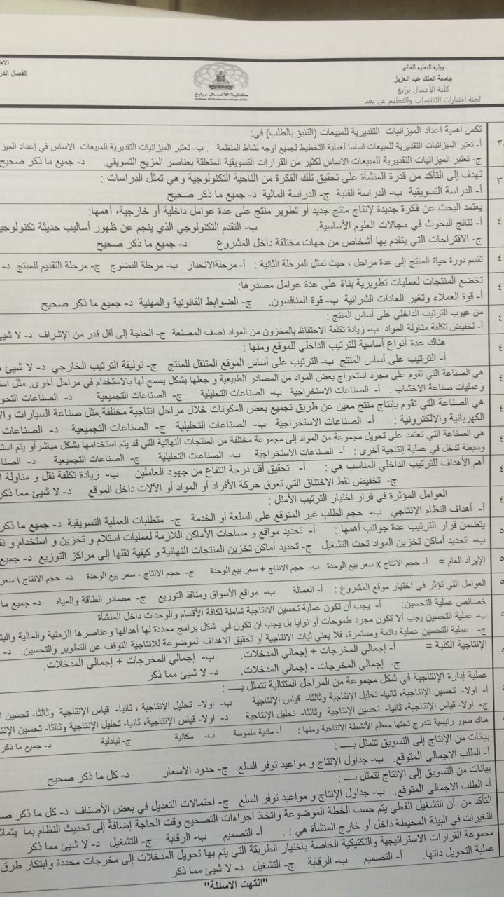 أسئلة اختبار مادة إدارة الانتاج والعمليات MRK 253 الفصل الأول 1438هـ نموذج ب - جامعة الملك عبد العزيز