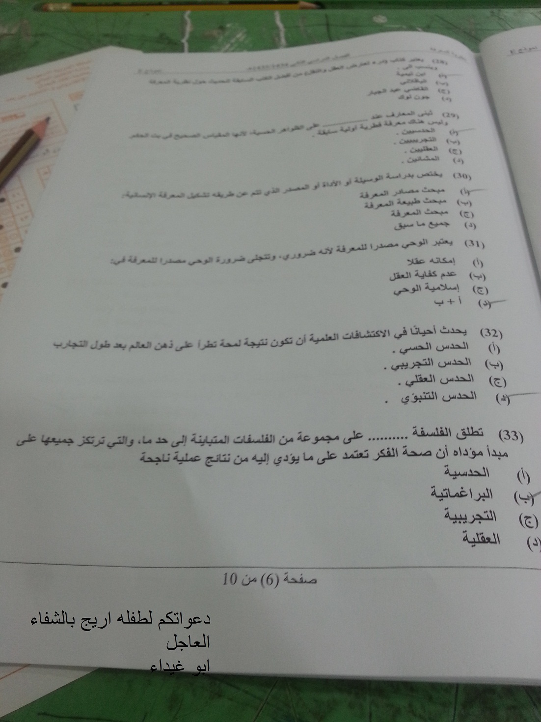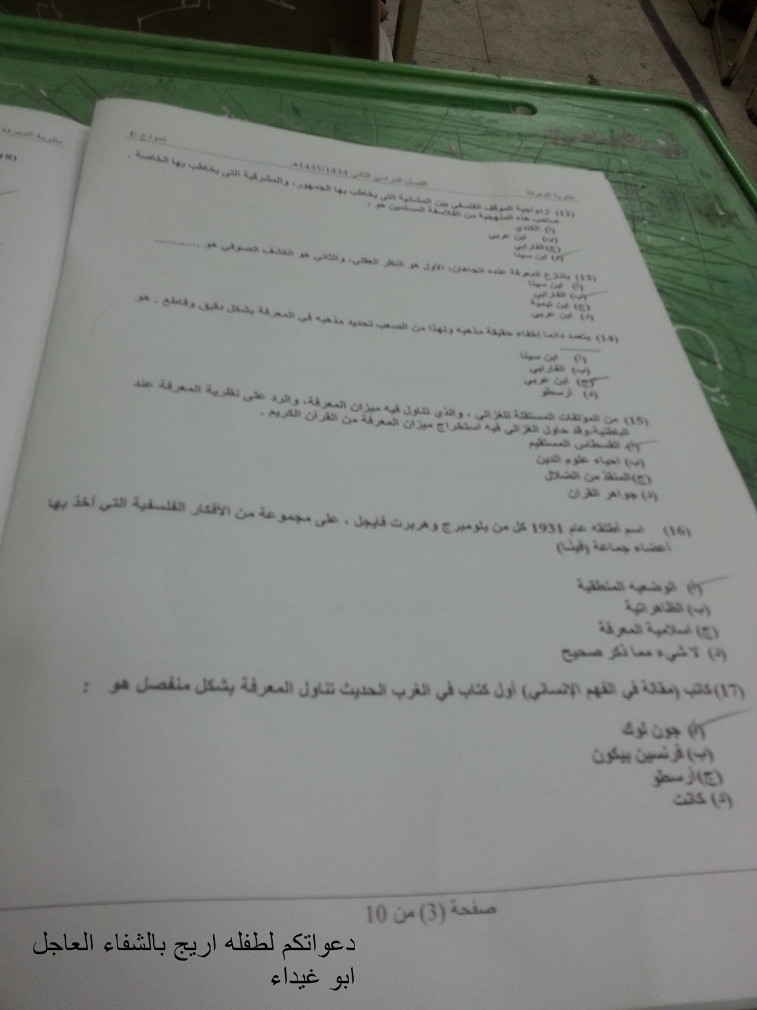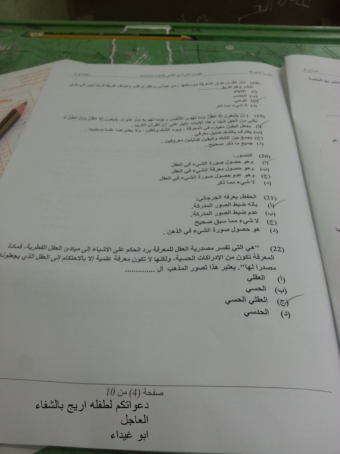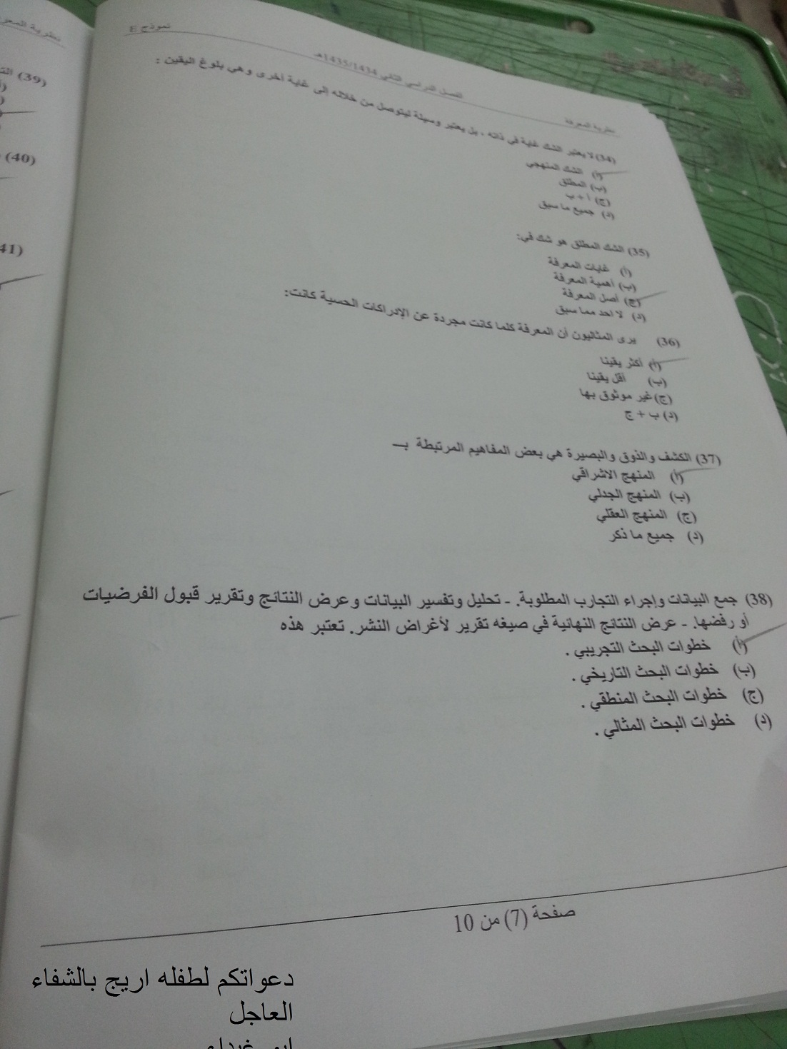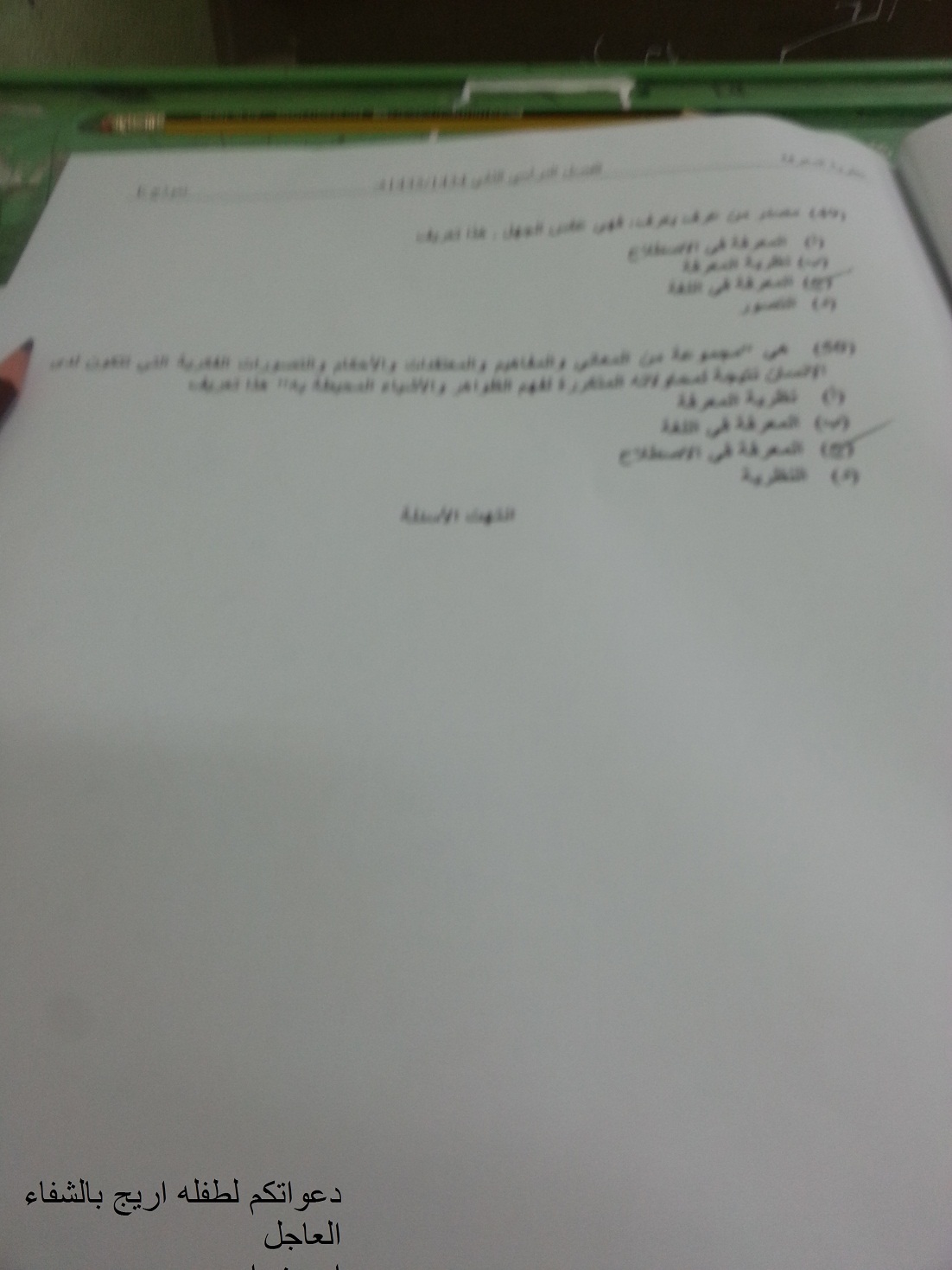 اسئلة مادة نظرية المعرفه الفصل الدراسي الثاني 1435هـ نموذج (c)