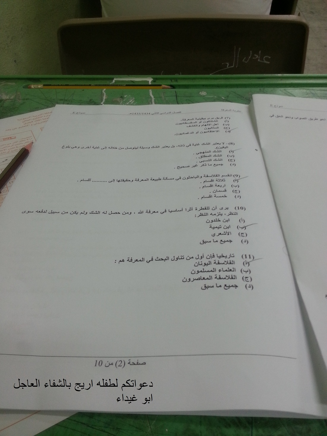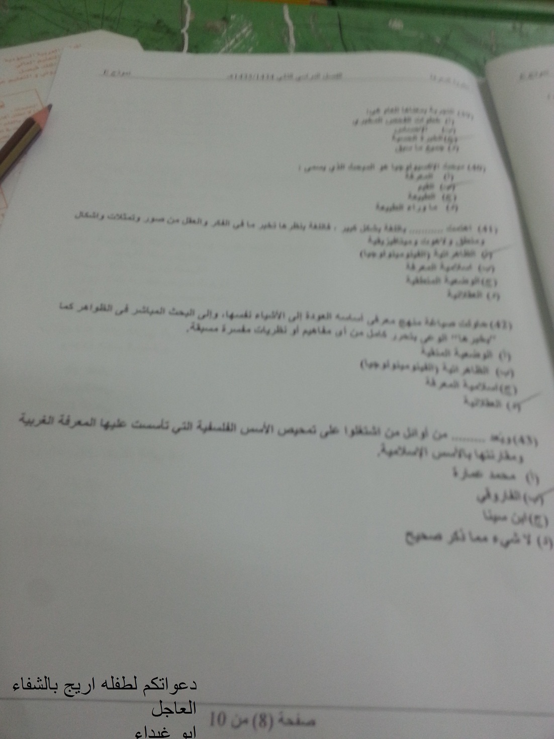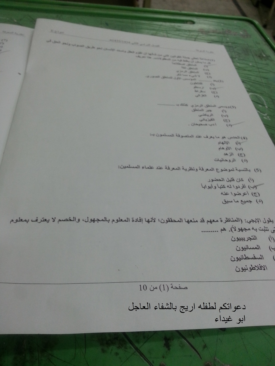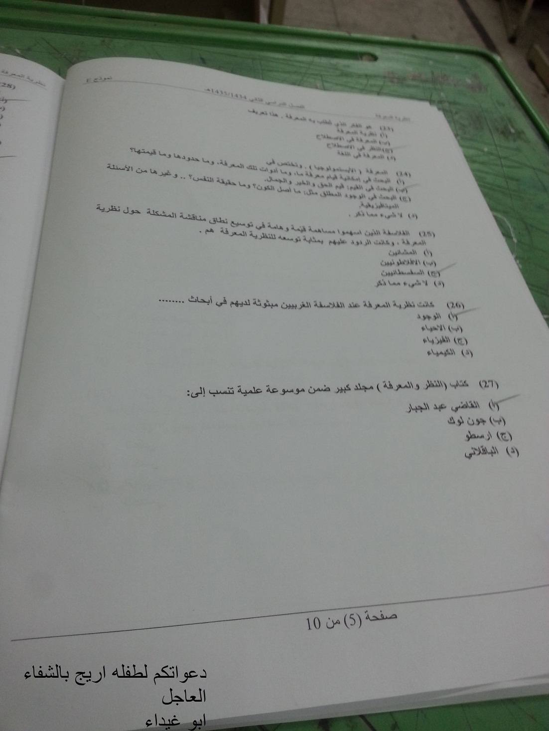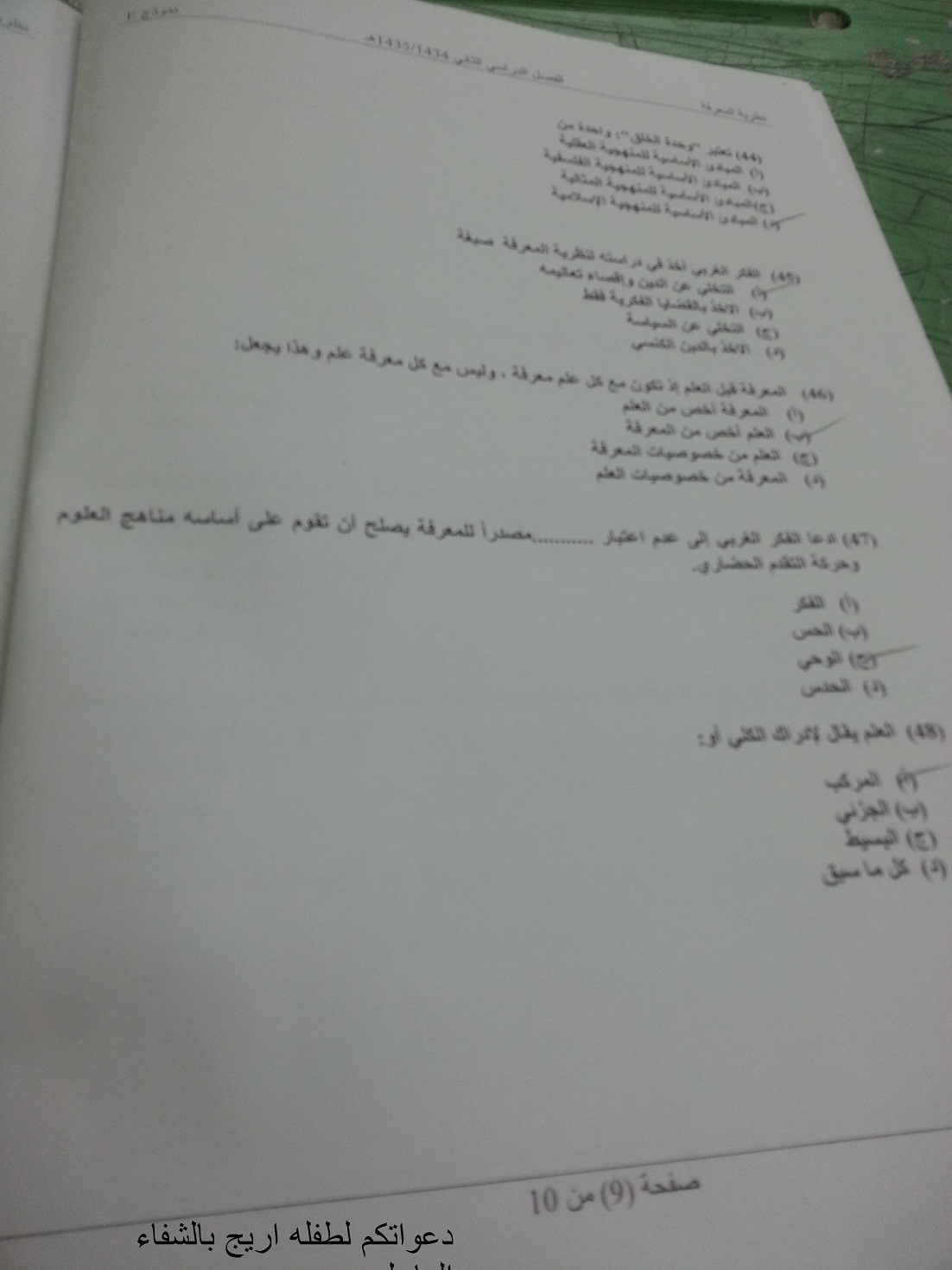 اسئلة مادة نظرية المعرفه الفصل الدراسي الثاني 1435هـ نموذج (e)
