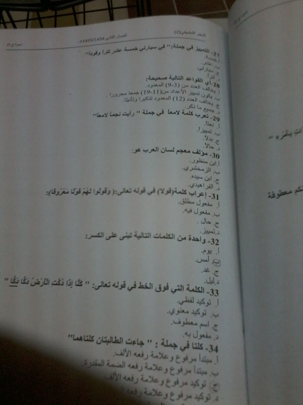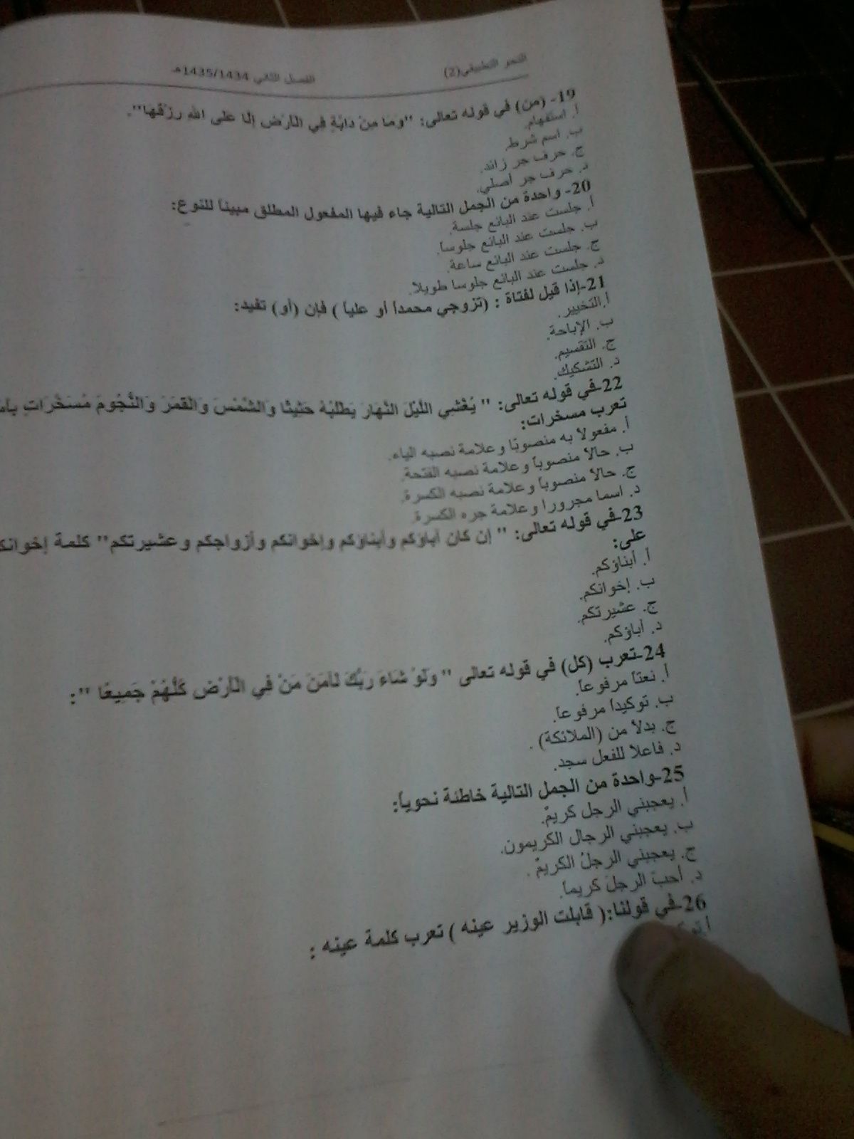 اسئلة النحو التطبيقي 2 الفصل الدراسي الثاني 1435هـ نموذج (d)