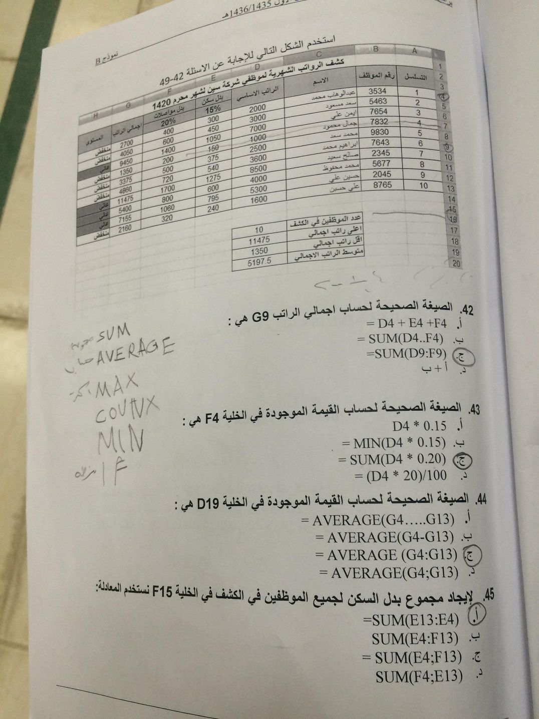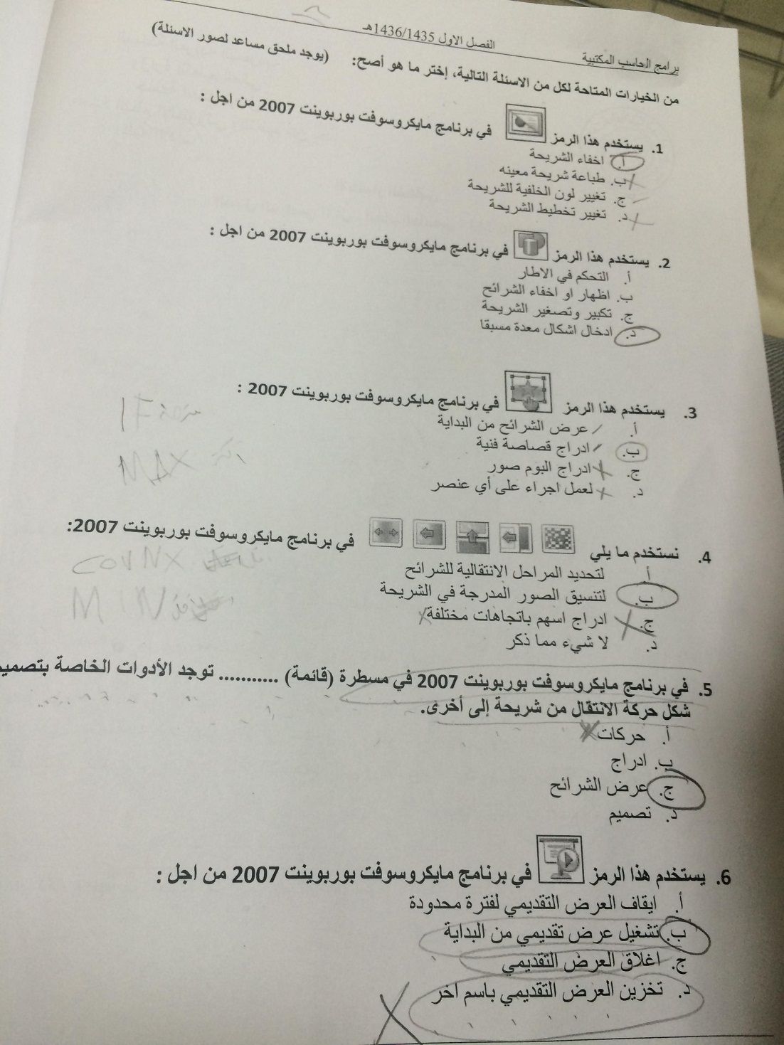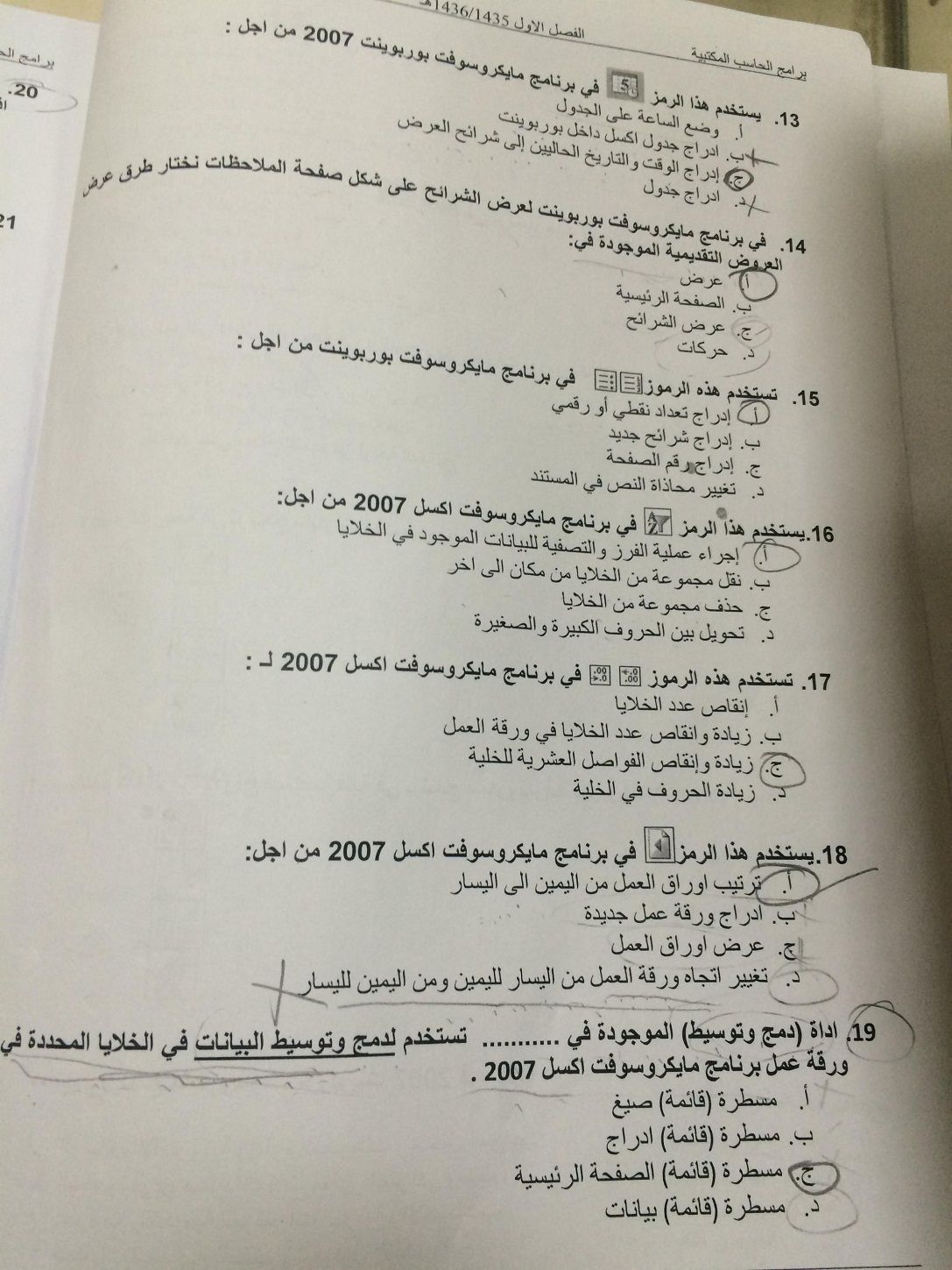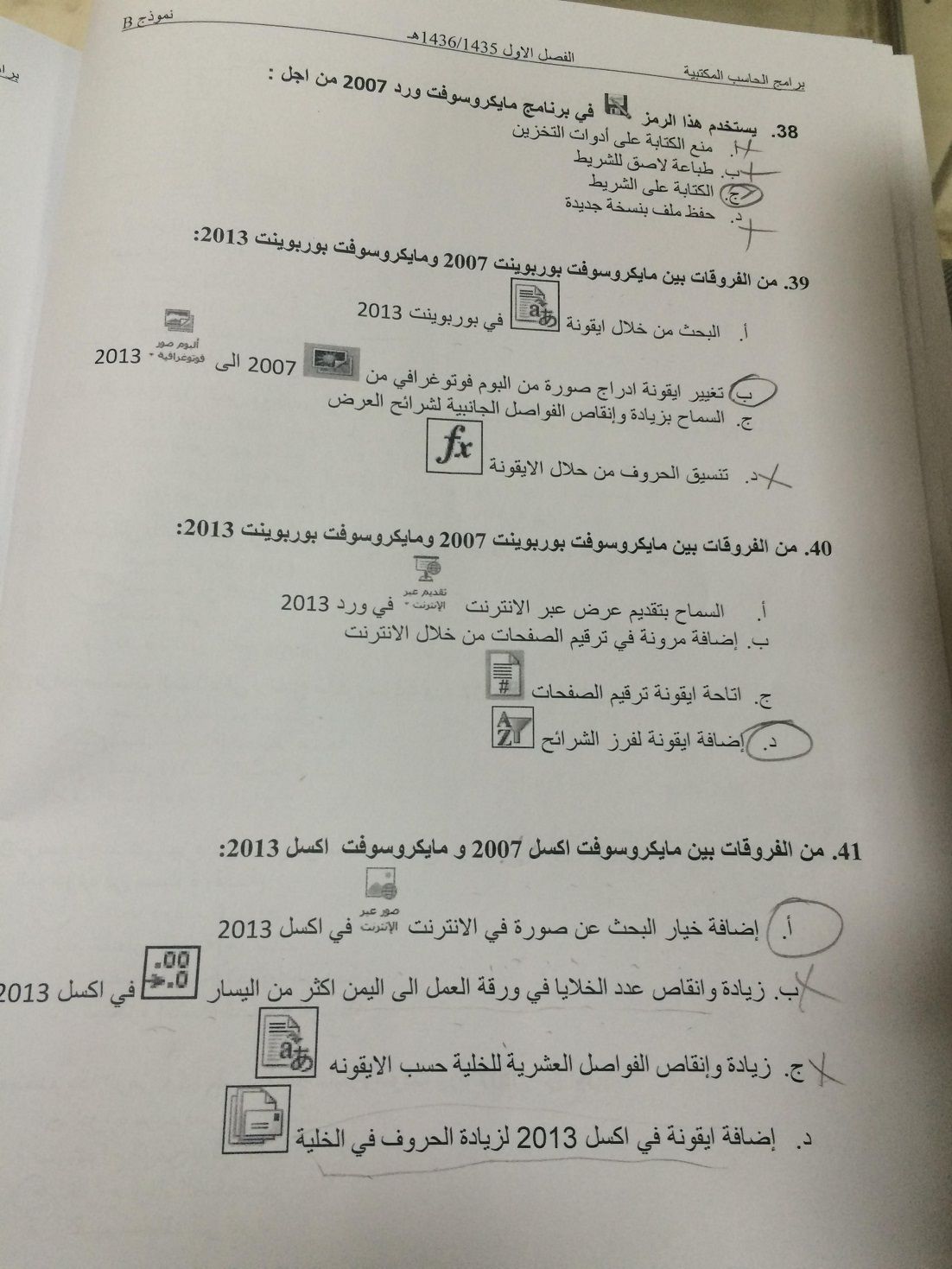 اسئلة اختبار برامج الحاسب المكتبية الفصل الدراسي الأول 1436هـ نموذج (B)