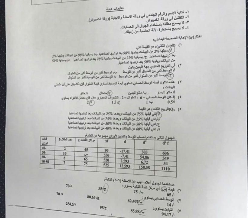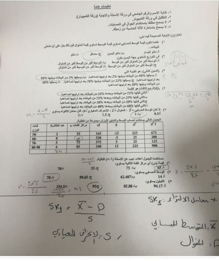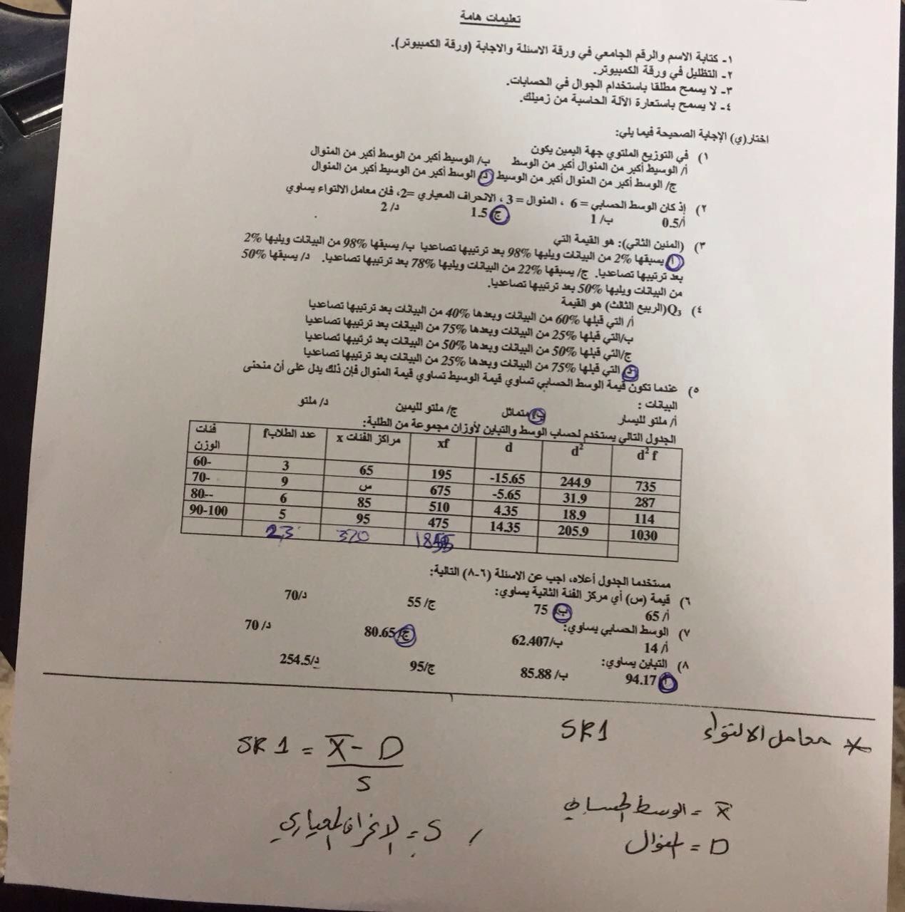 كويز مادة مبادىء الاحصاء الفصل الاول 1438