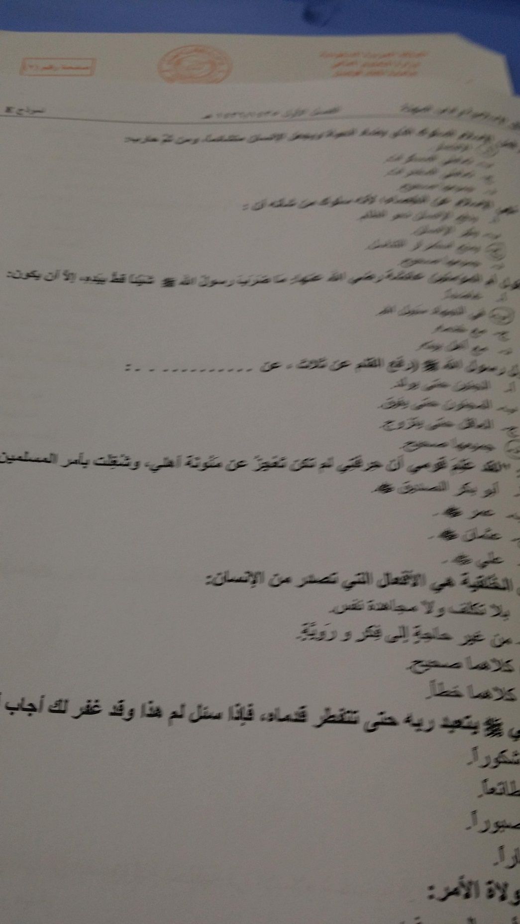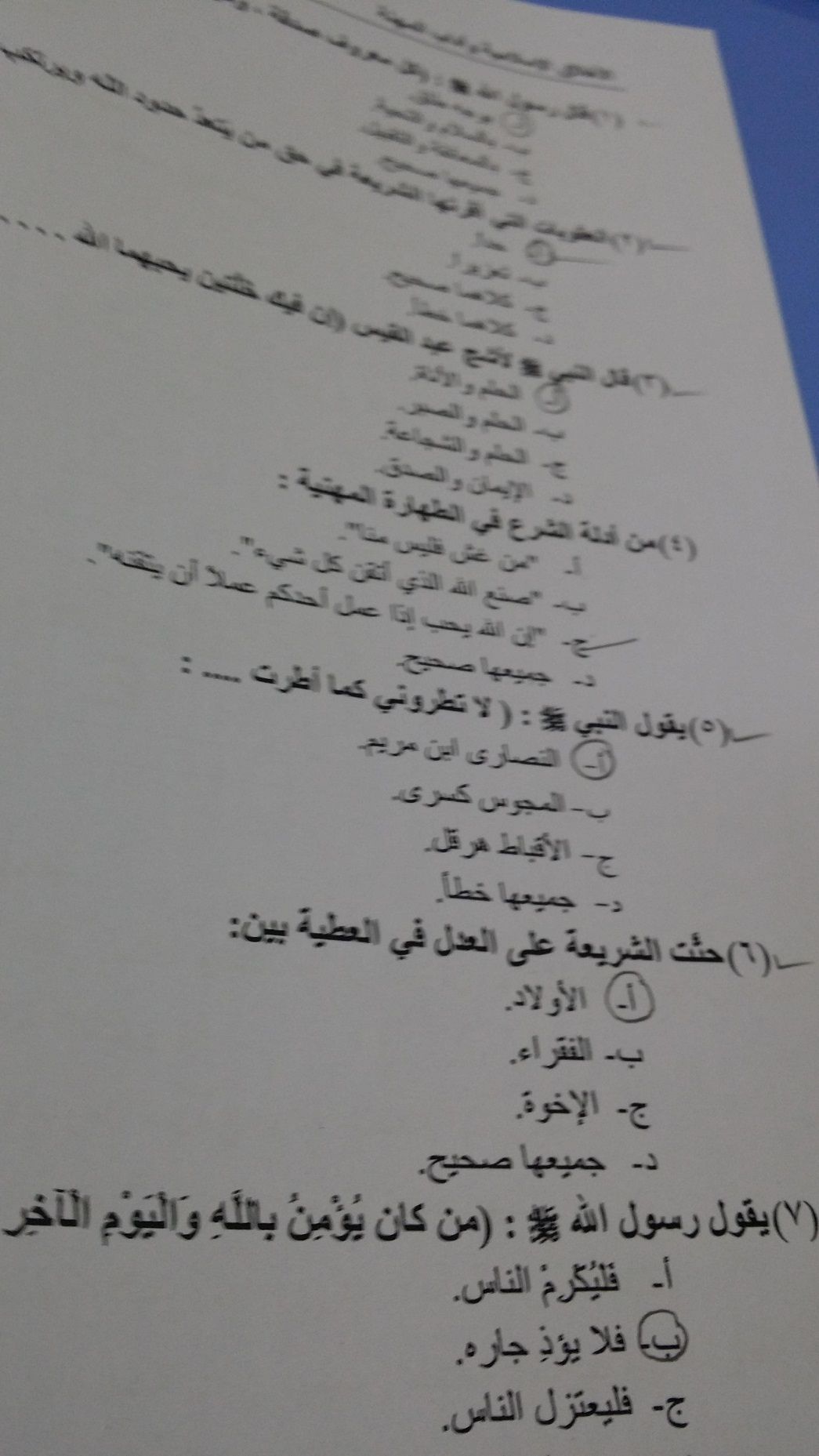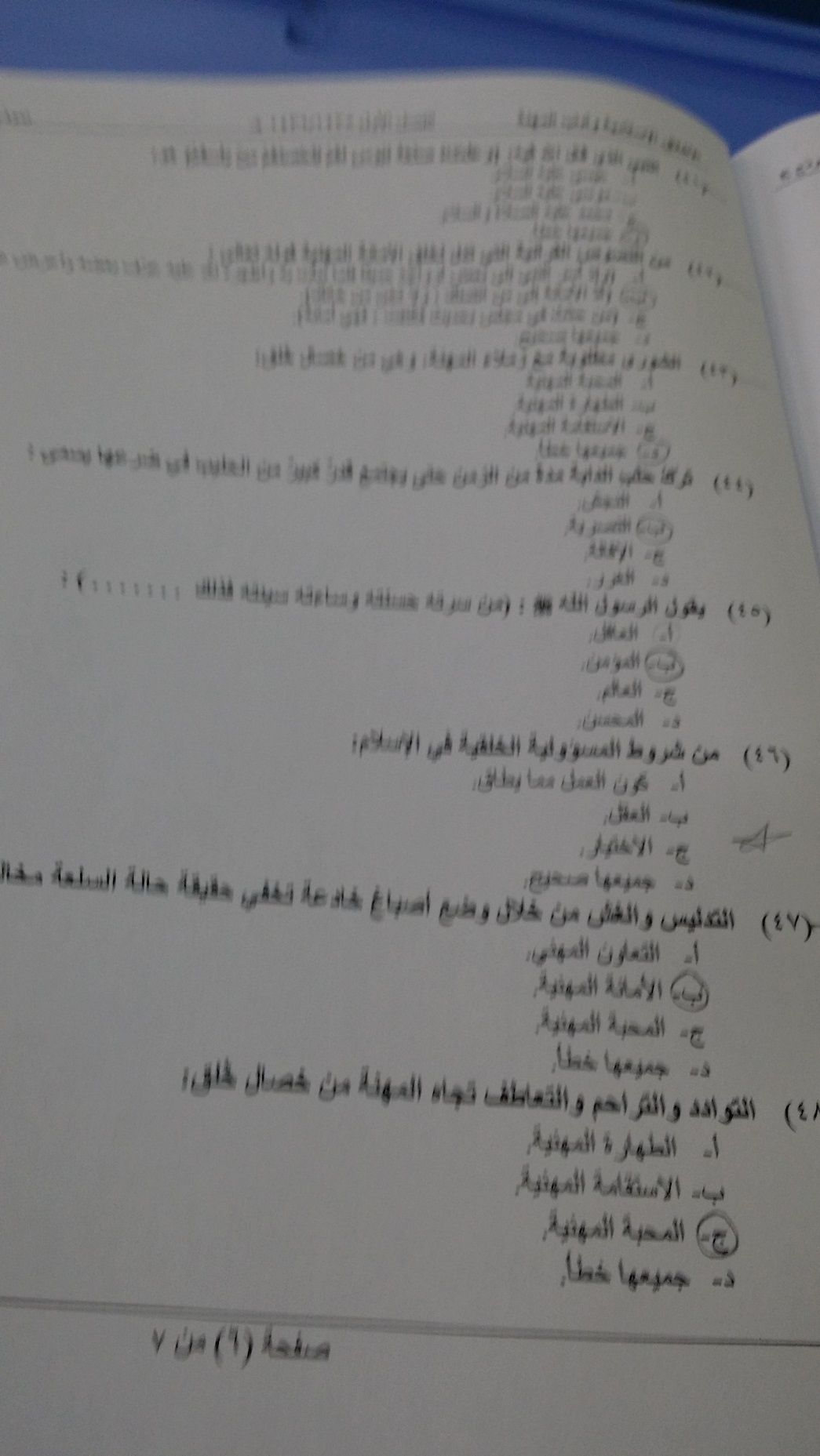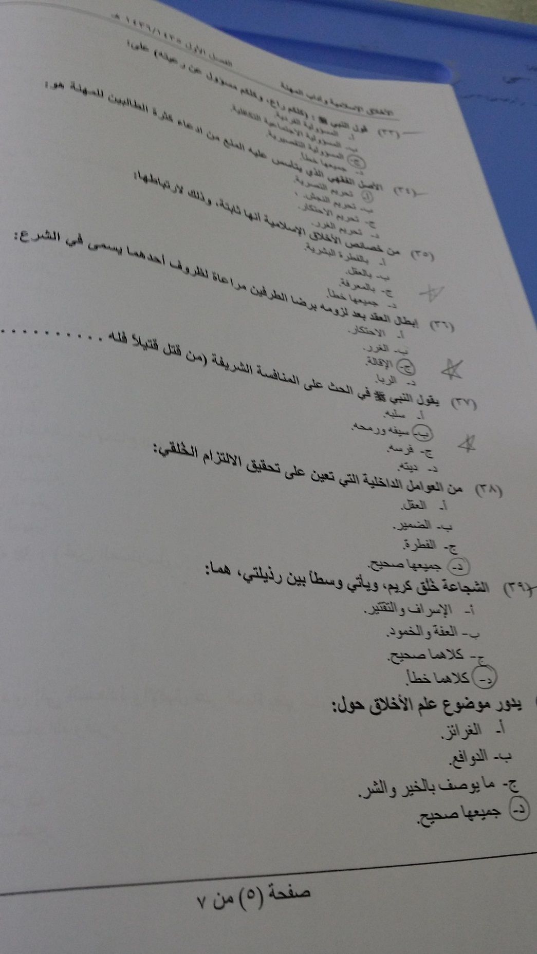 اسئلة اختبار الأخلاق الإسلامية وآداب المهنة الفصل الدراسي الأول 1436هـ نموذج (E)