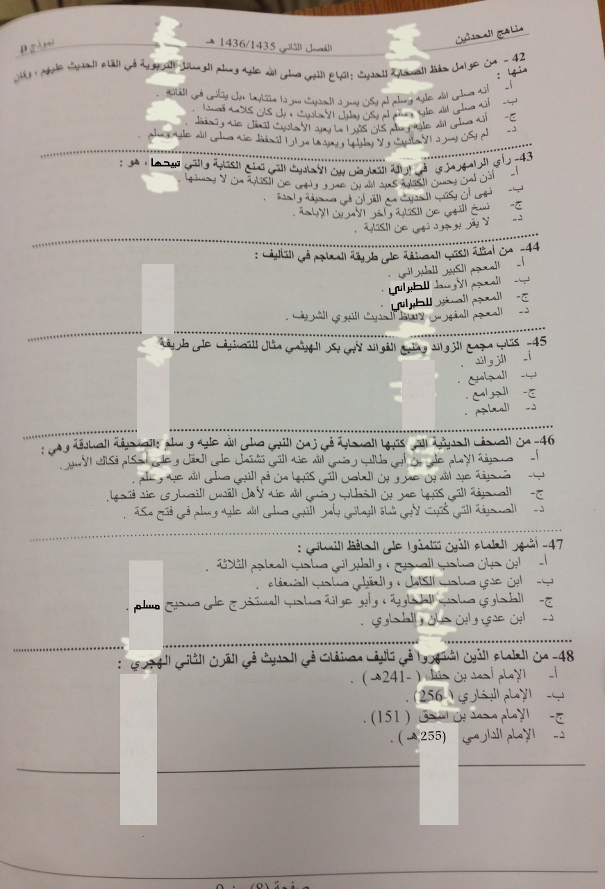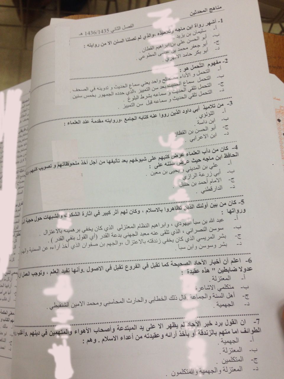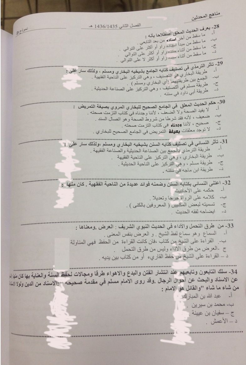 مادة مناهج المحدثين 1 ـاسئلة 1436 الفصل الدراسي الثاني