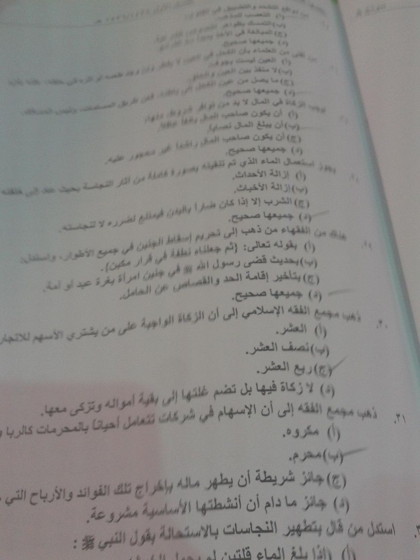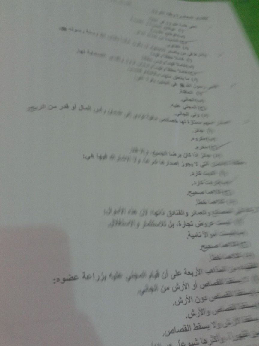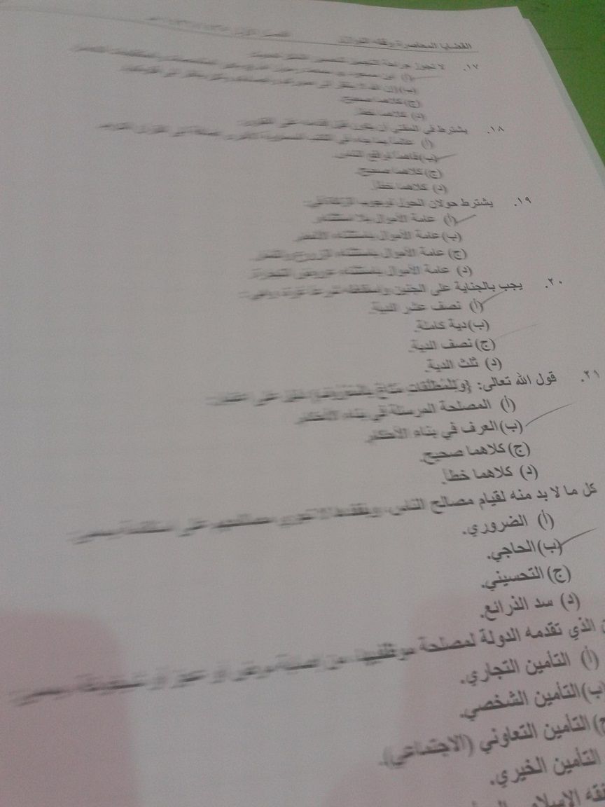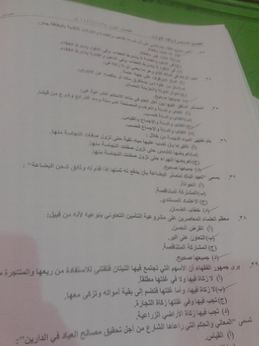 اسئلة اختبار القضايا المعاصرة وفقه النوازل الفصل الأول 1436هـ نموذج (A)