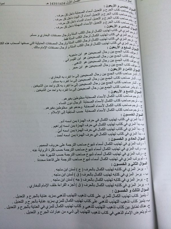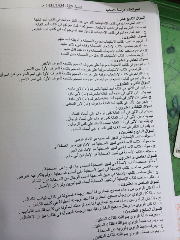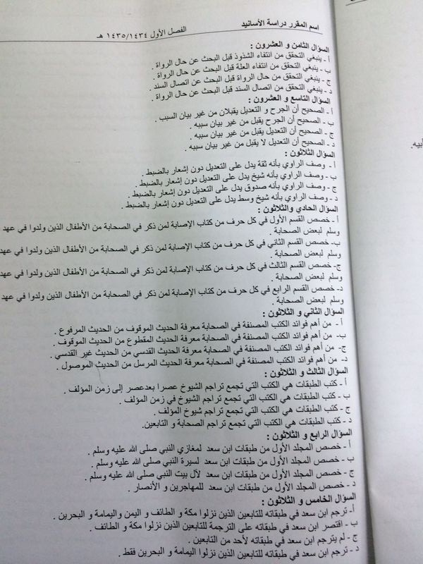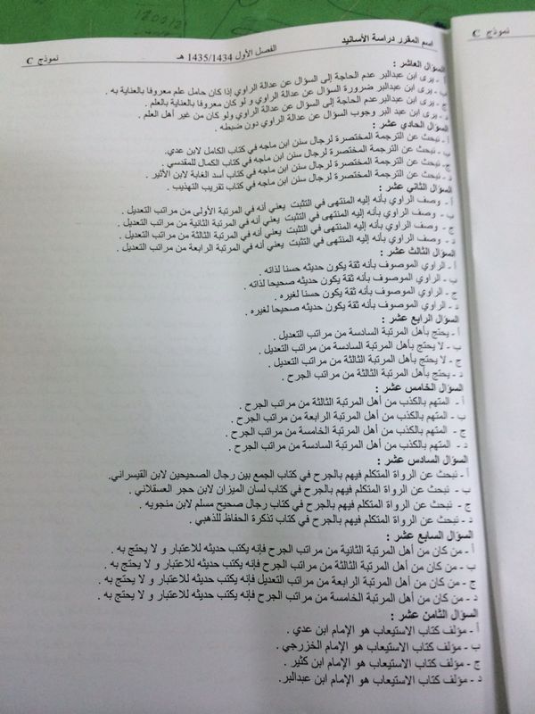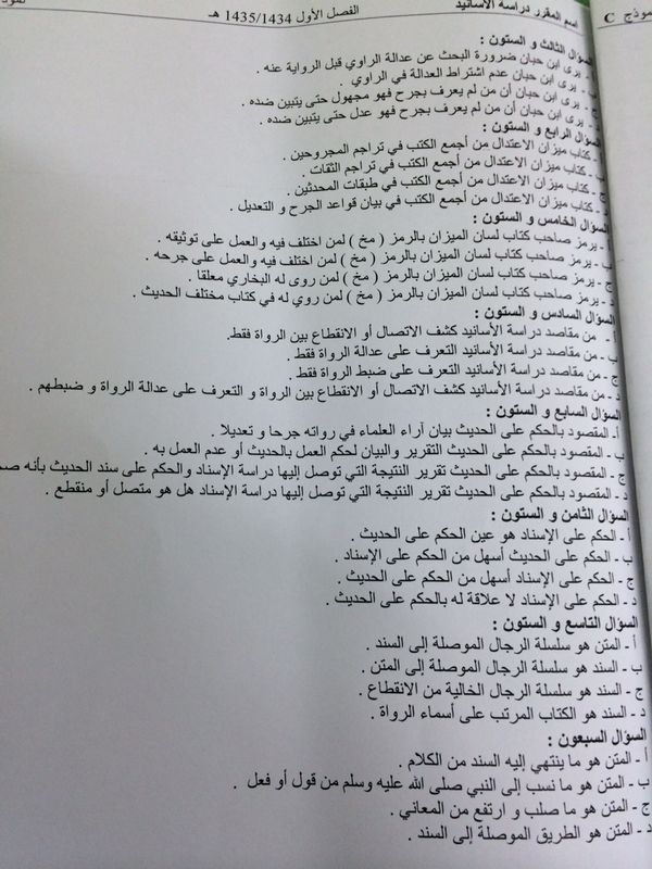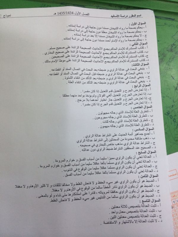 اسئلة اختبار مادة دراسة الأسانيد الفصل الدراسي الأول 1435هـ نموذج (c)