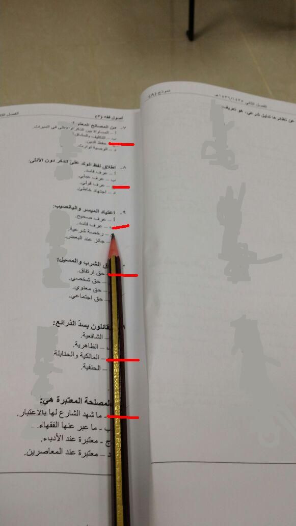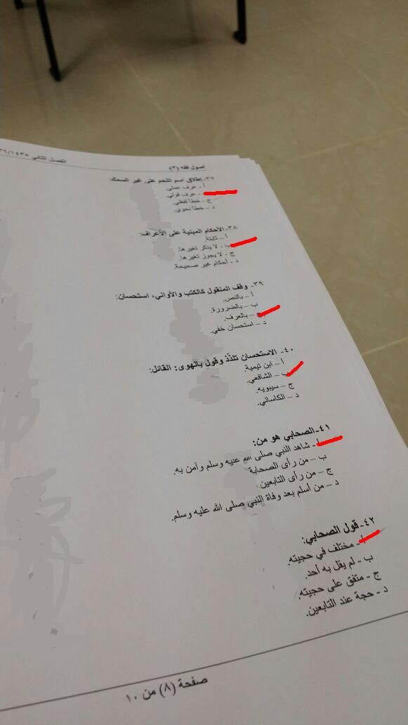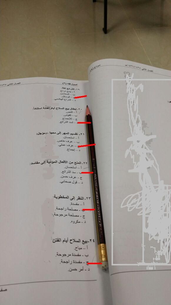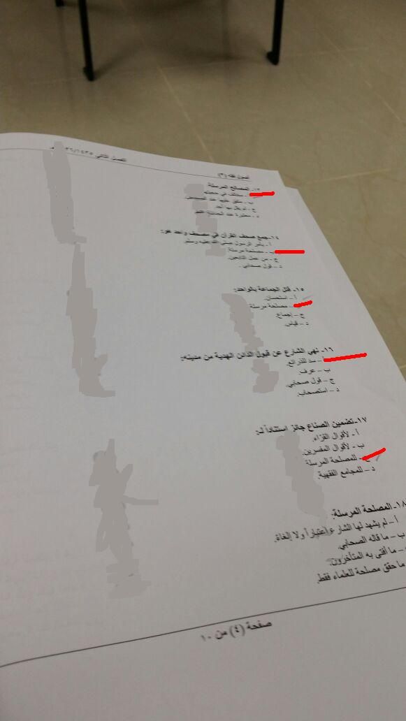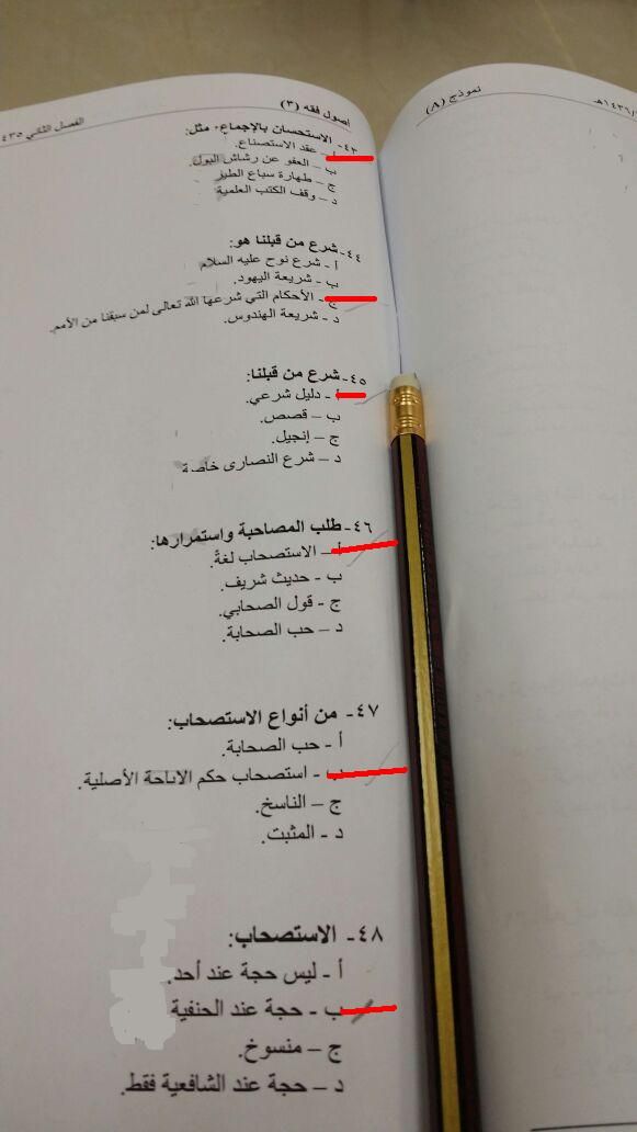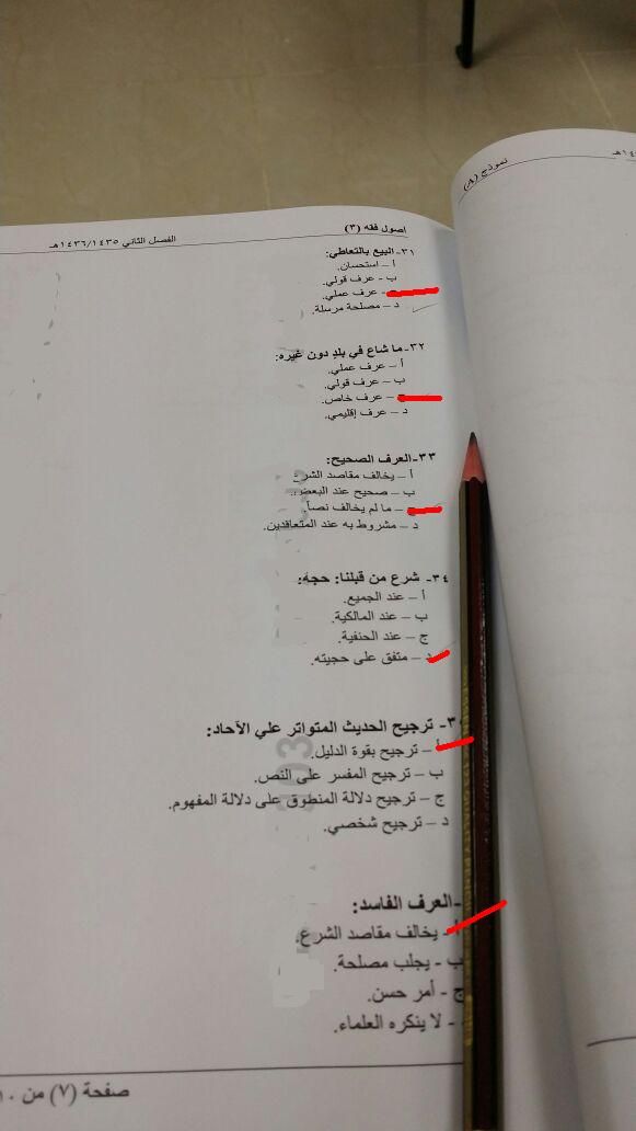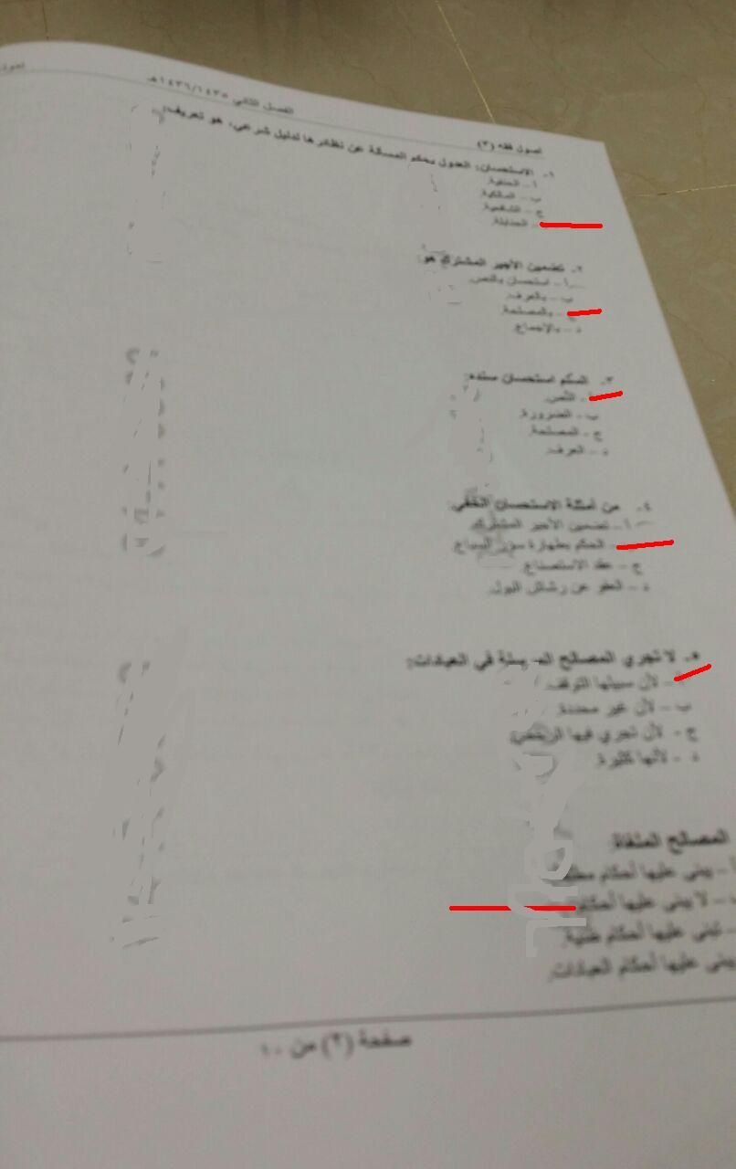 اسئلة اختبار أصول الفقه 3 الفصل الثاني 1436هـ نموذج (A)