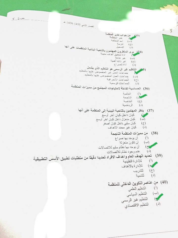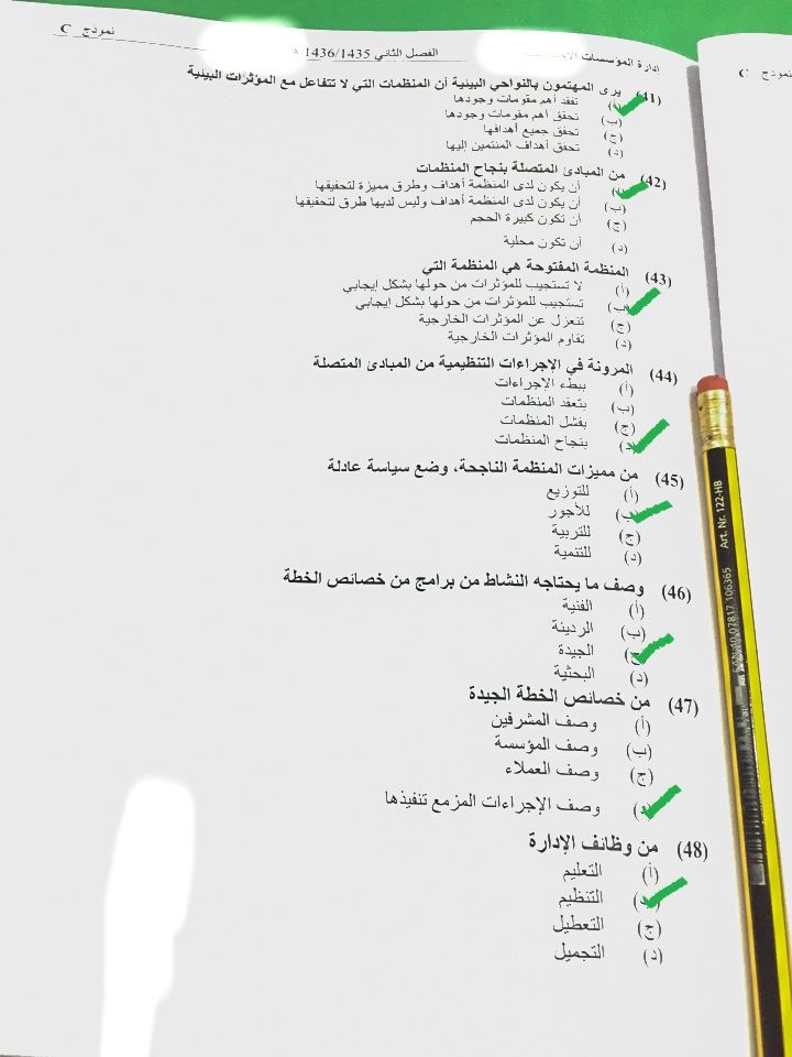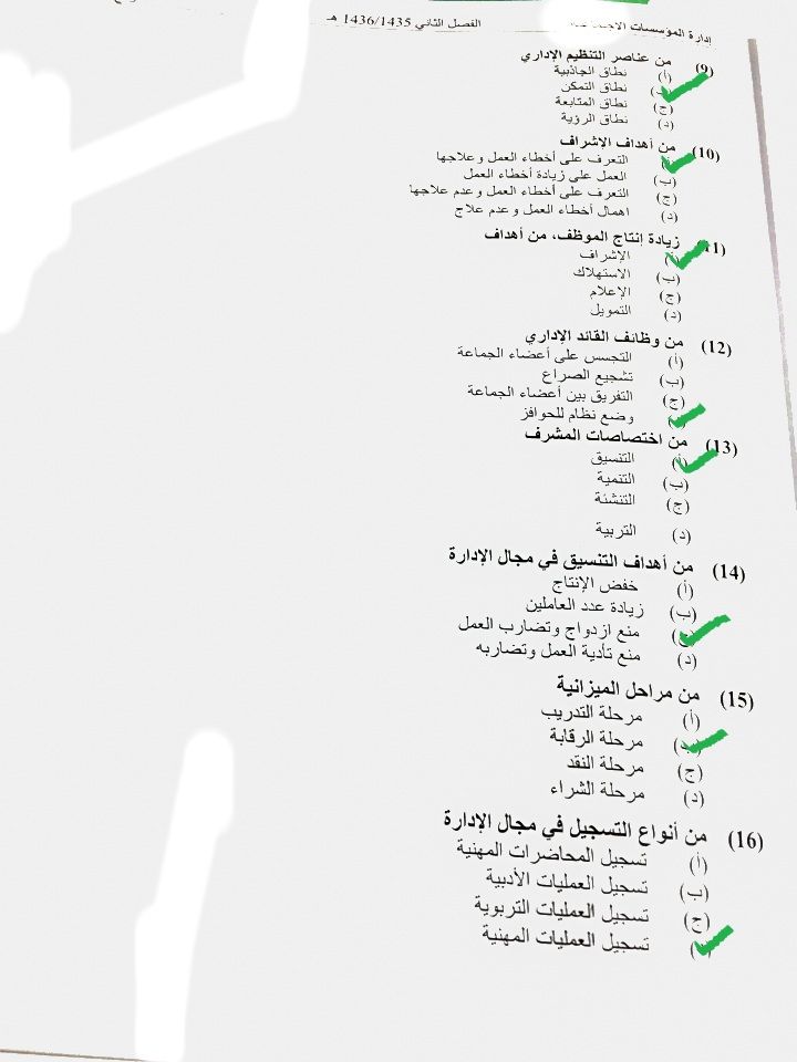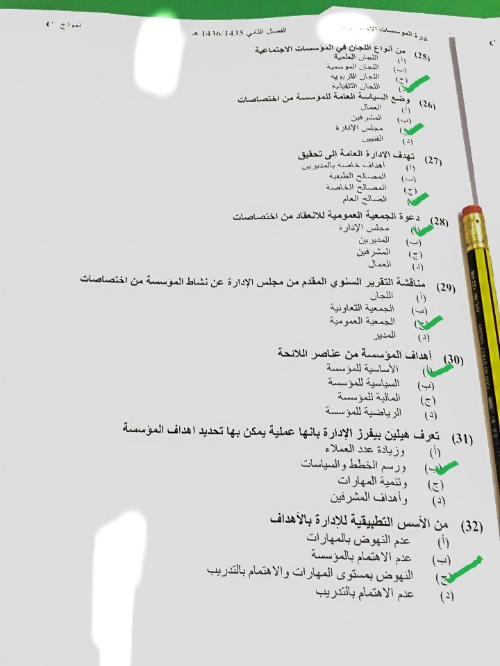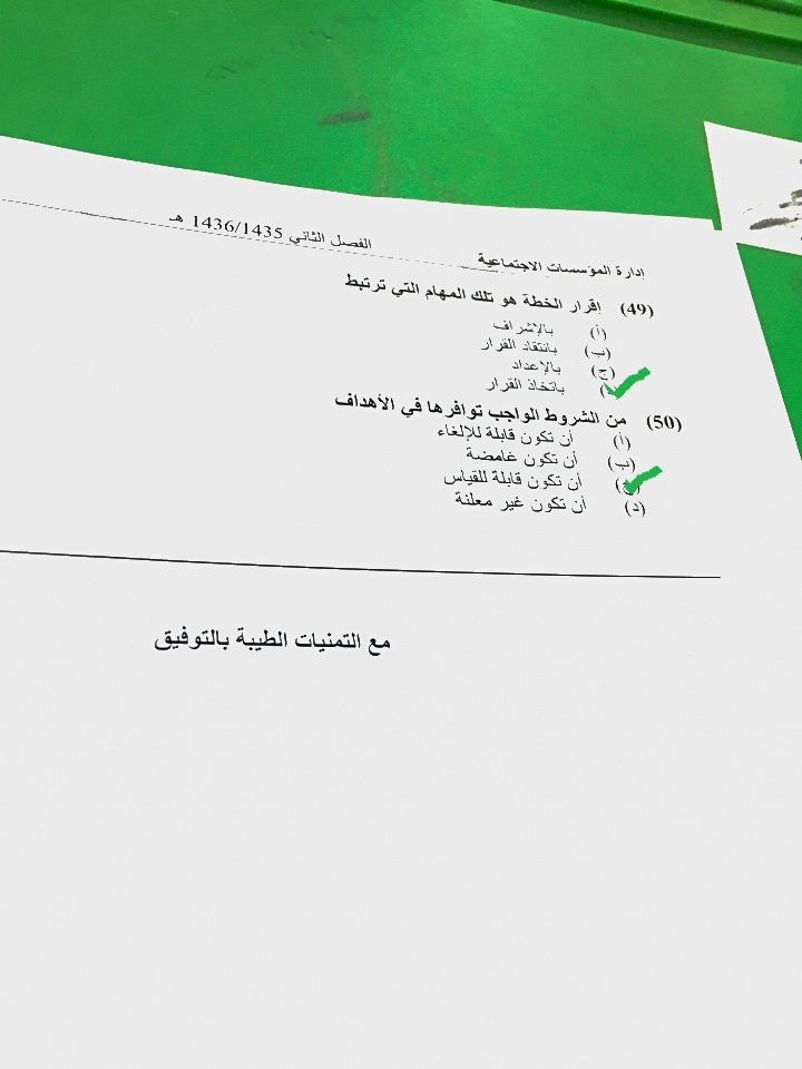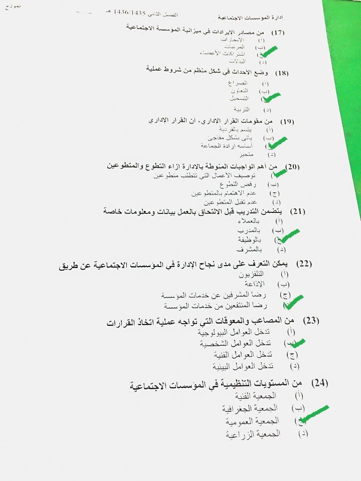 اسئلة اختبار إدارة المؤسسات الاجتماعية الفصل الثاني 1436هـ نموذج C