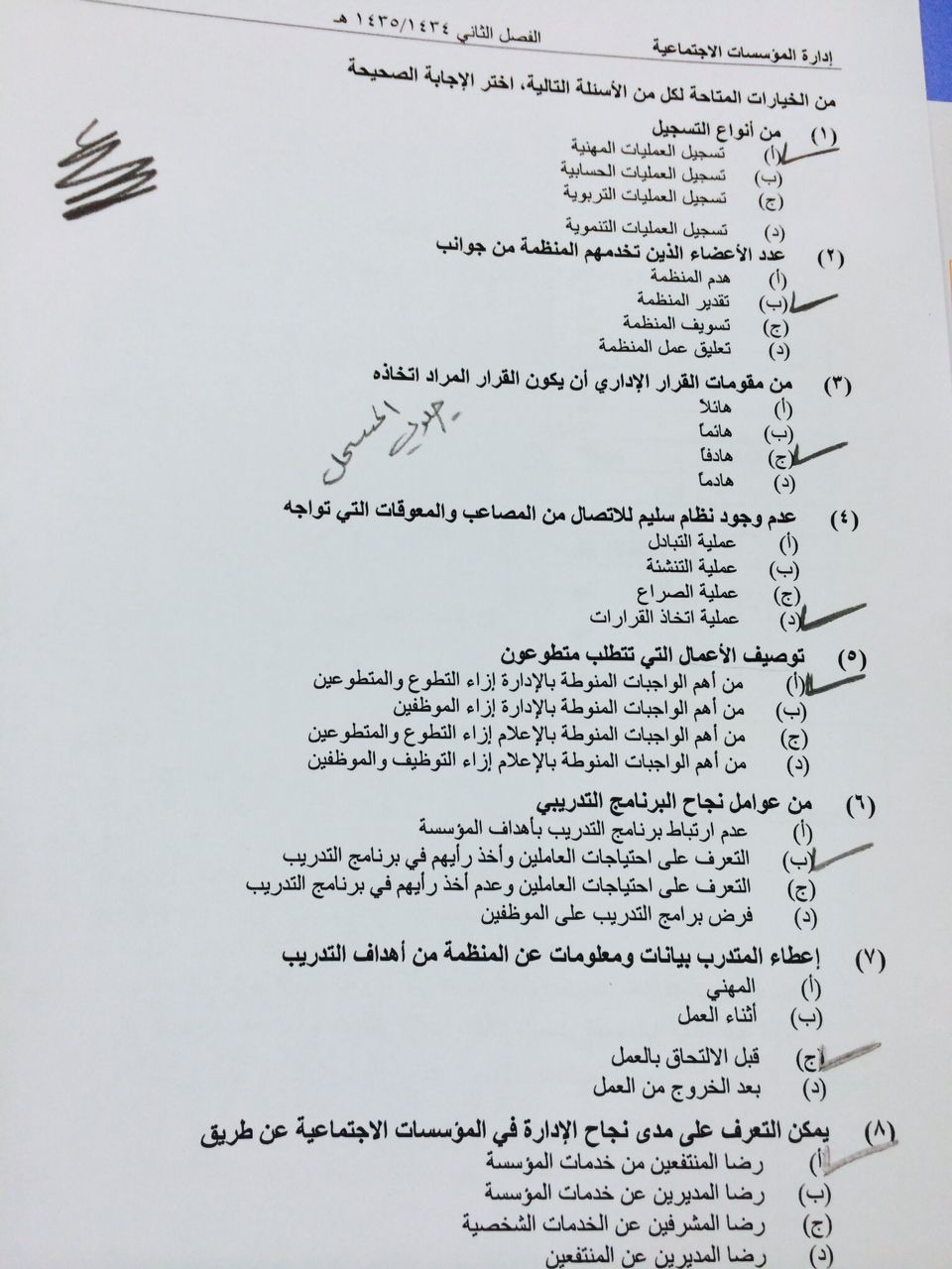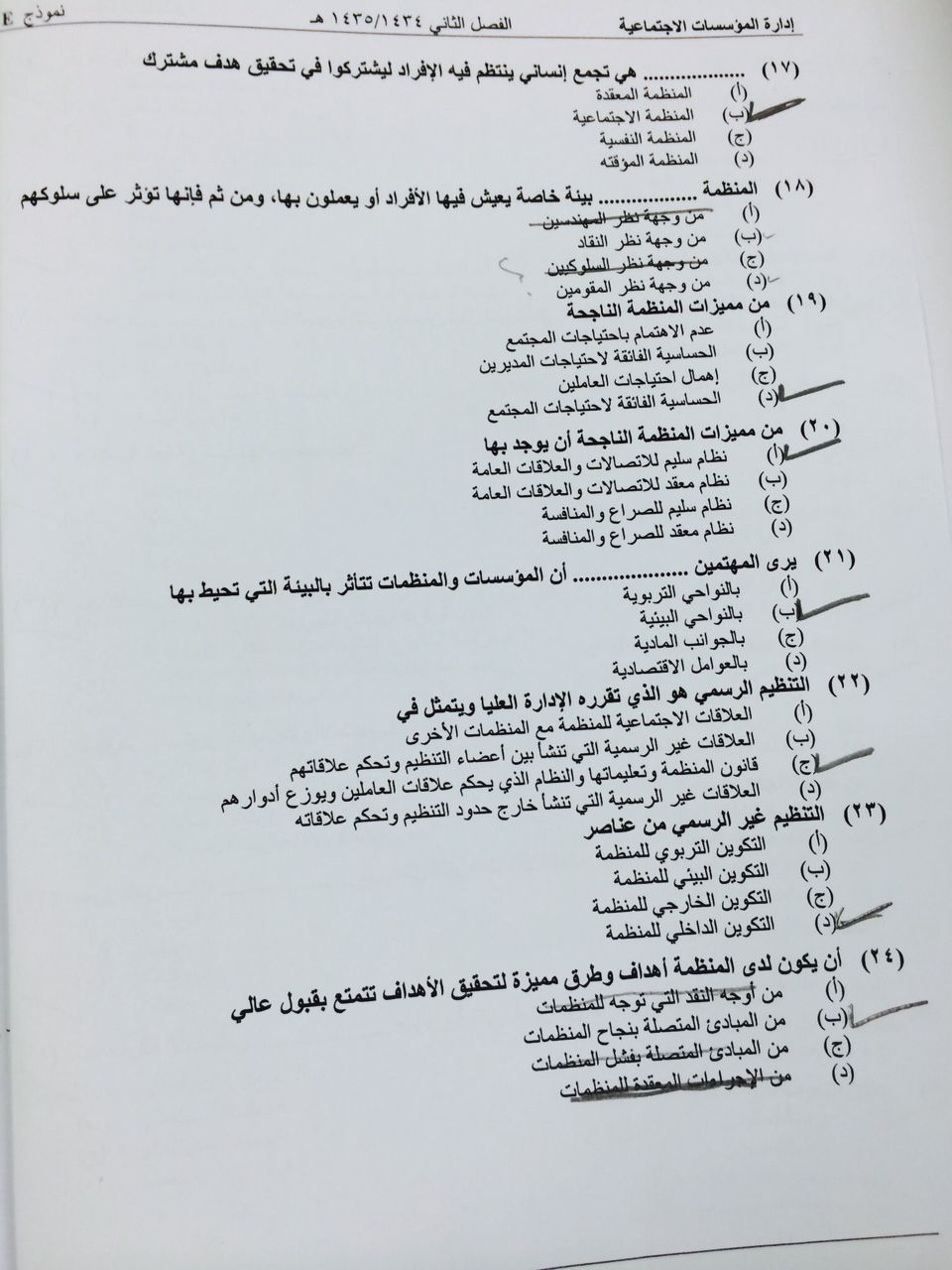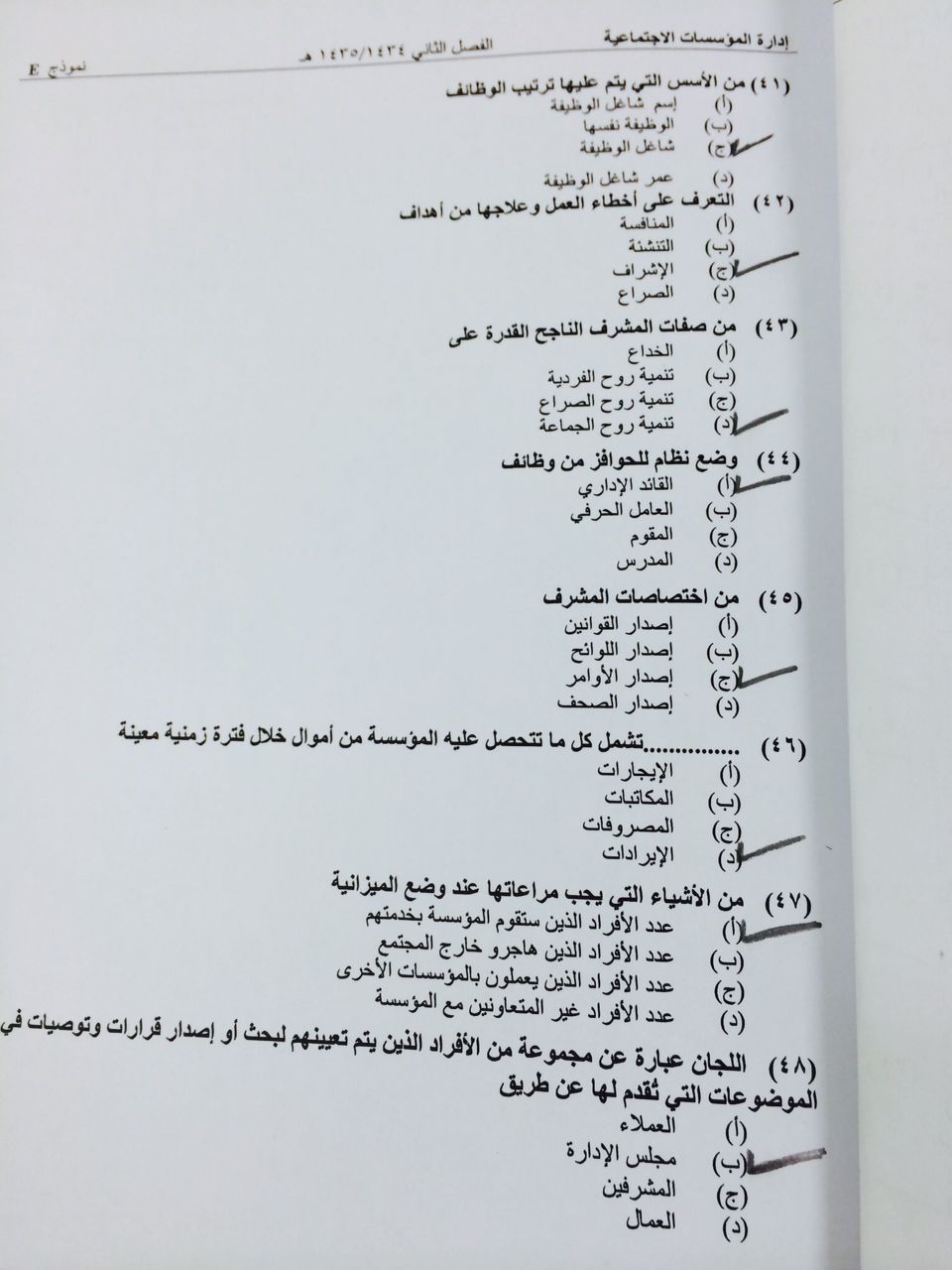 اسئلة مادة إدارة المؤسسات الاجتماعية الفصل الدراسي الثاني 1435هـ نموذج (e)