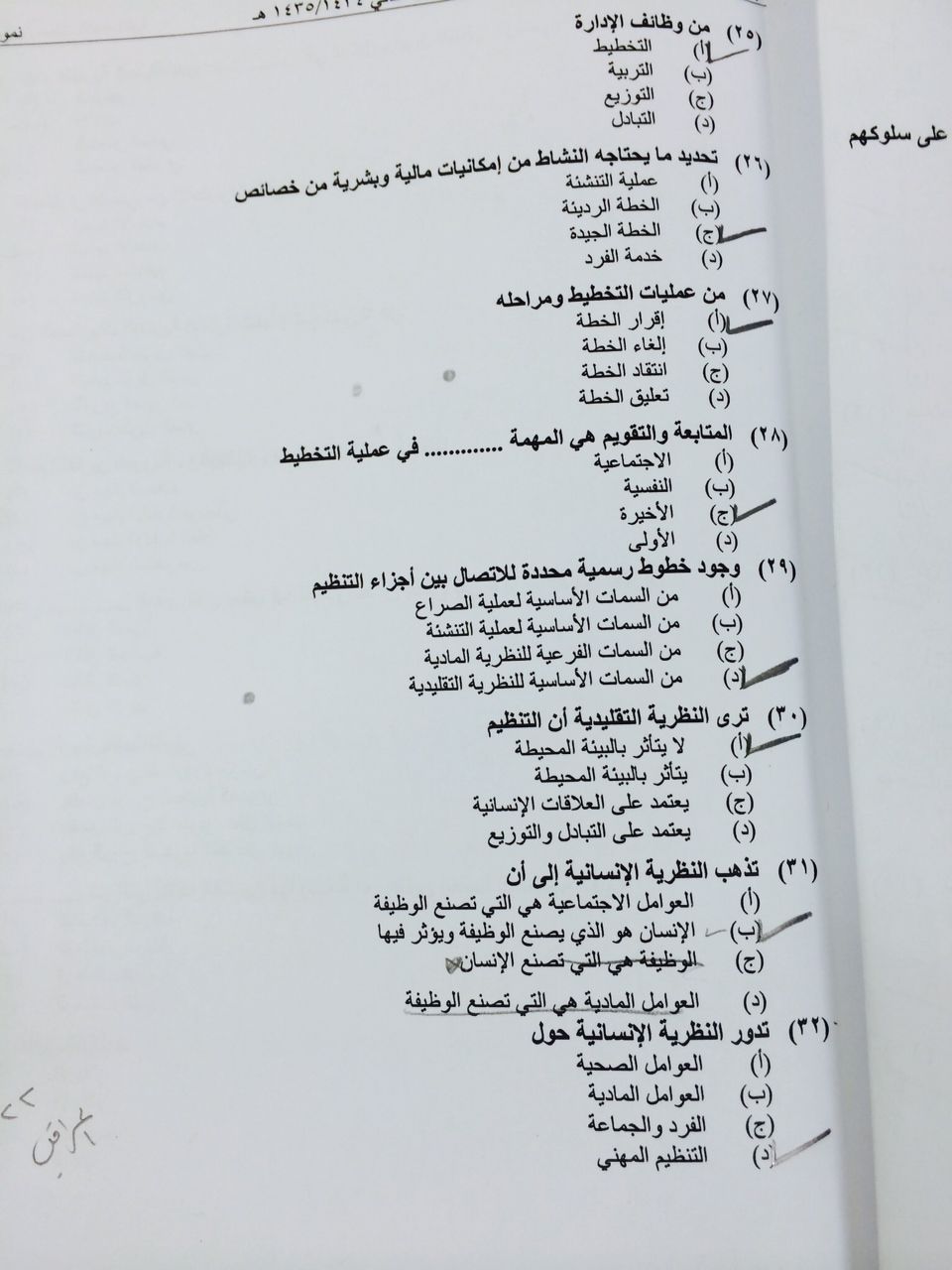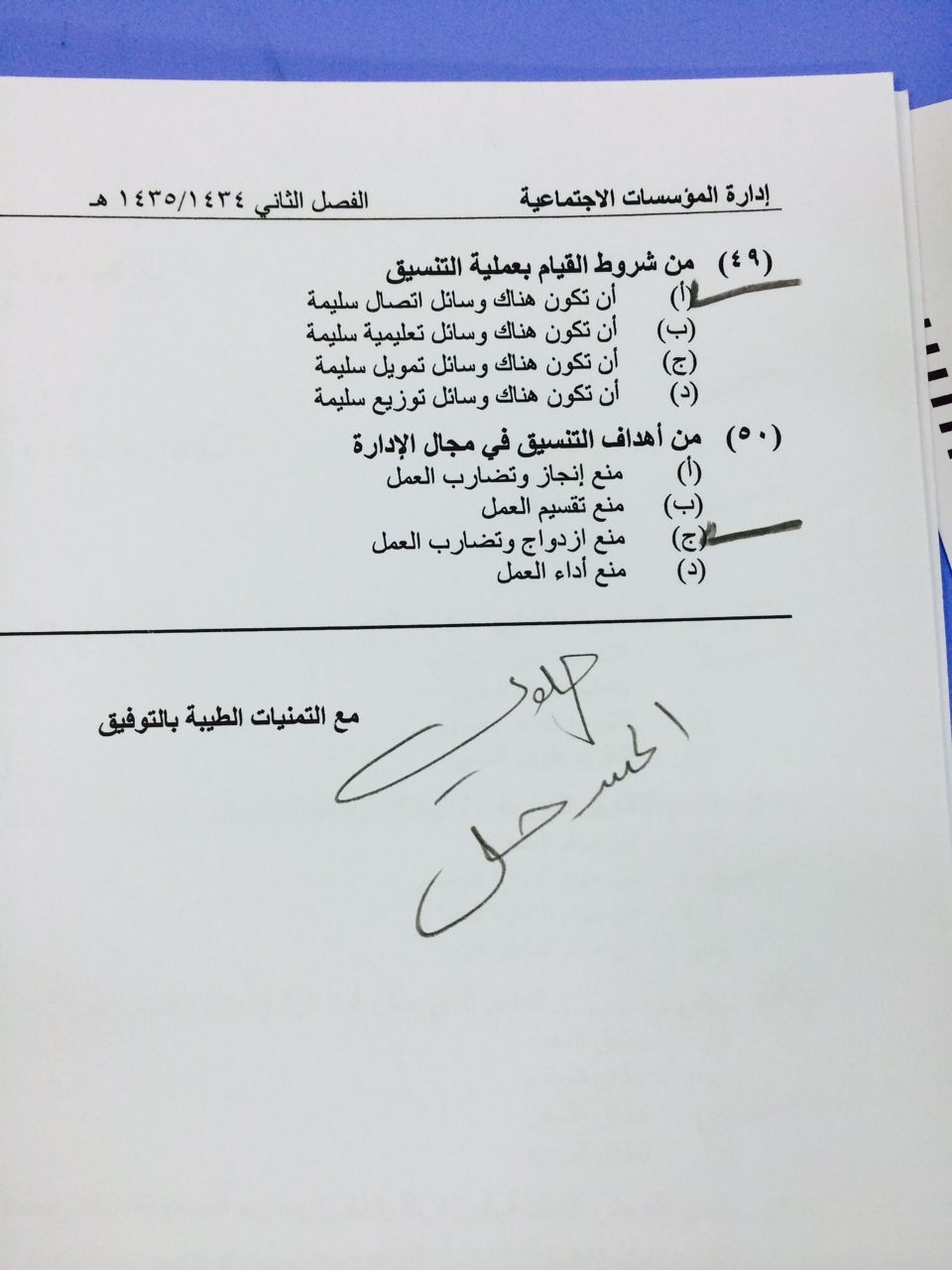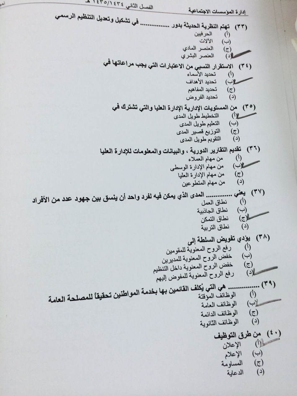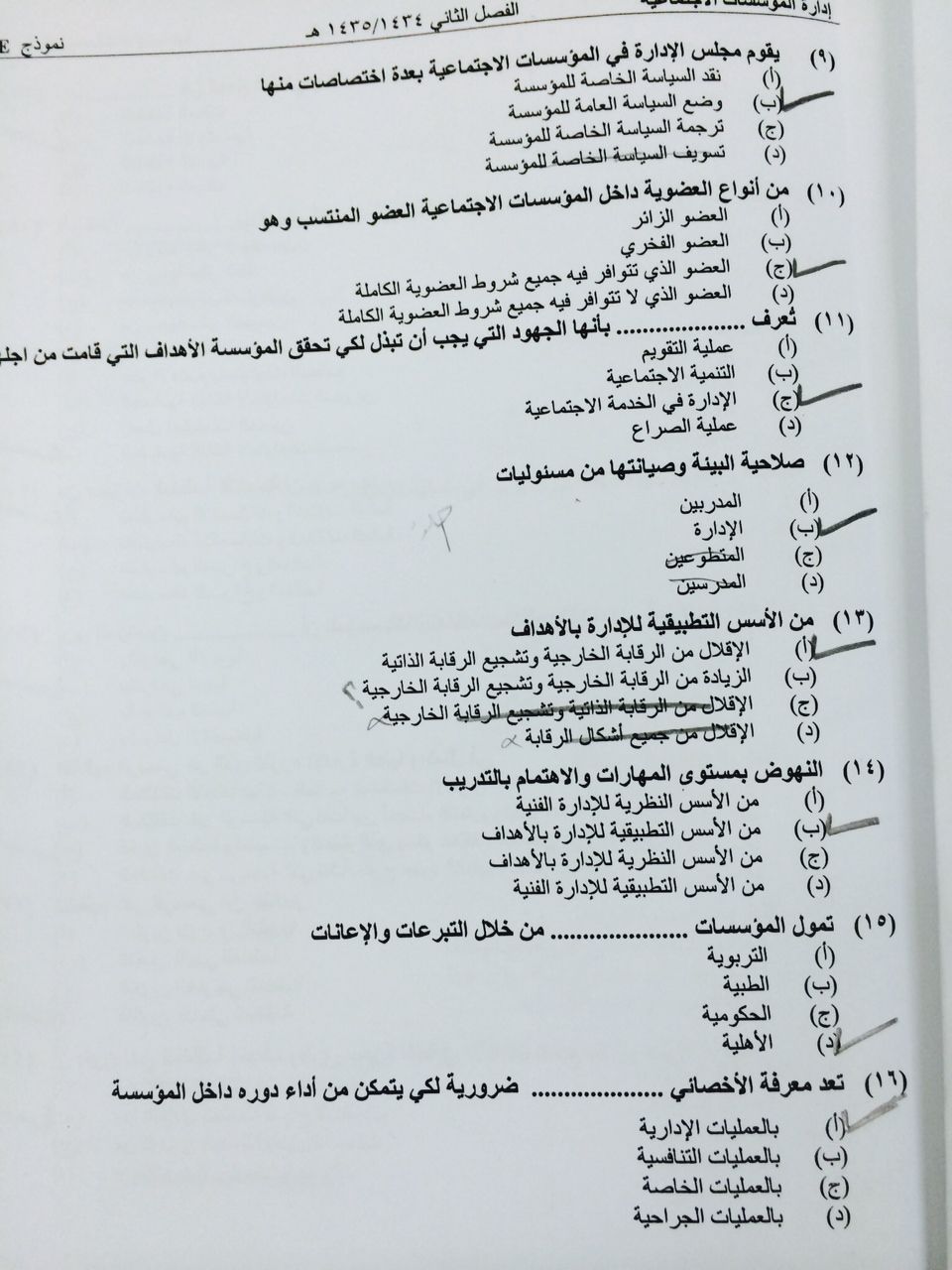 اسئلة مادة إدارة المؤسسات الاجتماعية الفصل الدراسي الثاني 1435هـ نموذج (e)
