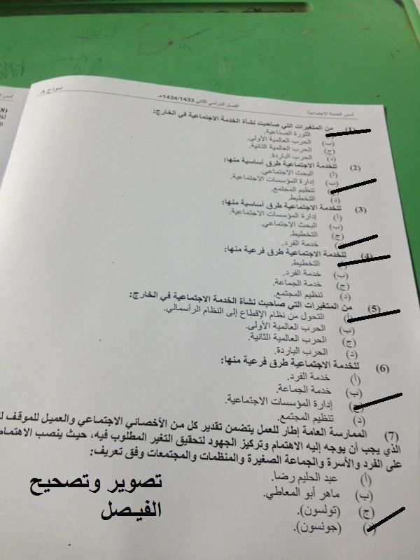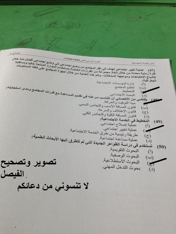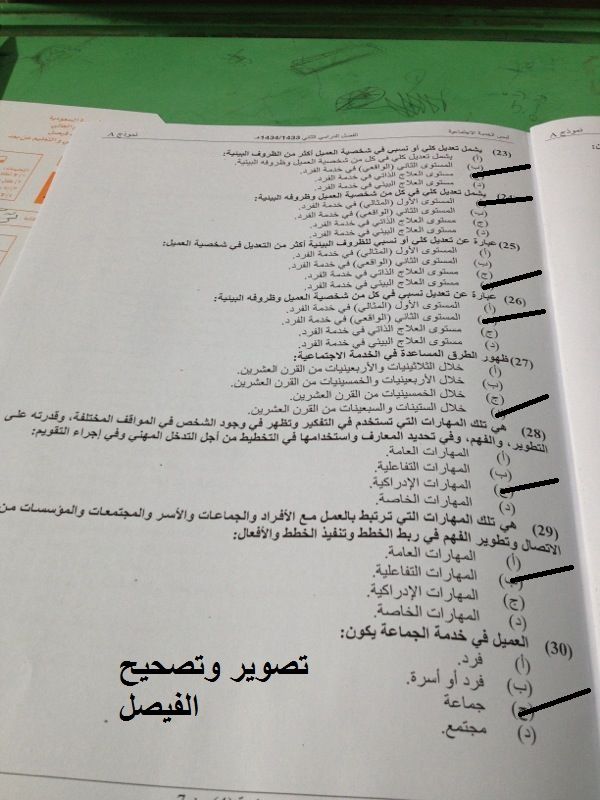 اسئلة مادة أسس الخدمة الاجتماعية الفصل الدراسي الثاني 1434هـ نموذج (a)