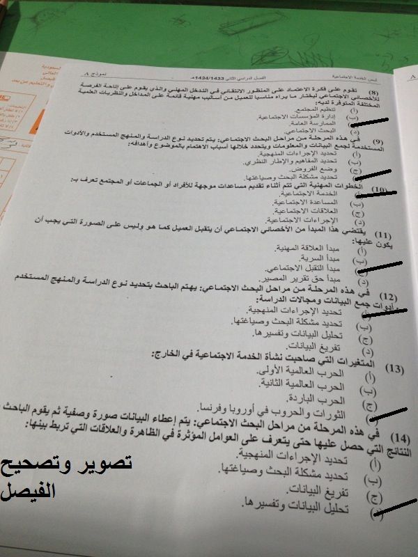 اسئلة مادة أسس الخدمة الاجتماعية الفصل الدراسي الأول 1435هـ نموذج (b)