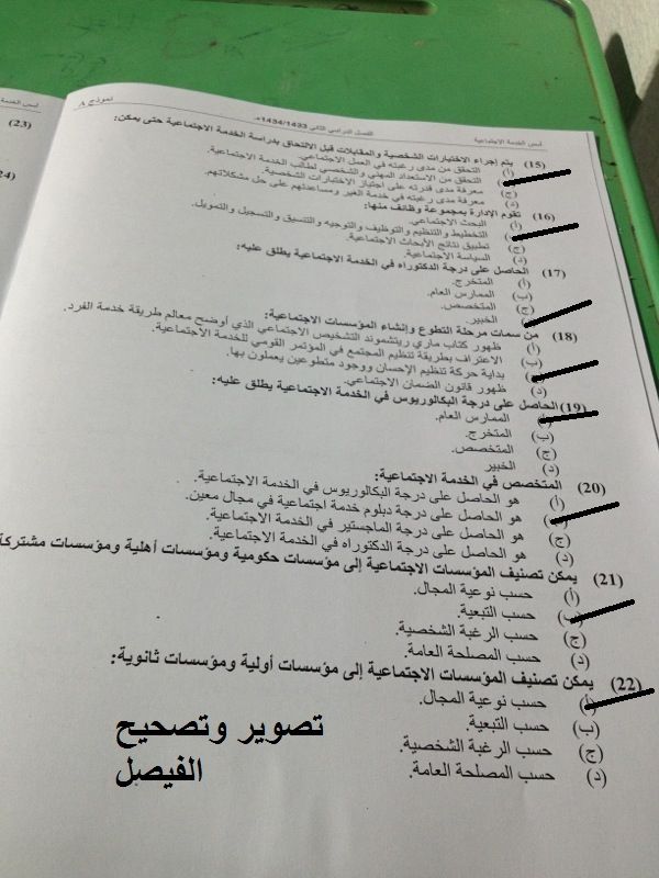 اسئلة اختبار أسس الخدمة الاجتماعية الفصل الدراسي الأول 1436هـ نموذج (B)