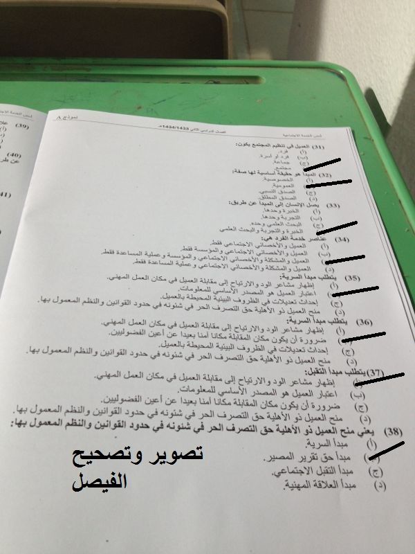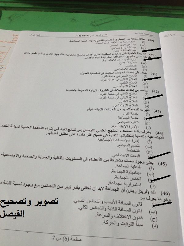 اسئلة اختبار أسس الخدمة الاجتماعية الفصل الدراسي الأول 1436هـ نموذج (A)