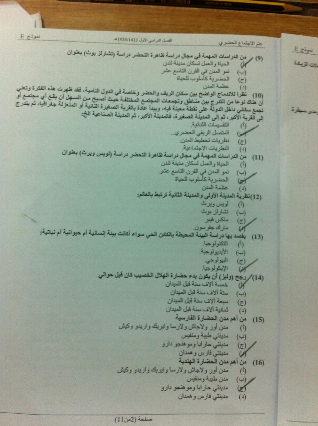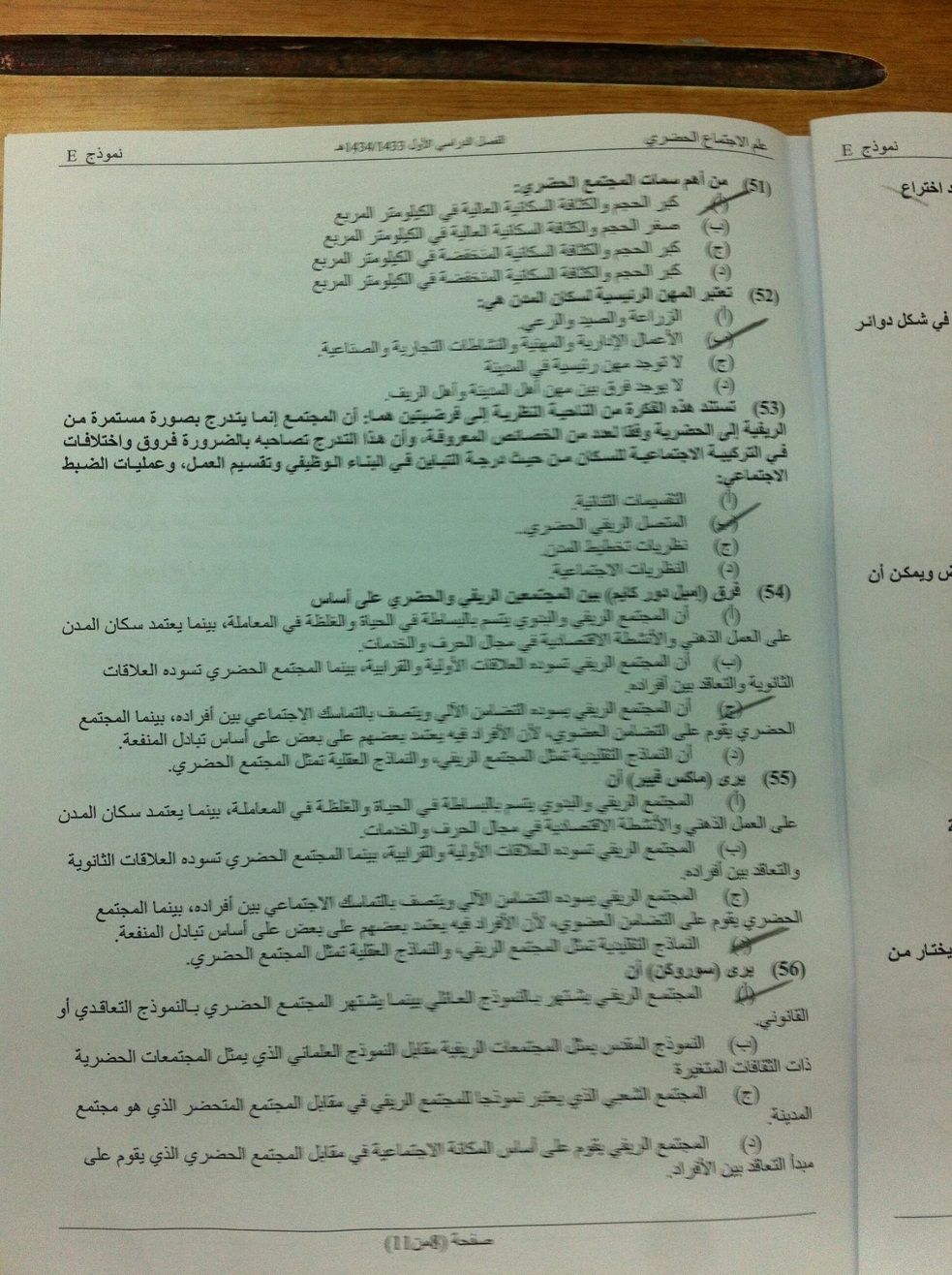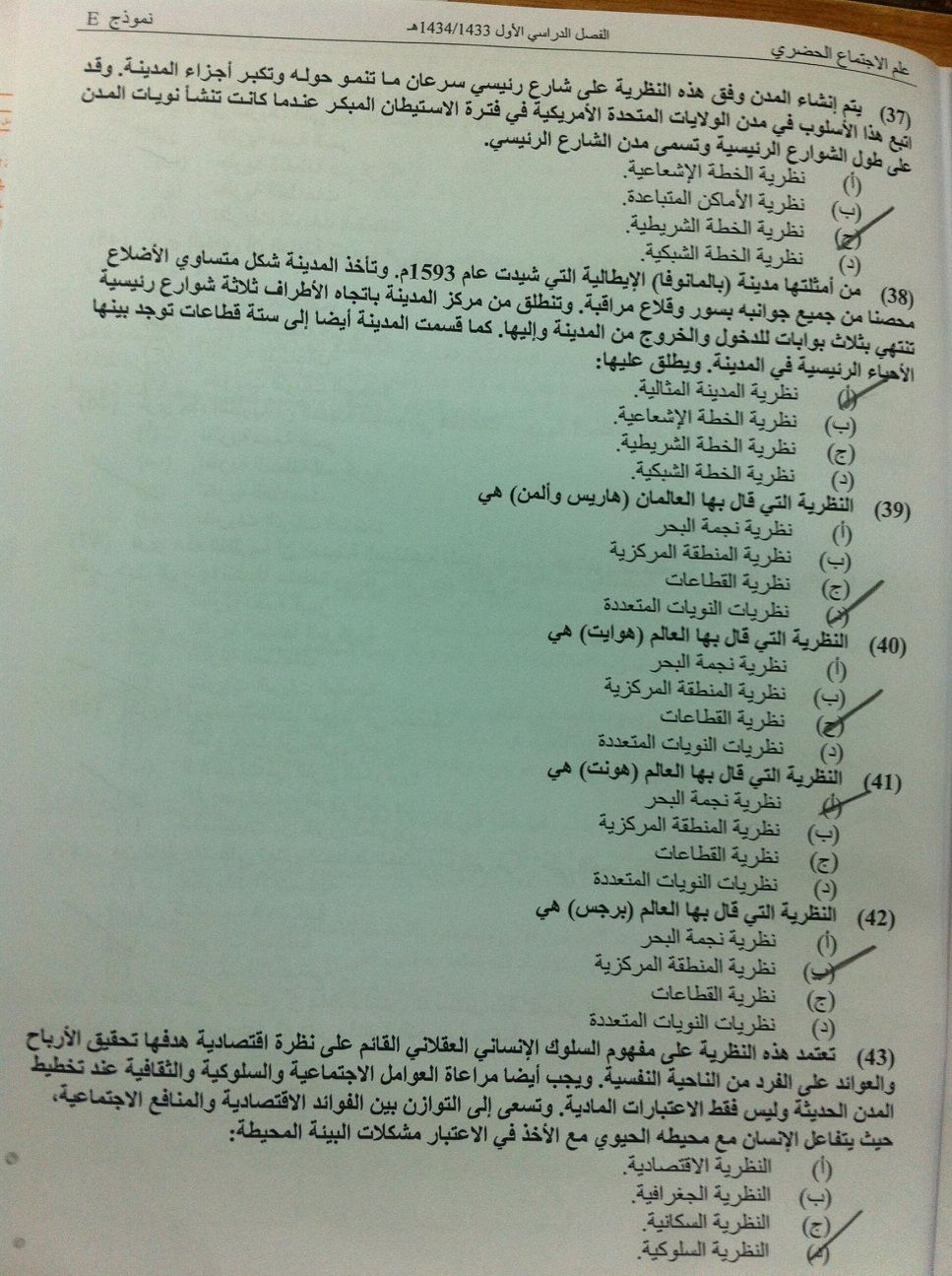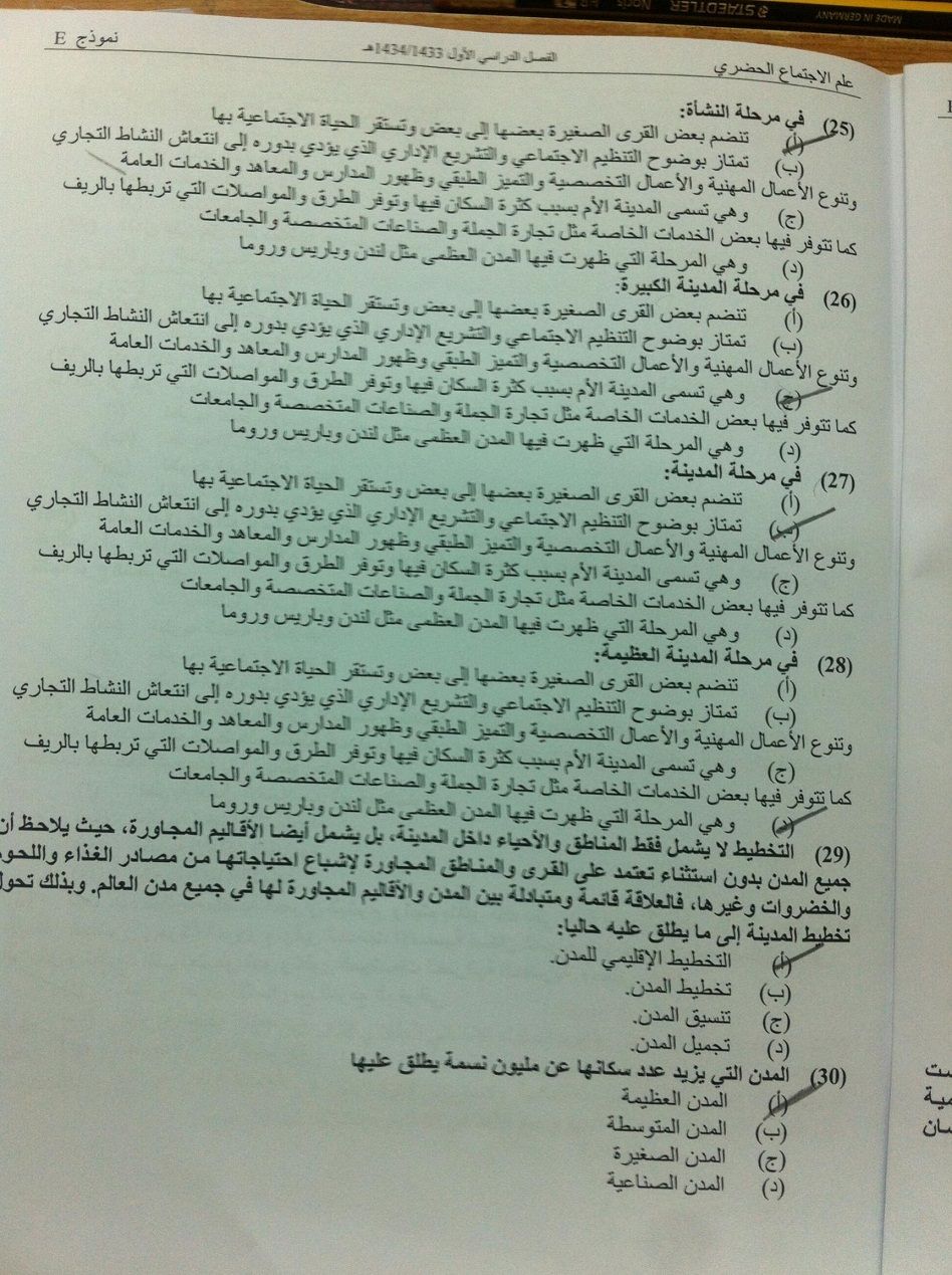 اسئلة مادة علم الاجتماع الحضري الفصل الدراسي الأول 1434هـ نموذج (e)