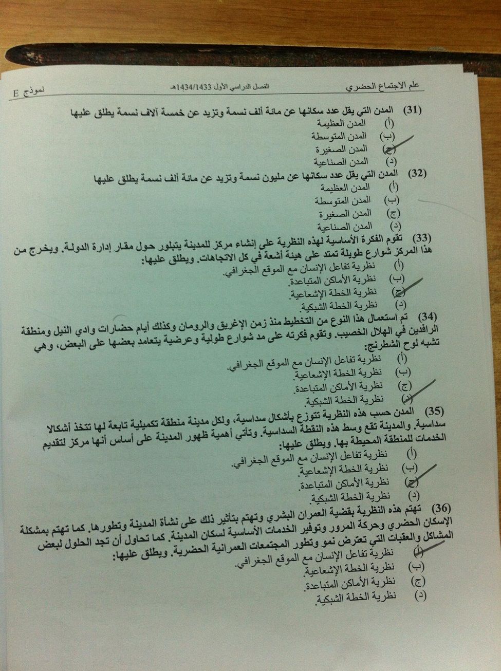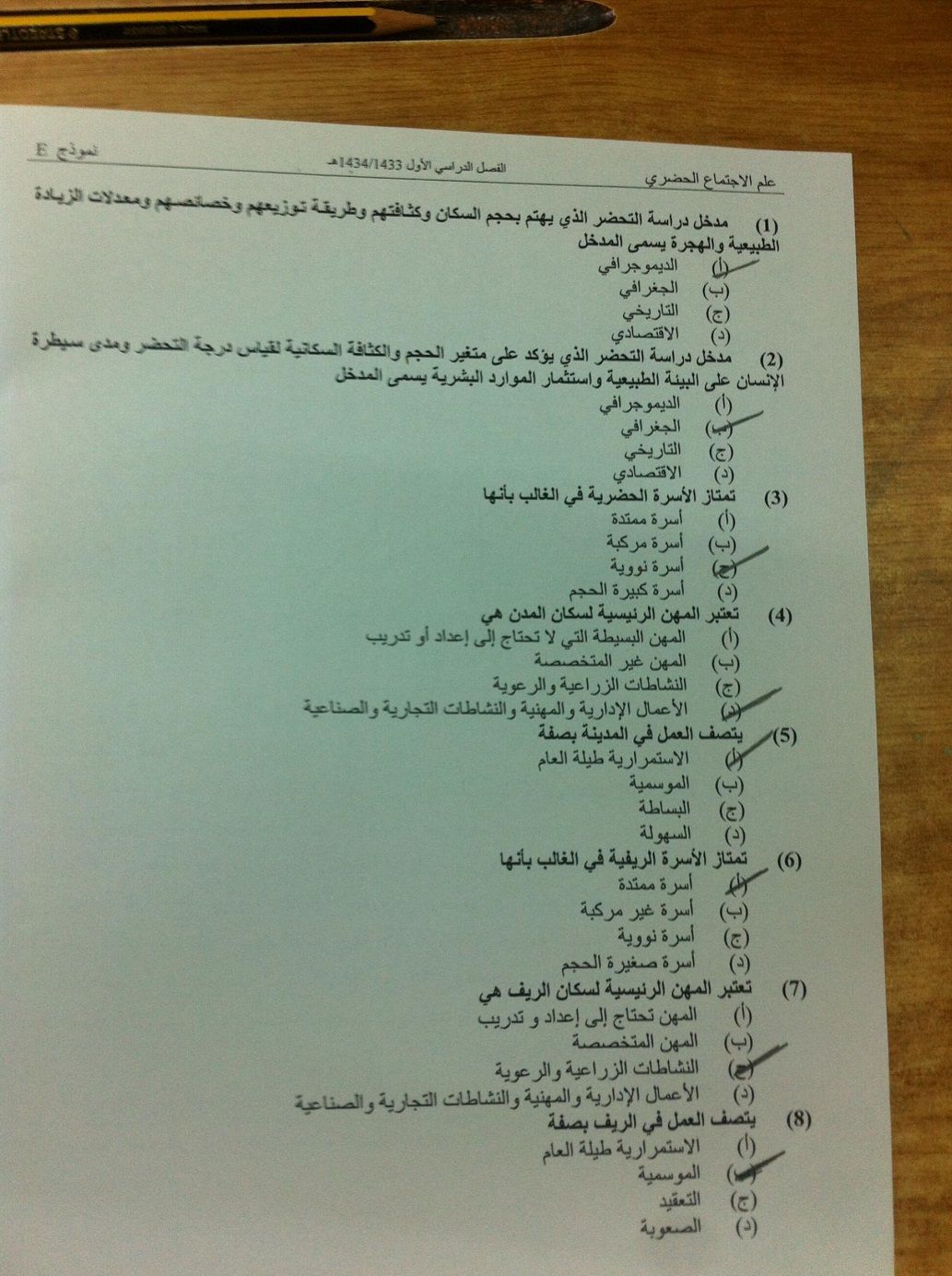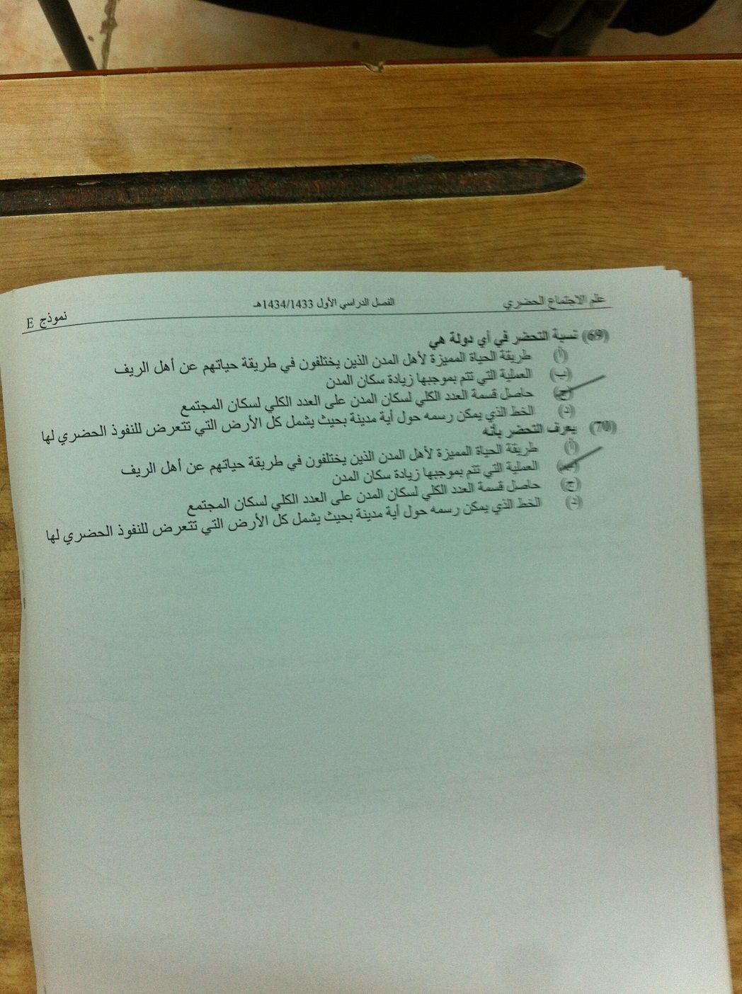 اسئلة مادة علم الاجتماع الحضري الفصل الدراسي الأول 1434هـ نموذج (e)