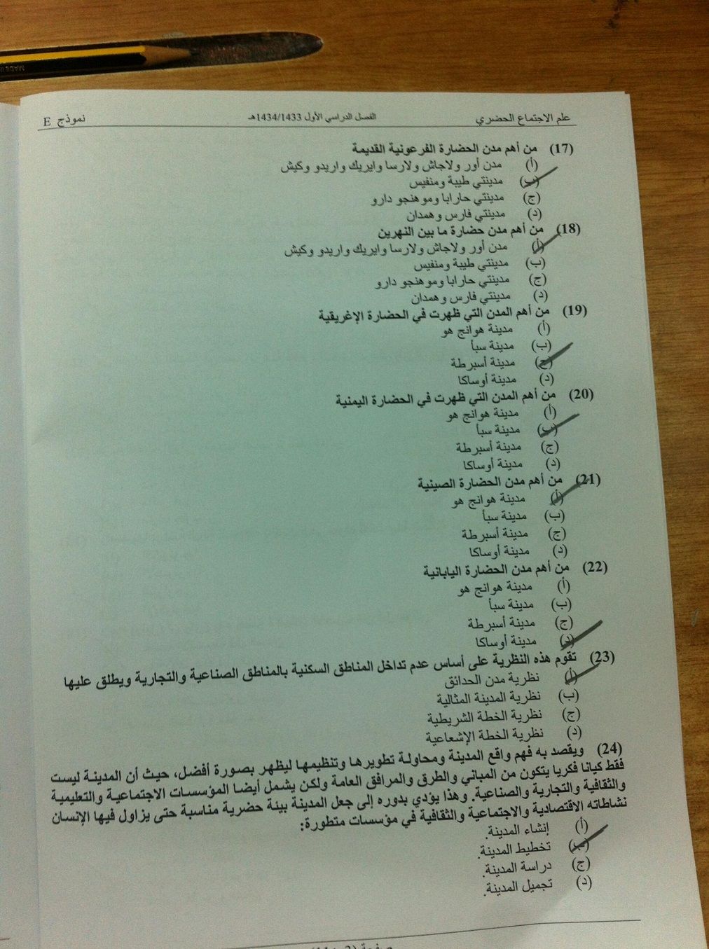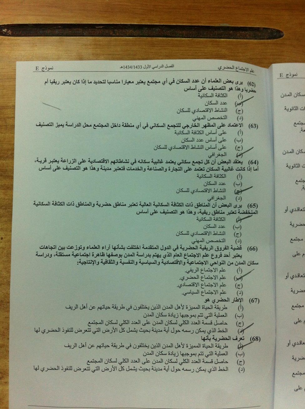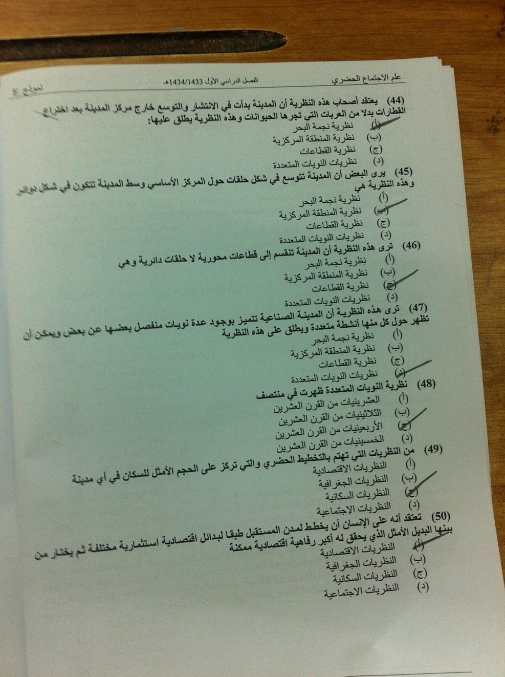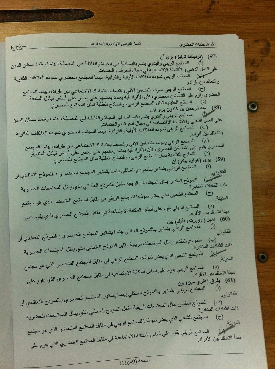 اسئلة مادة علم الاجتماع الحضري الفصل الدراسي الأول 1434هـ نموذج (e)