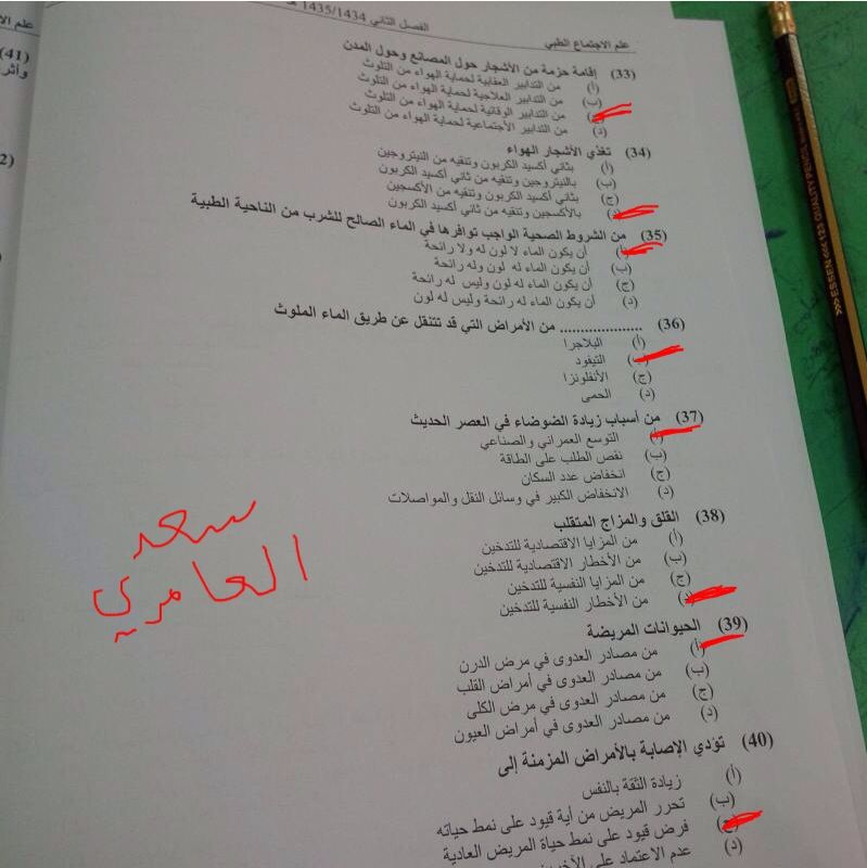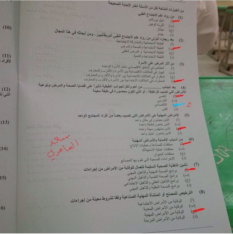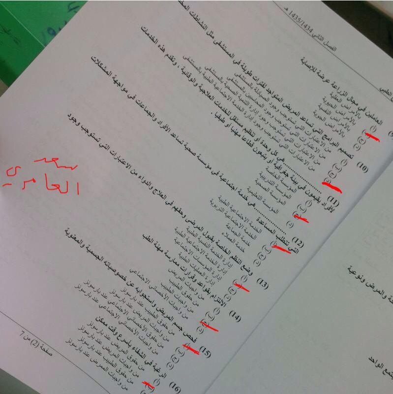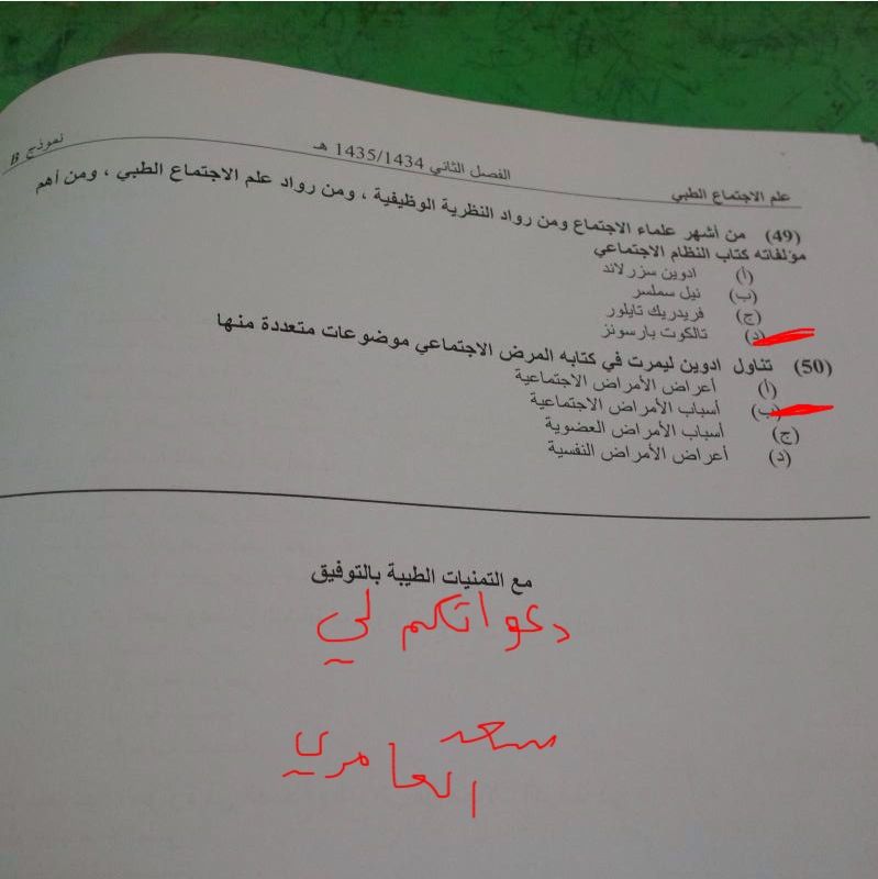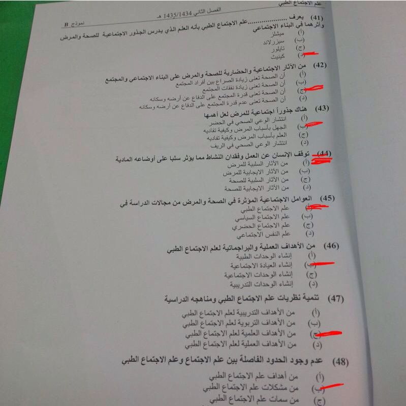اسئلة مادة علم الاجتماع الطبي الفصل الدراسي الثاني 1435هـ نموذج (b)