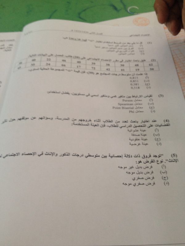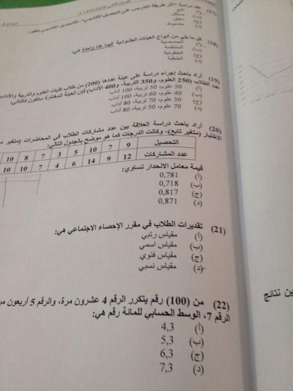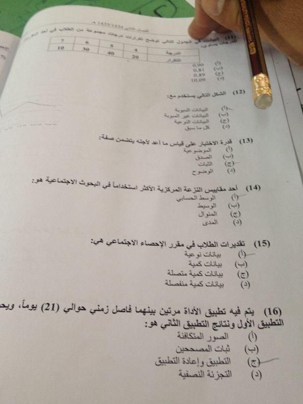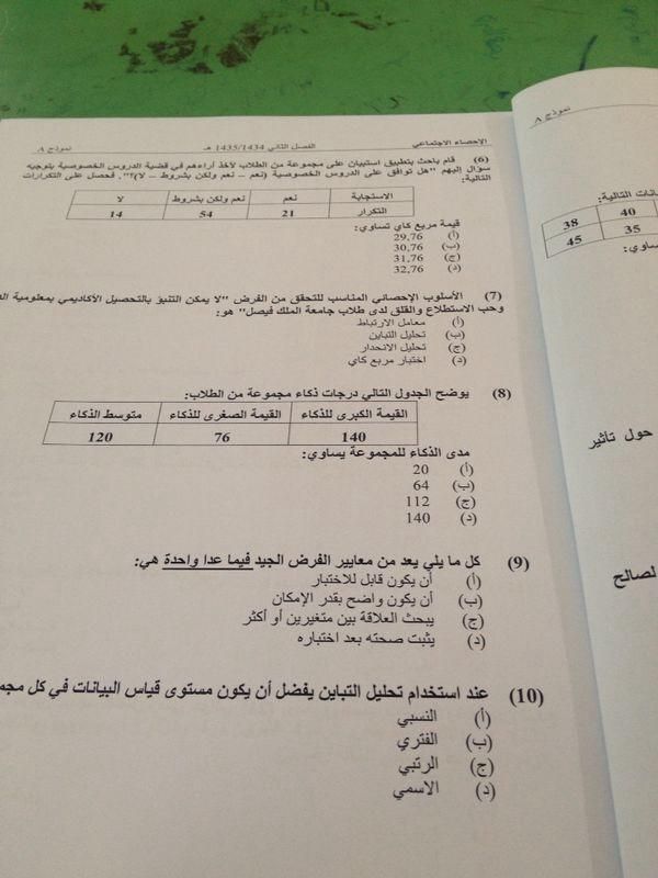 اسئلة مادة الإحصاء الاجتماعي الفصل الدراسي الثاني 1435هـ نموذج (a)