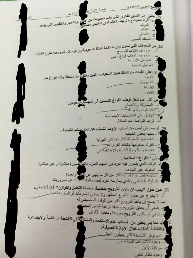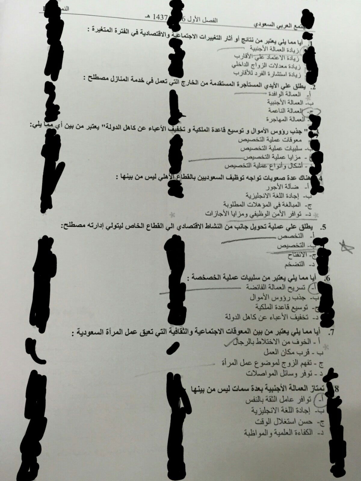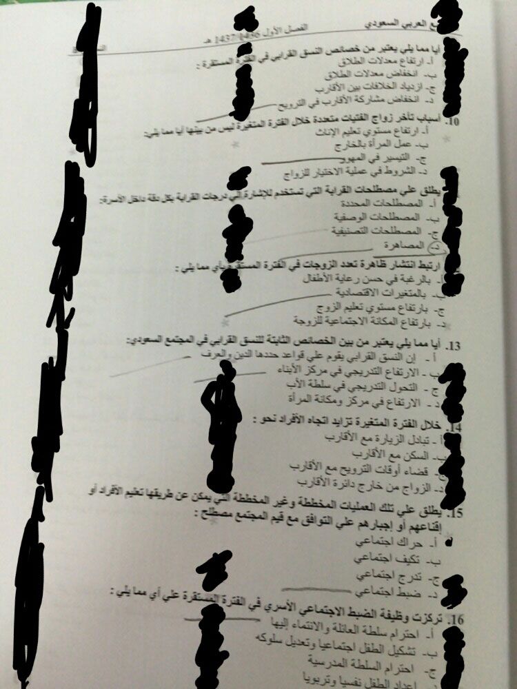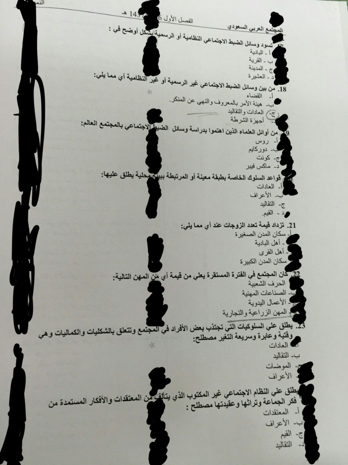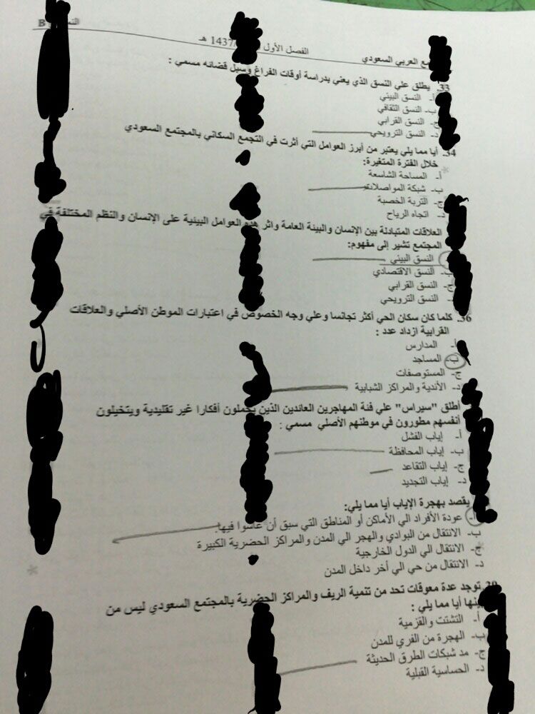 اختبار المجتمع العربي السعودي الفصل الأول 1437 نموذج B