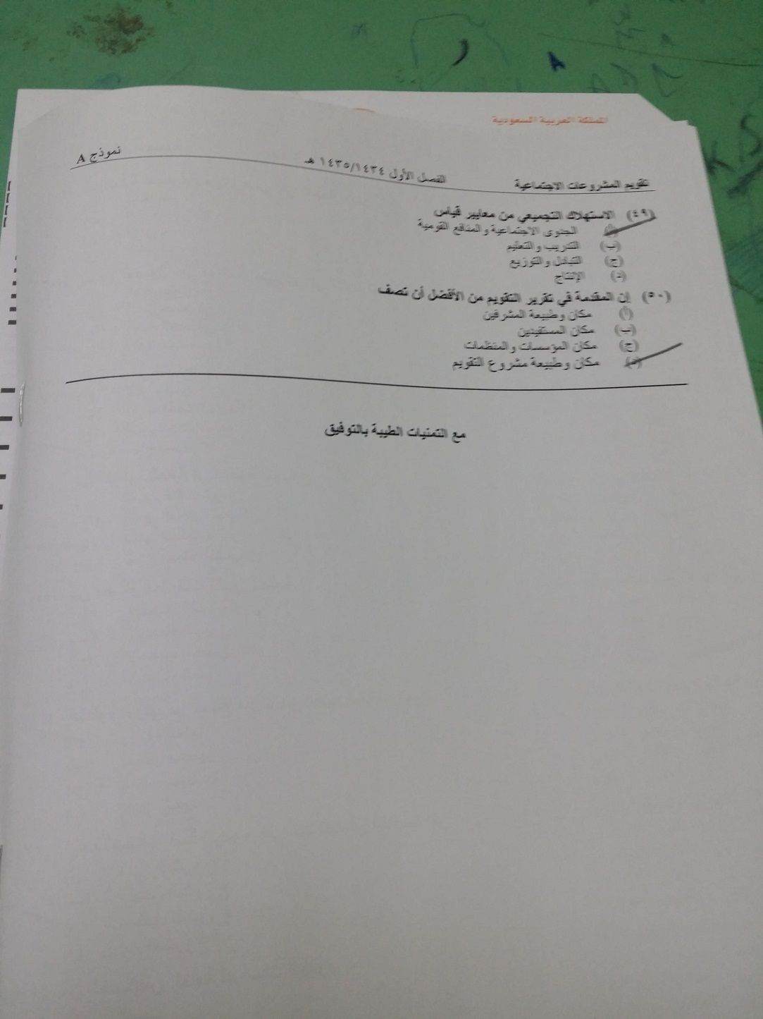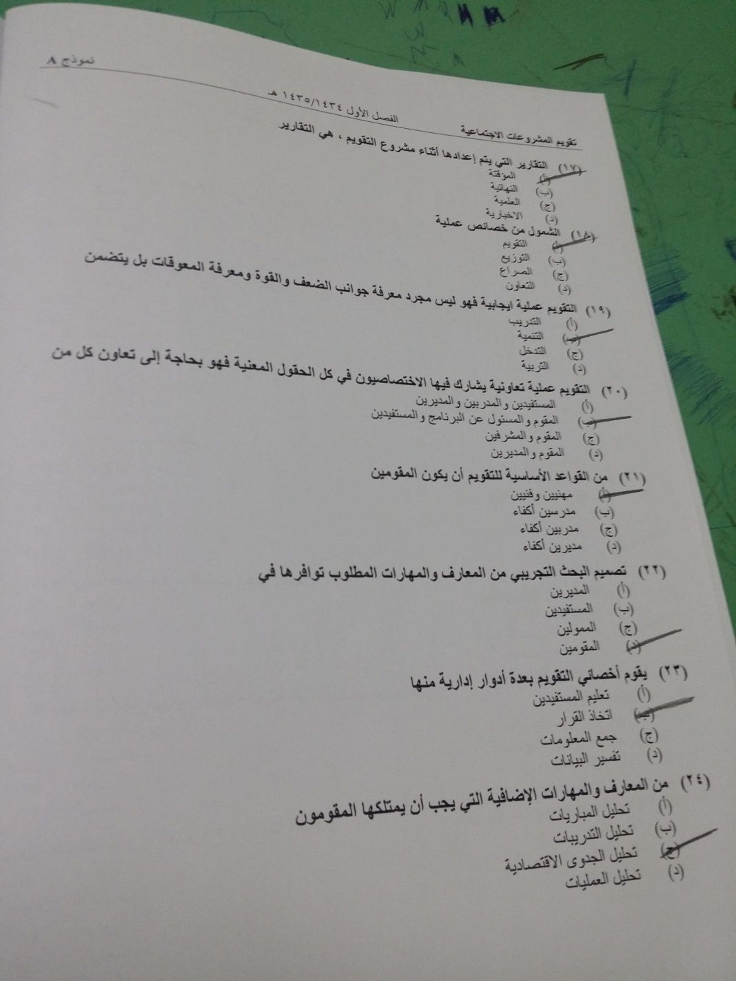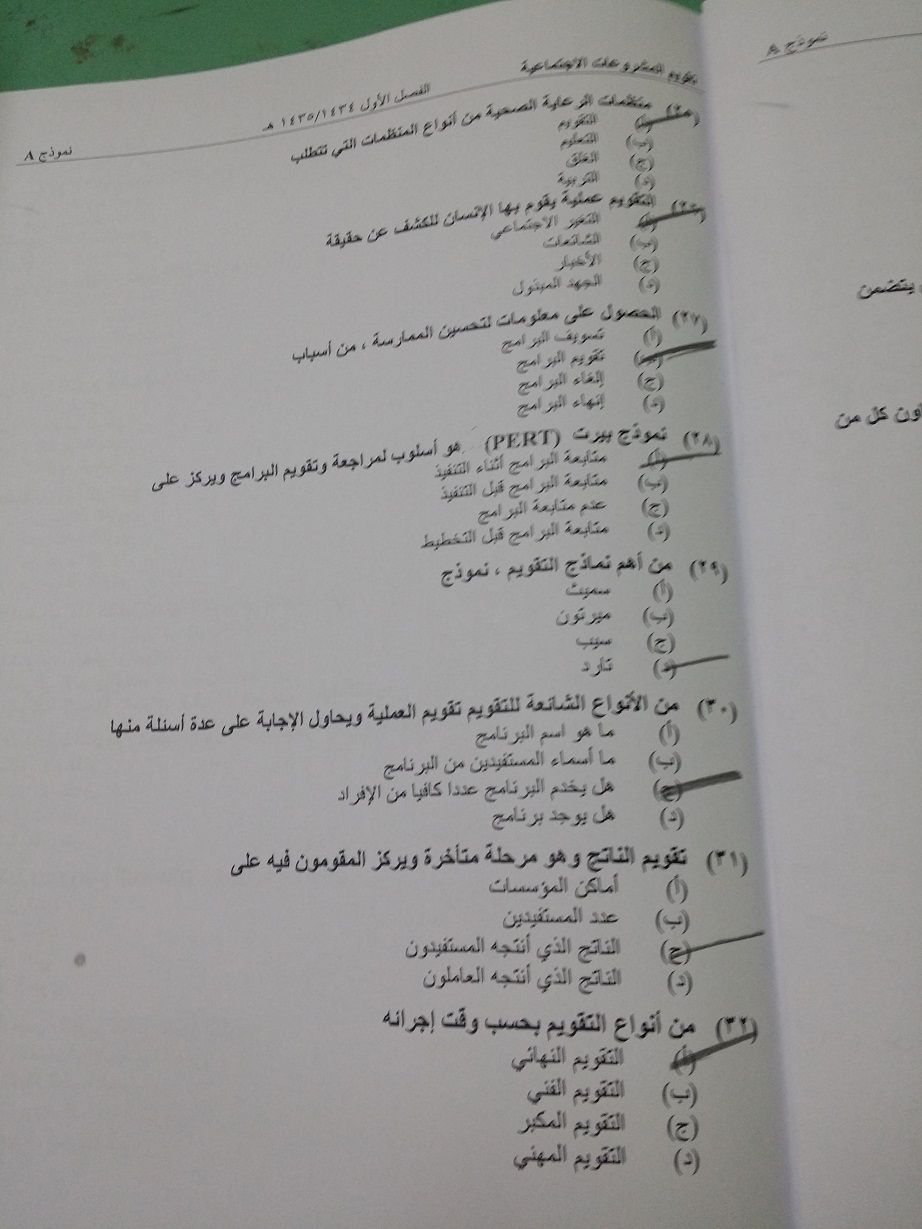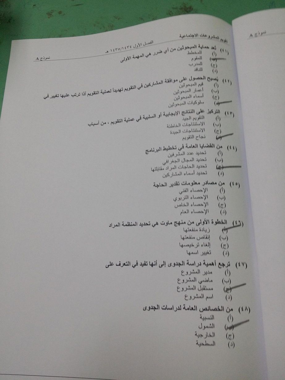 اسئلة مادة تقويم المشروعات الاجتماعية الفصل الدراسي الأول 1435هـ نموذج (a)