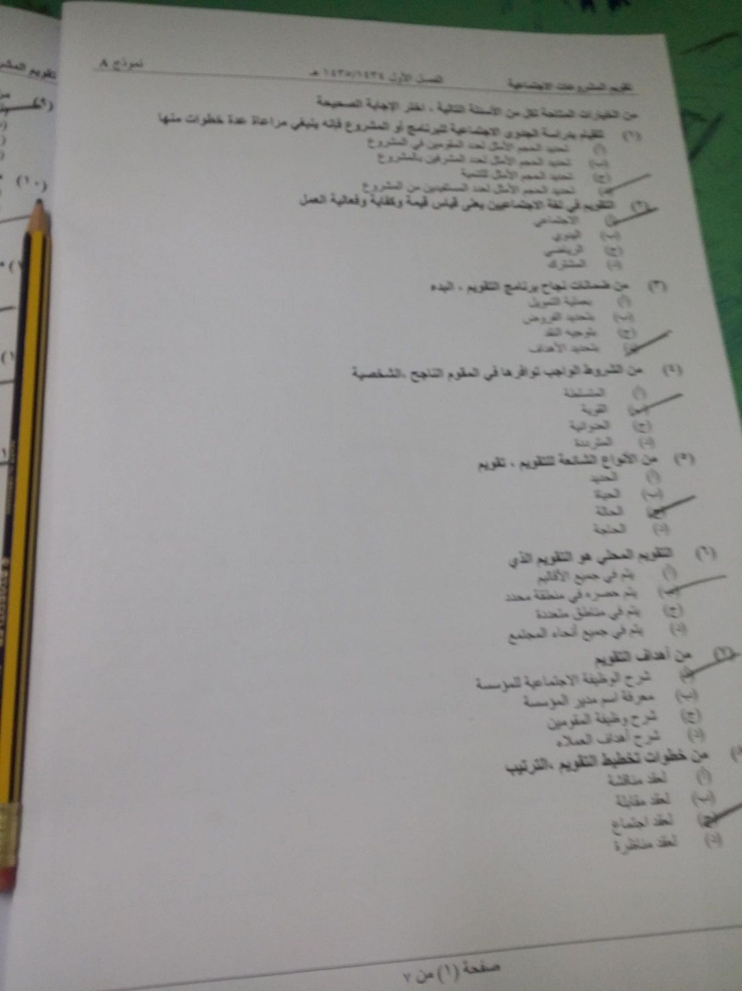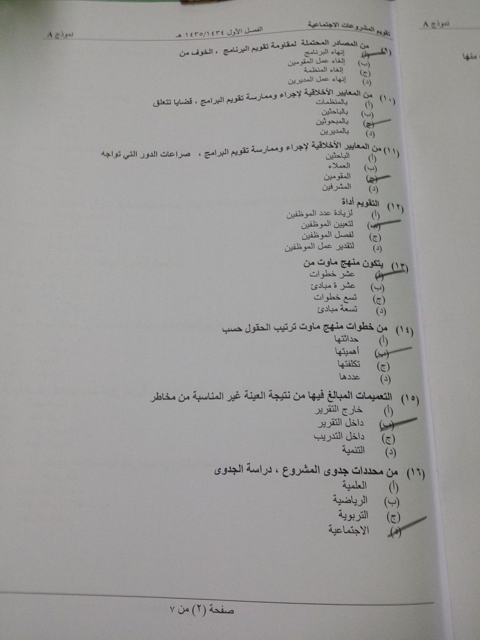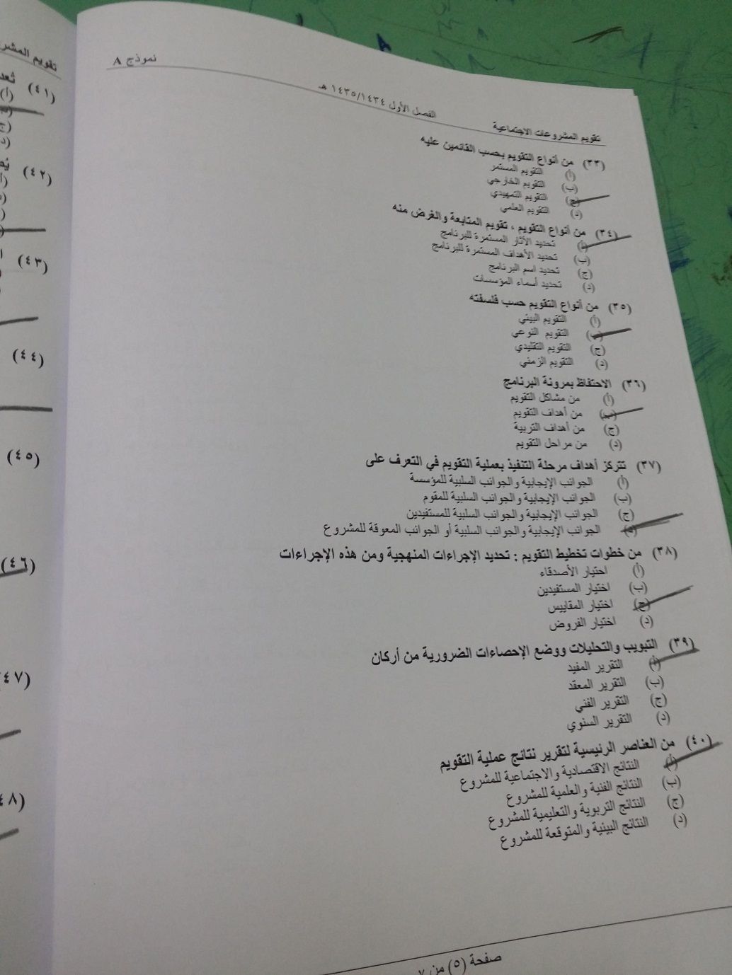اسئلة مادة تقويم المشروعات الاجتماعية الفصل الدراسي الأول 1435هـ نموذج (a)