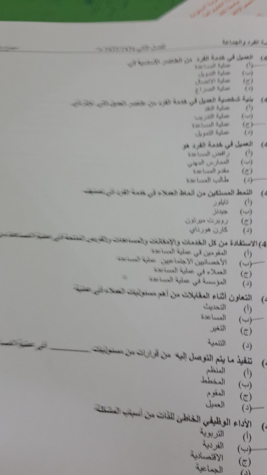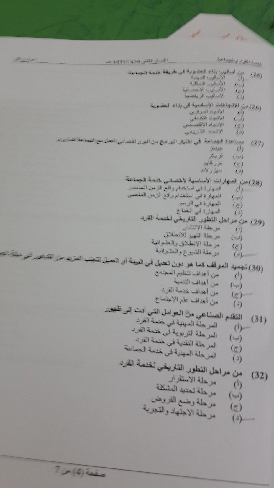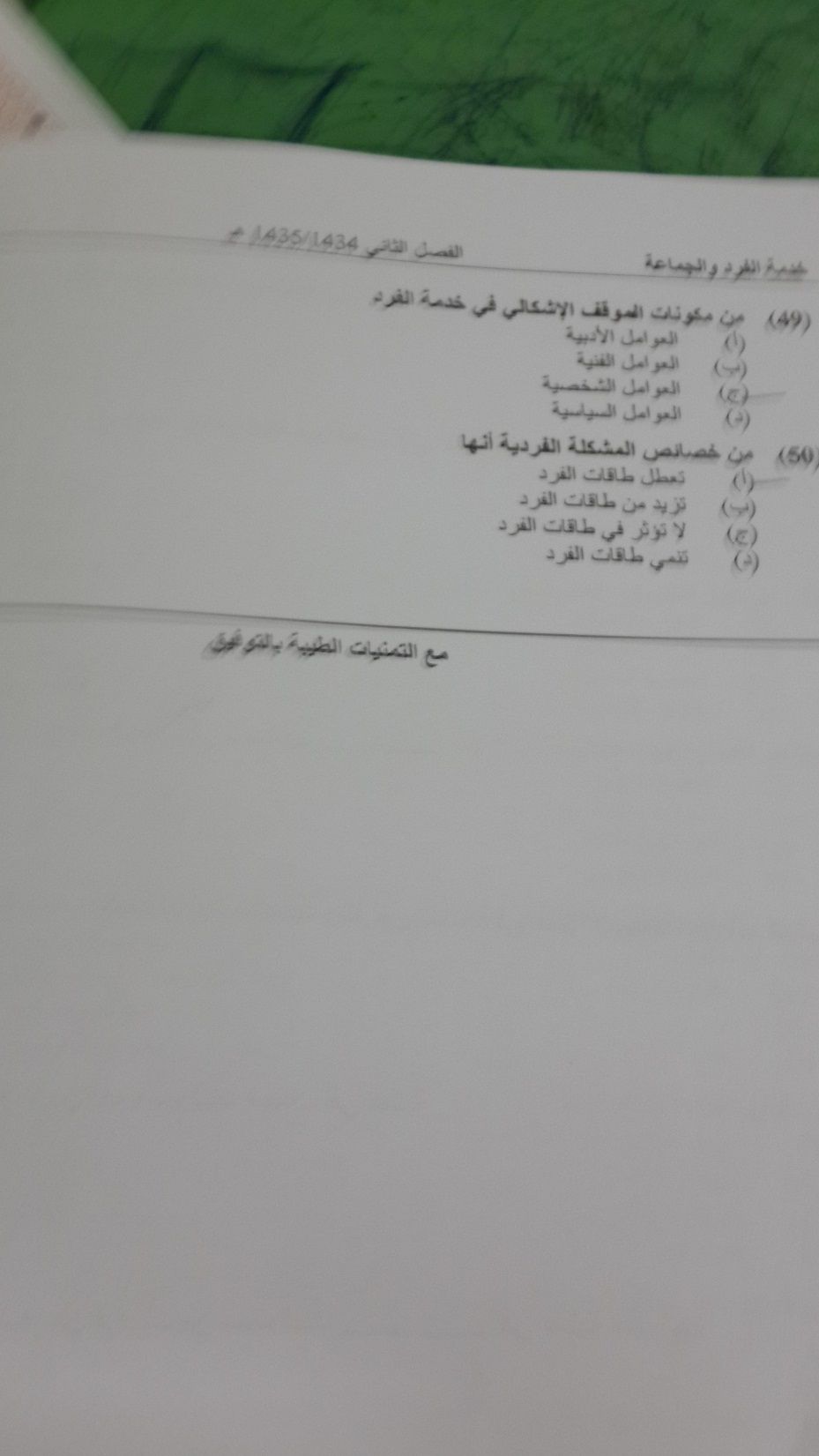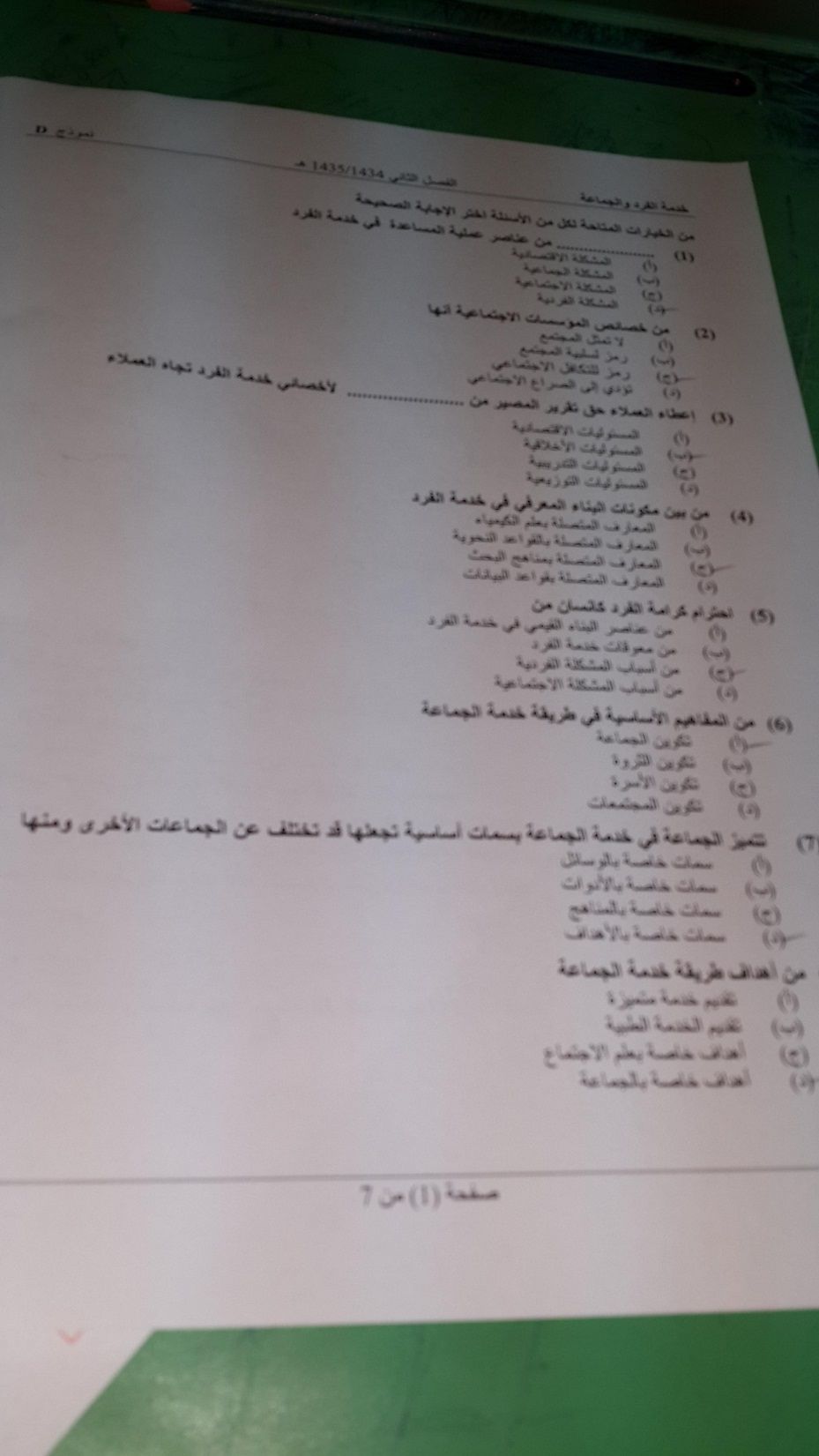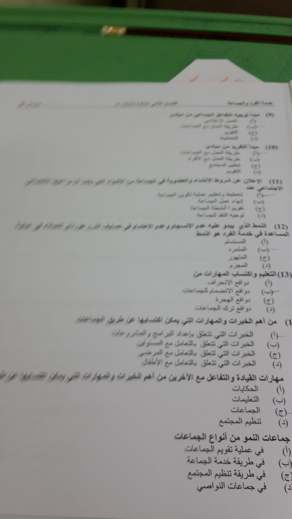 اسئلة مادة علم اجتماع الأسرة والطفولة الفصل الدراسي الأول 1434هـ نموذج (c)