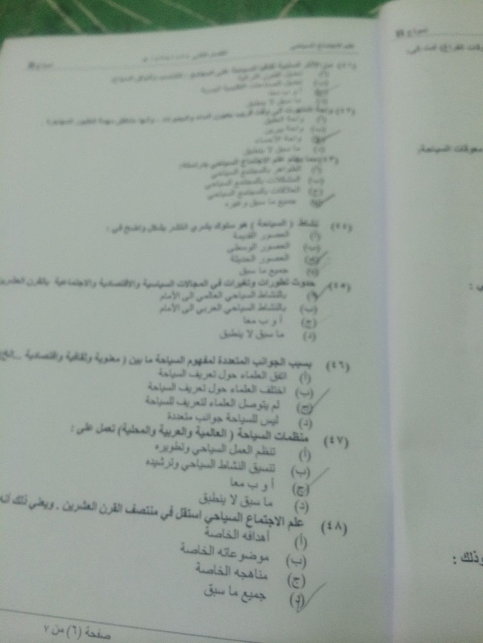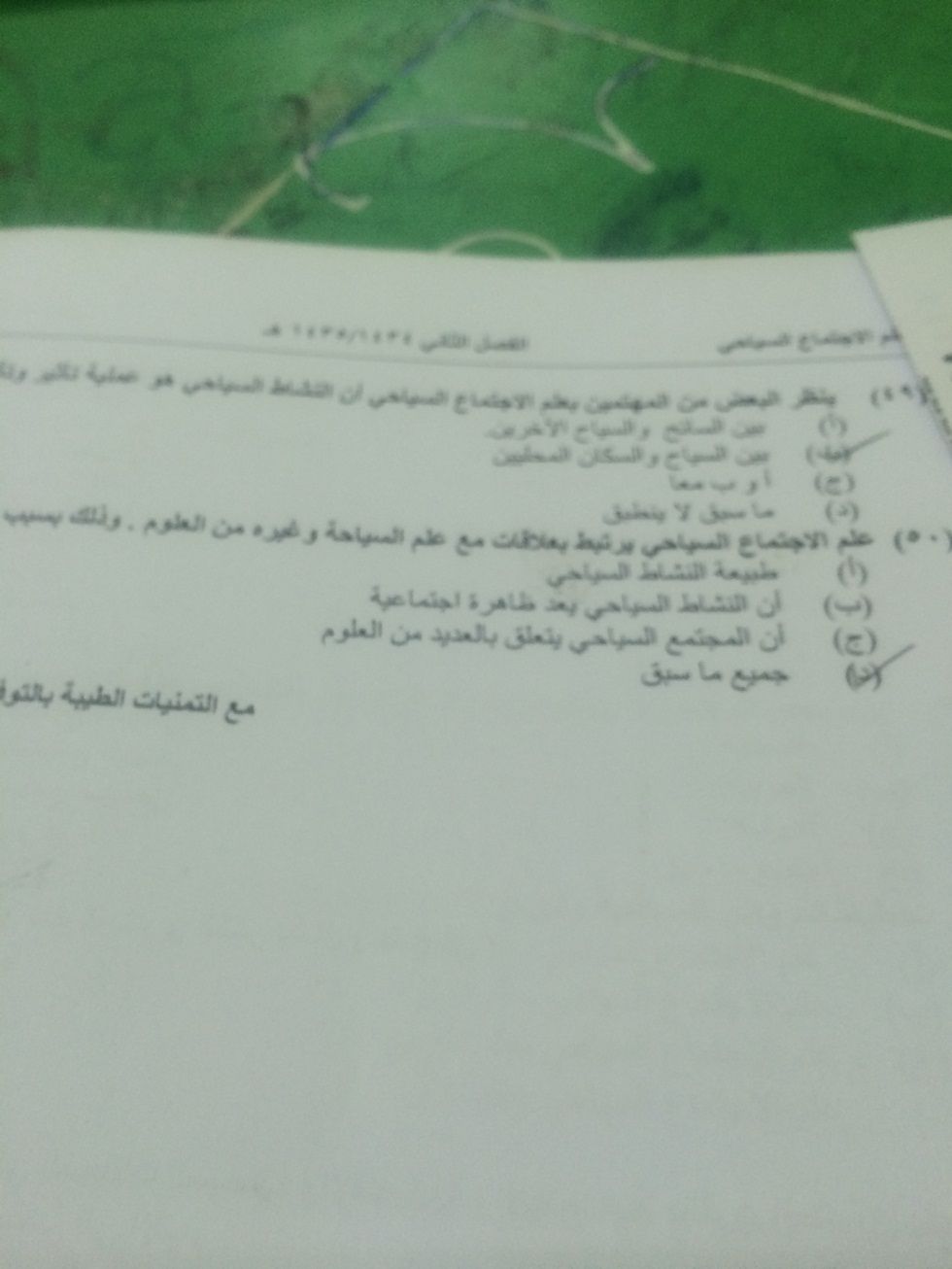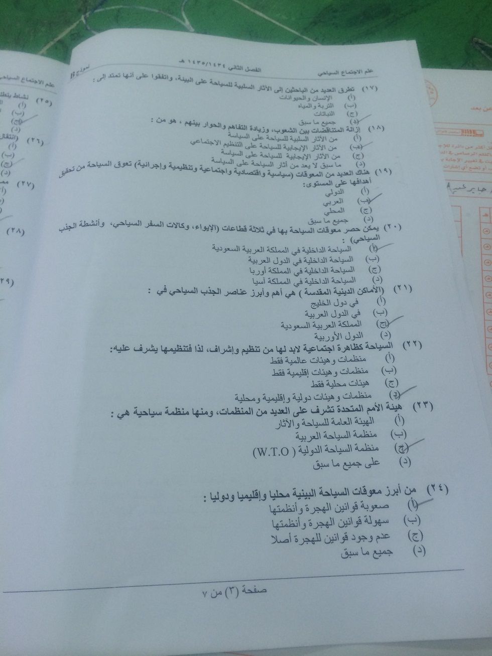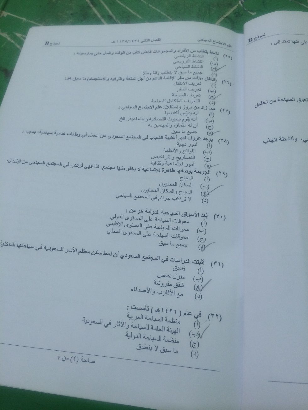 اسئلة مادة علم الاجتماع السياحي الفصل الدراسي الثاني 1435هـ نموذج (b)