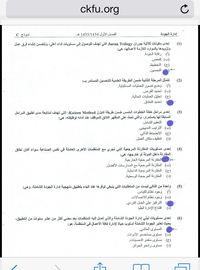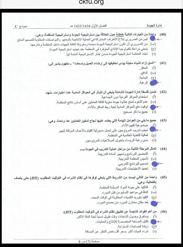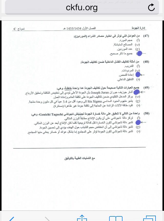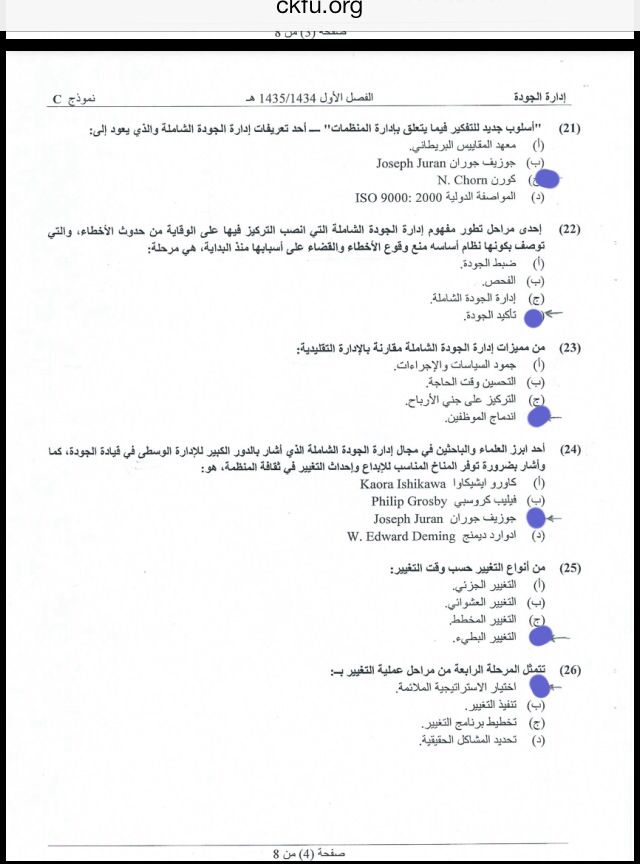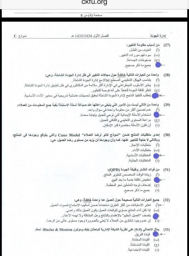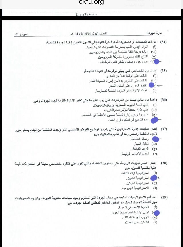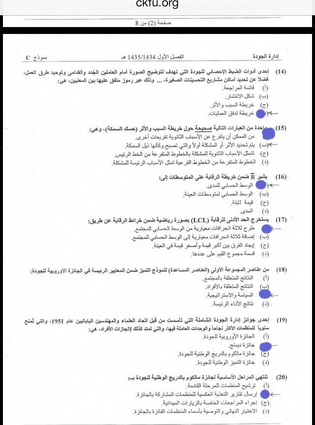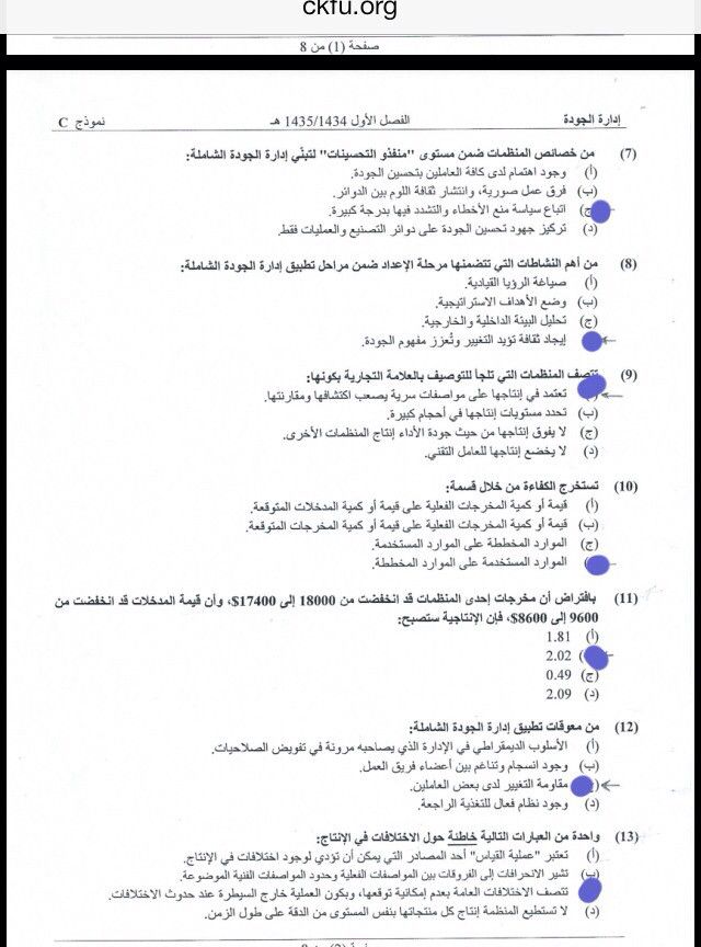 اسئلة اختبار مادة إدارة الجودة الفصل الدراسي الأول 1435هـ نموذج (c)