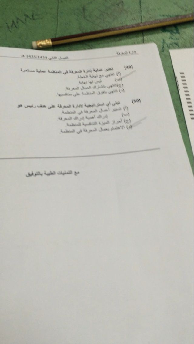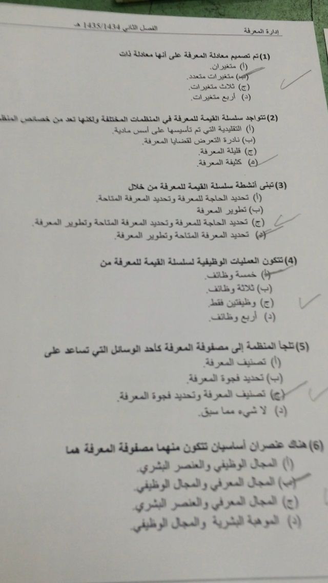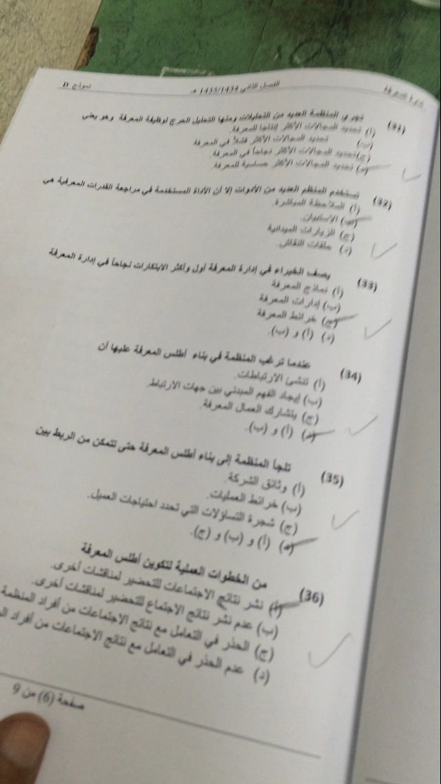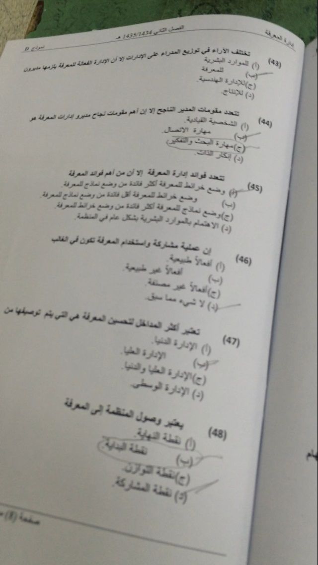 اسئلة اختبار مادة إدارة المعرفة الفصل الدراسي الثاني 1435هـ نموذج (d)