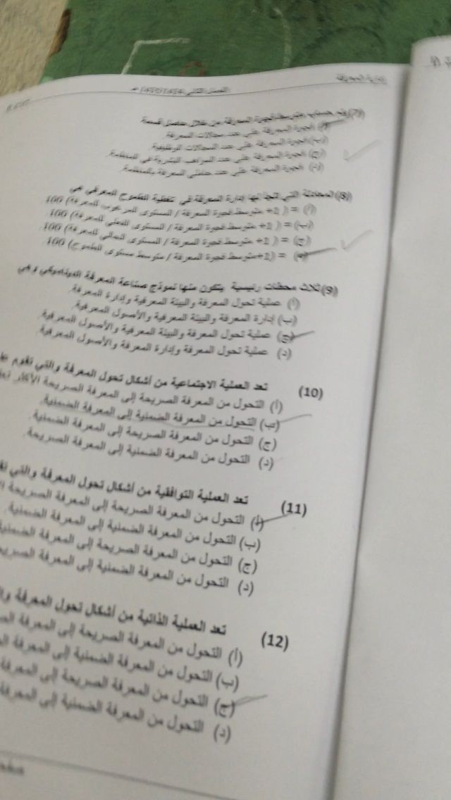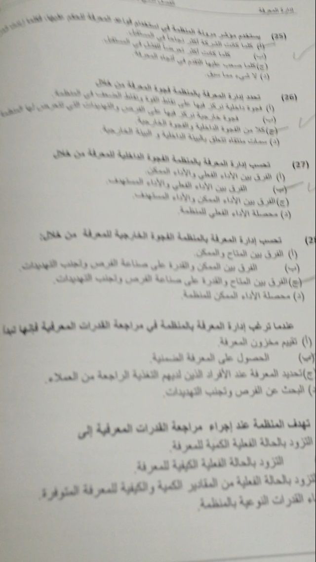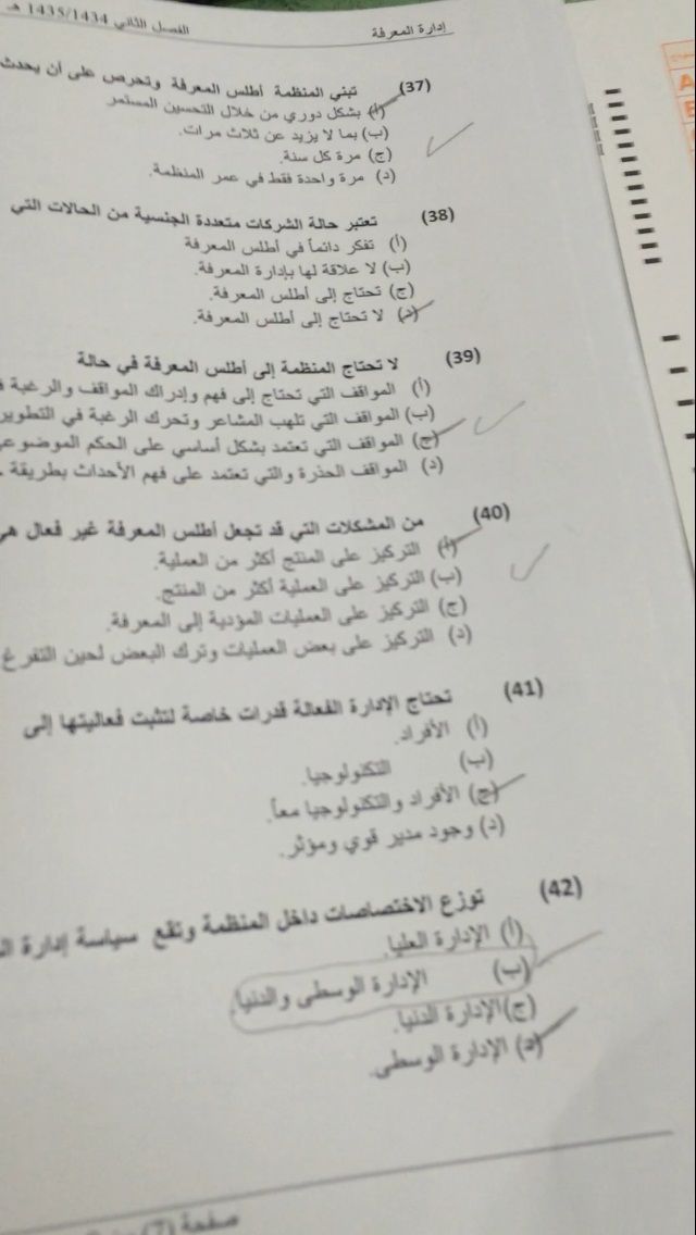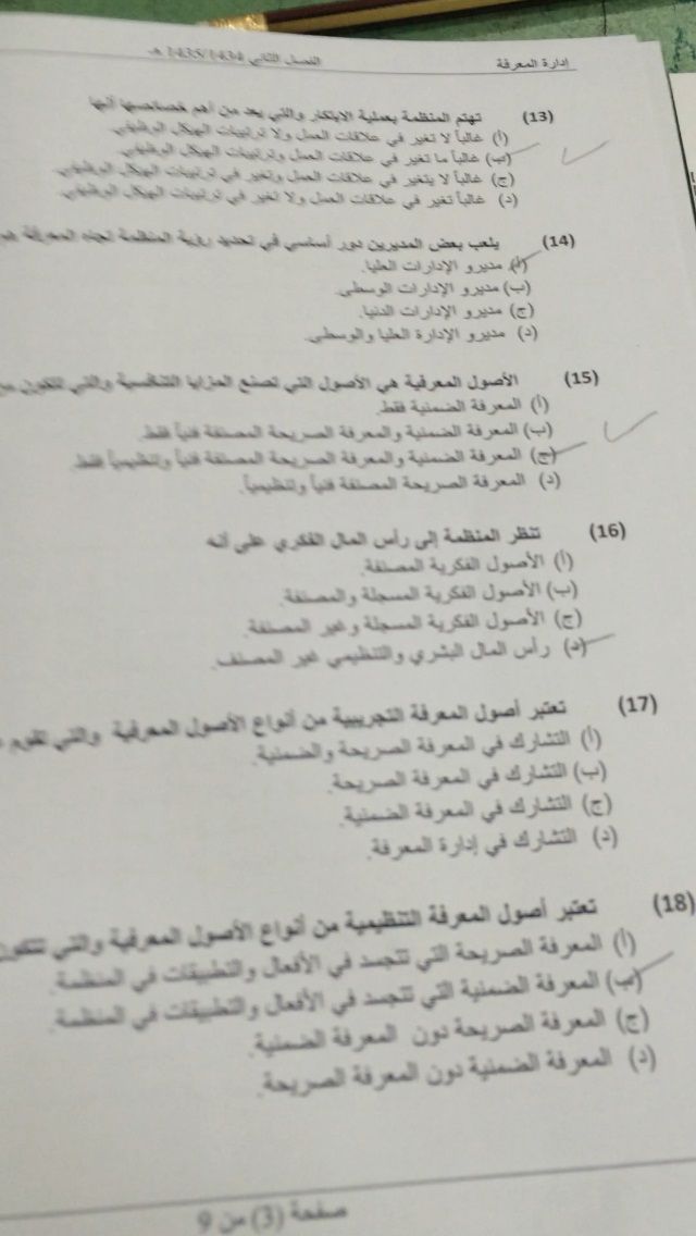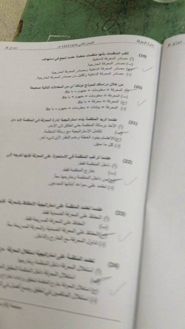 اسئلة اختبار مادة إدارة المعرفة الفصل الدراسي الثاني 1435هـ نموذج (d)