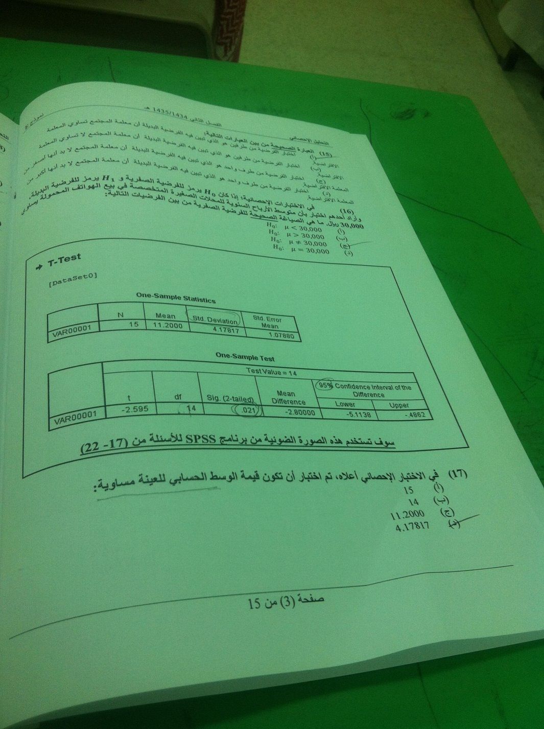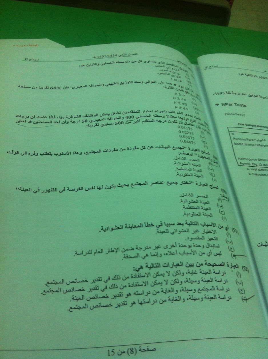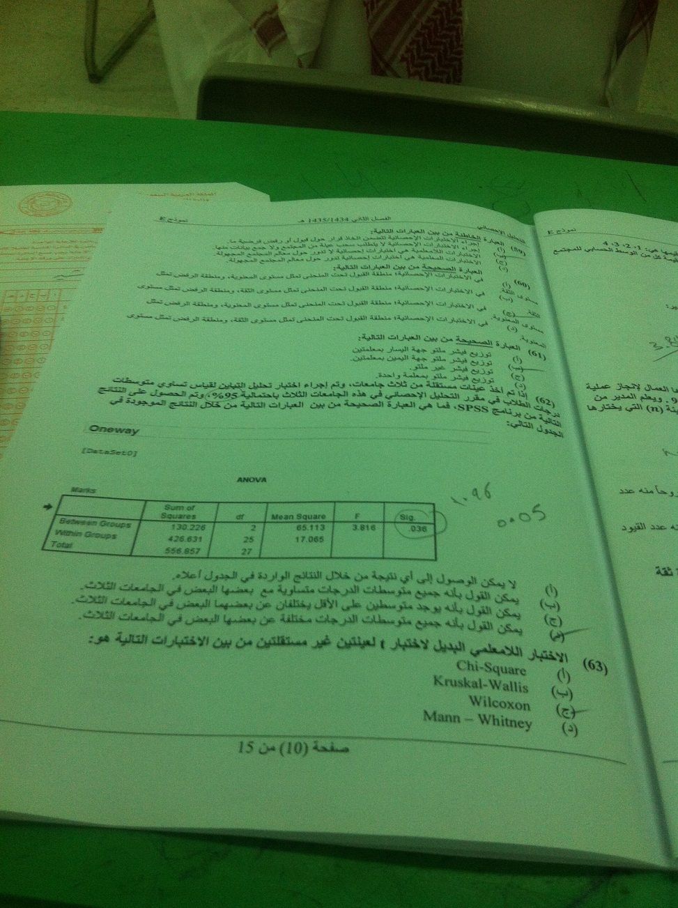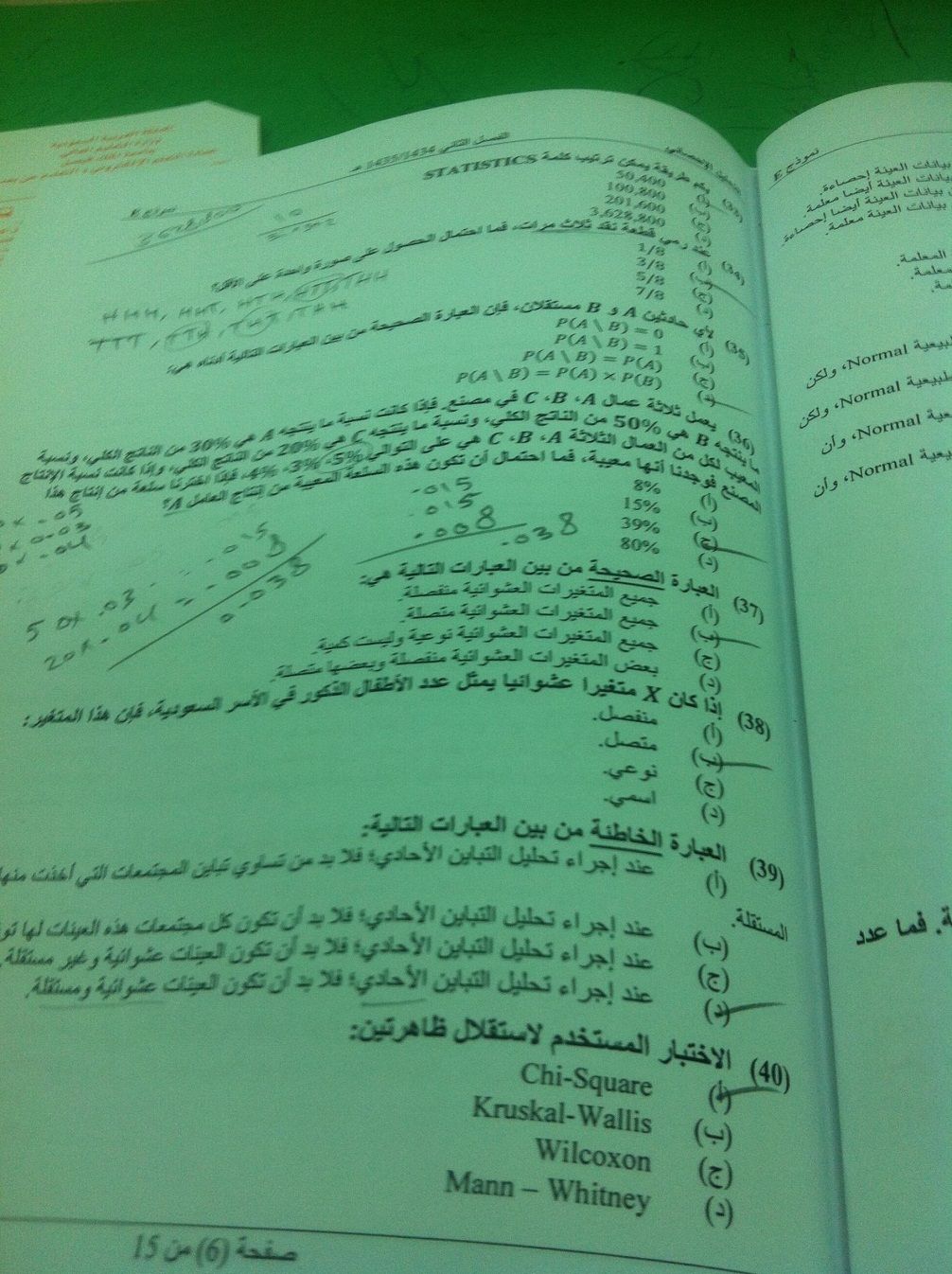 اسئلة اختبار مادة التحليل الإحصائي الفصل الثاني 1435هـ نموذج (e)