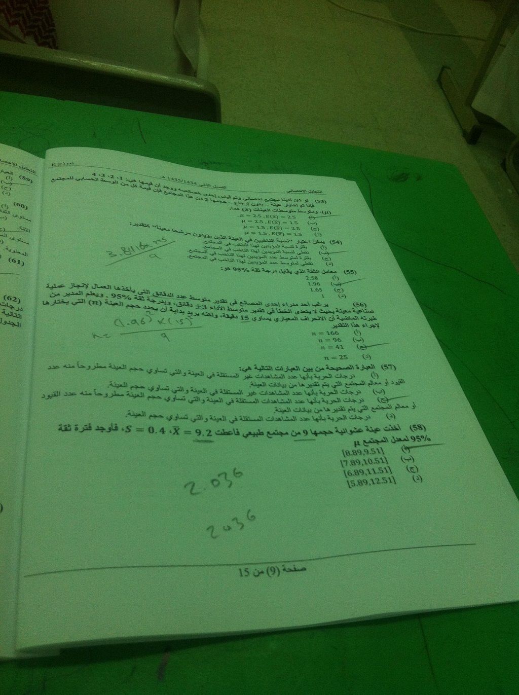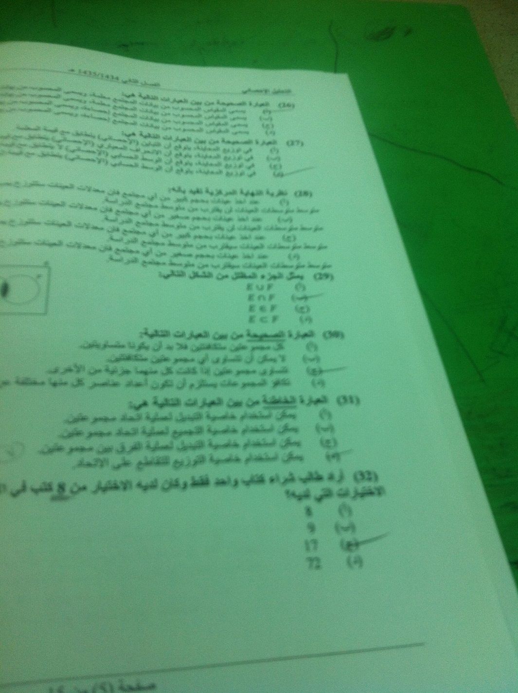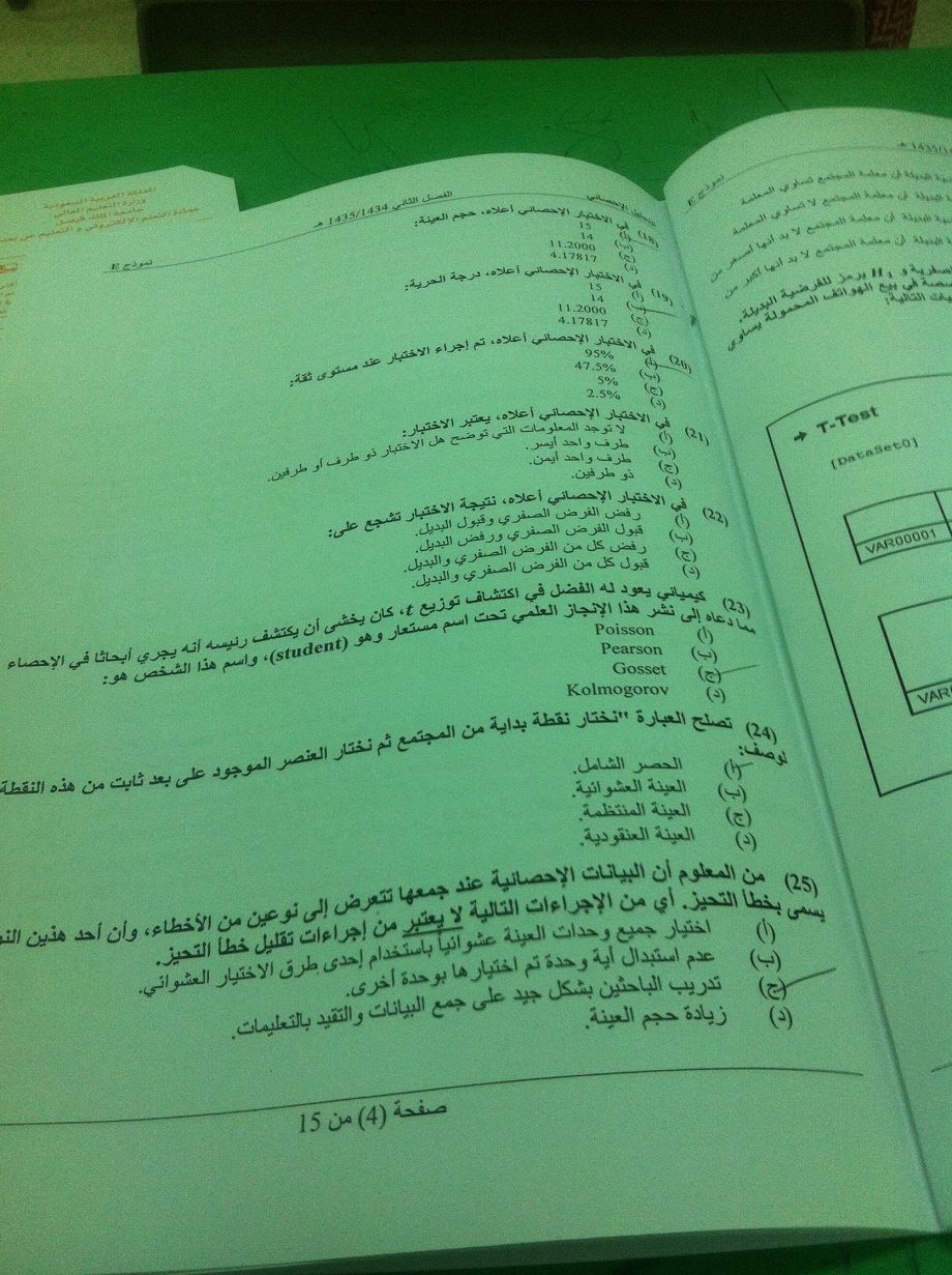 اسئلة اختبار مادة التحليل الإحصائي الفصل الثاني 1435هـ نموذج (e)