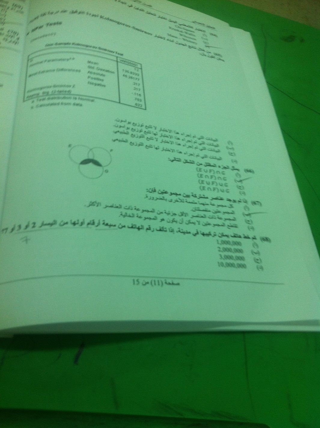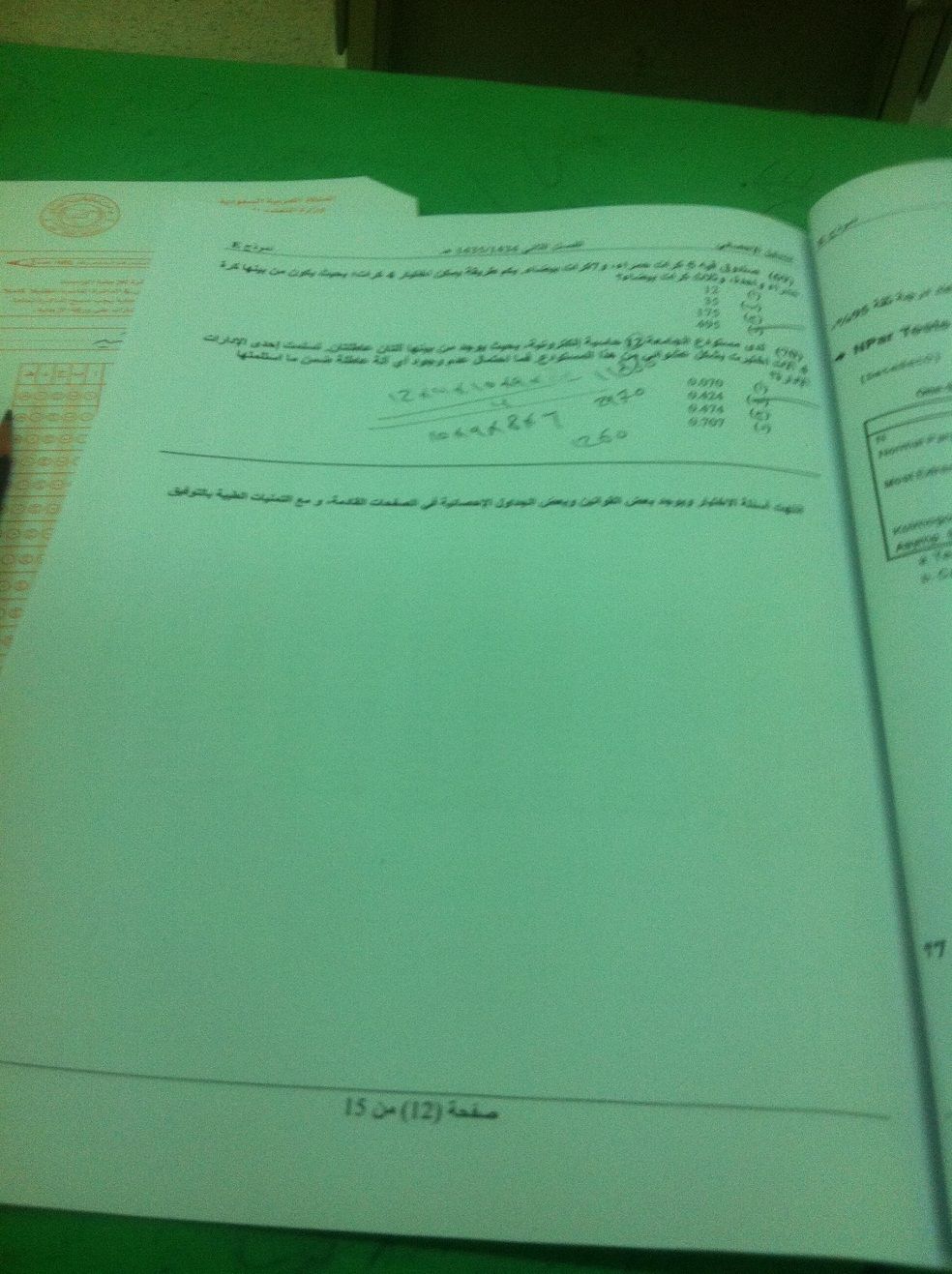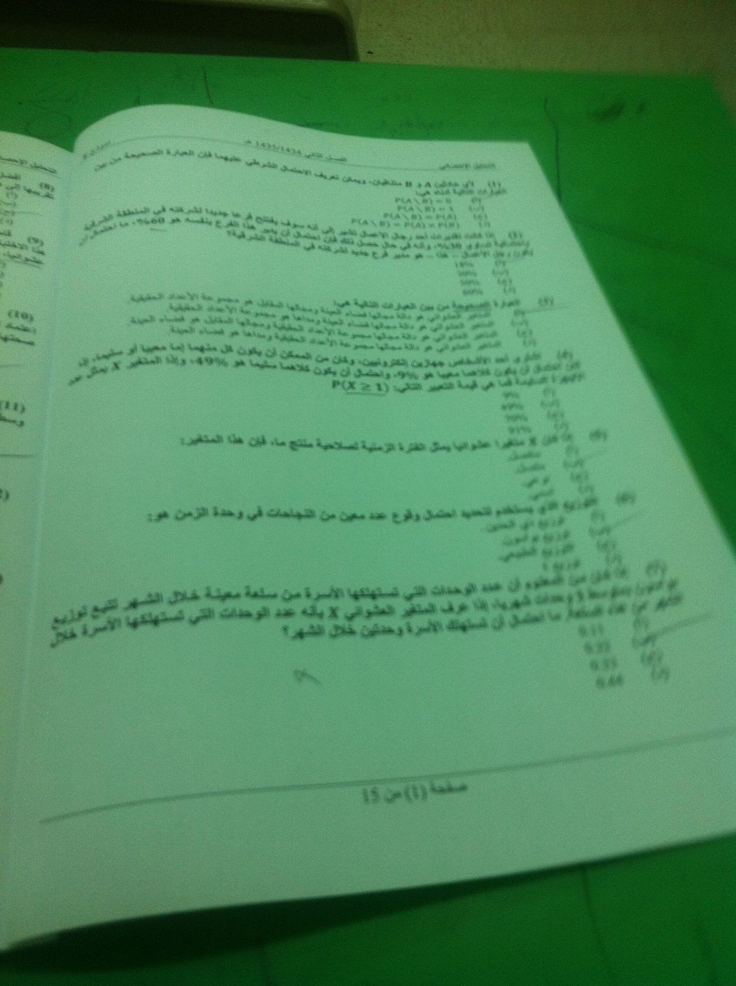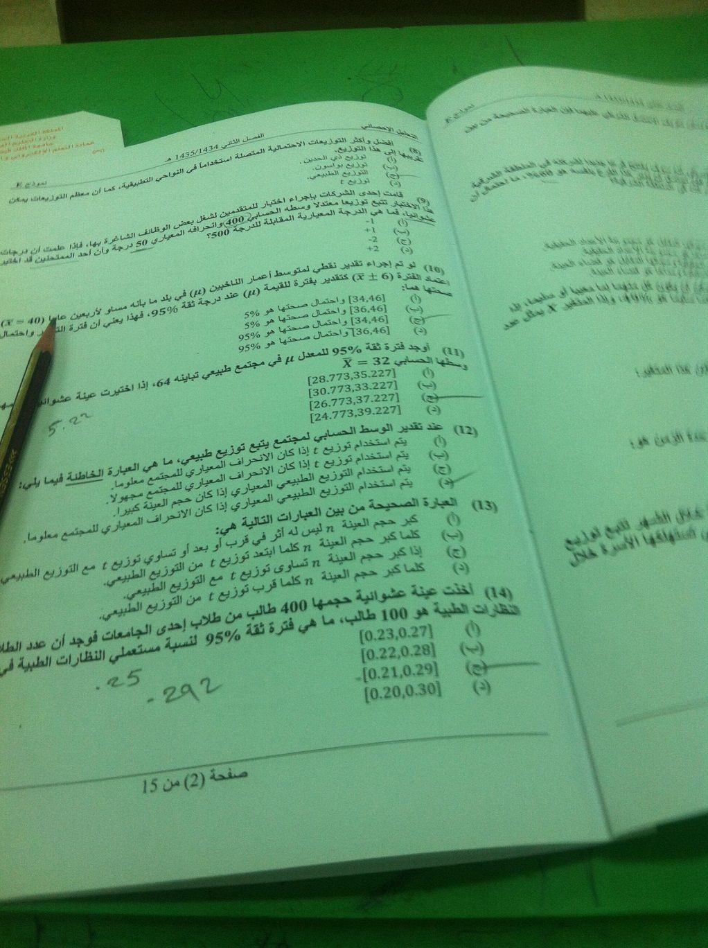 اسئلة اختبار مادة التحليل الإحصائي الفصل الثاني 1435هـ نموذج (e)