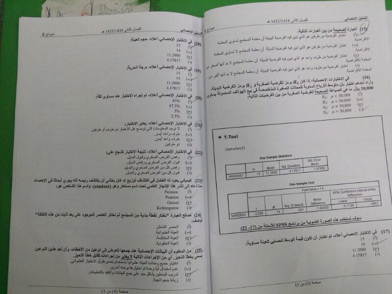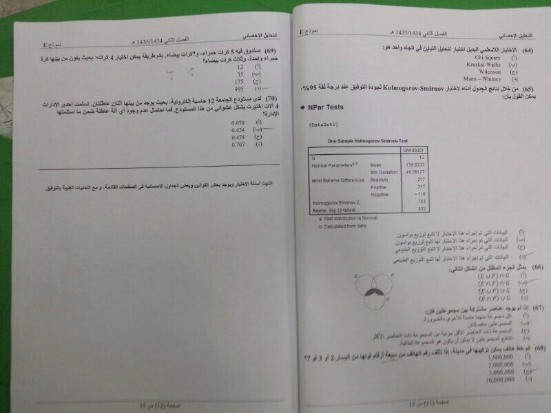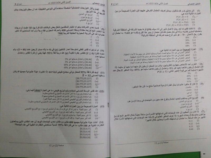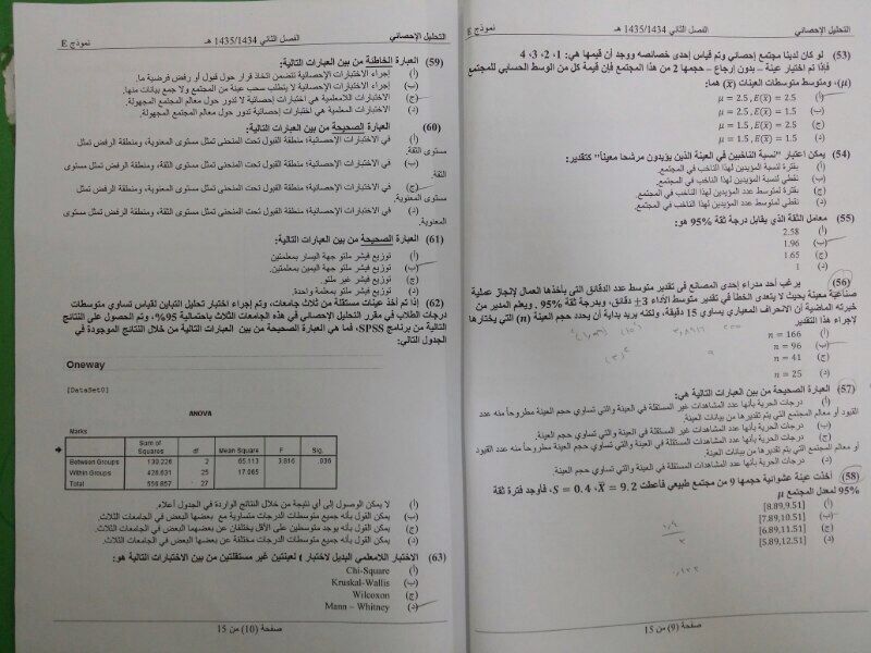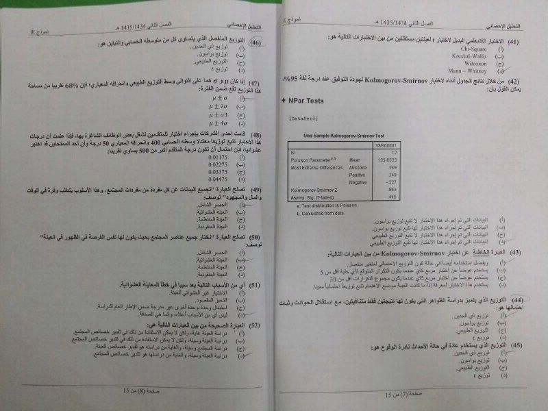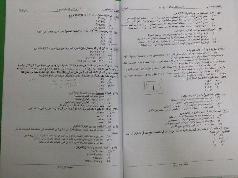 اسئلة اختبار مادة التحليل الإحصائي الفصل الدراسي الثاني 1435هـ نموذج (e)