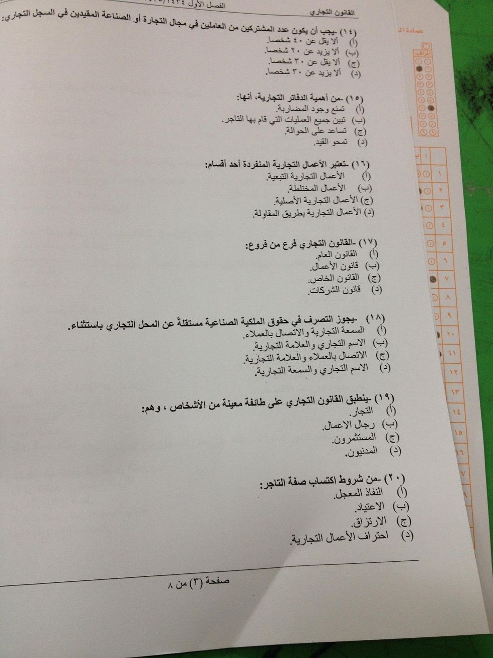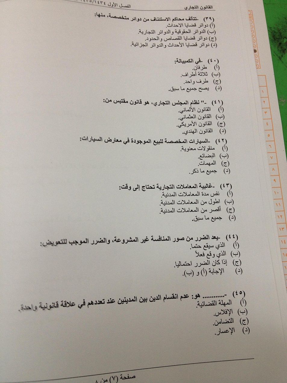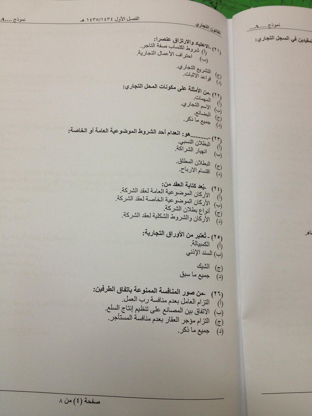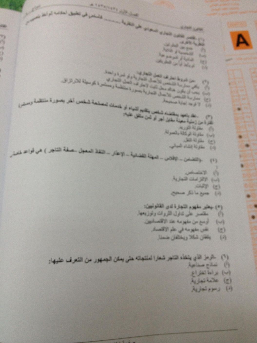 اسئلة اختبار مادة القانون التجاري الفصل الدراسي الأول 1435هـ نموذج (a)