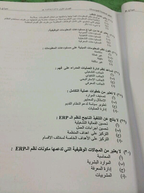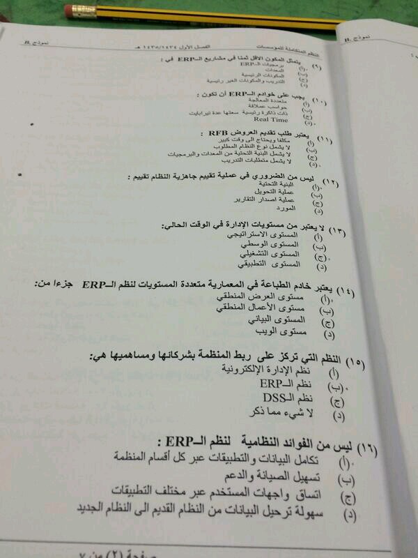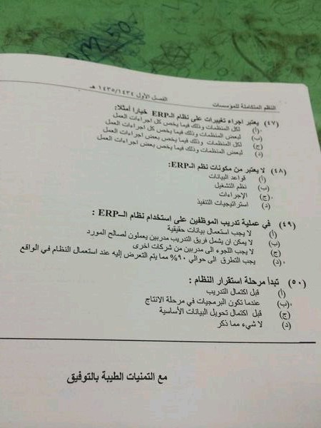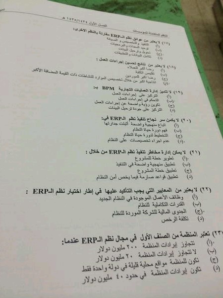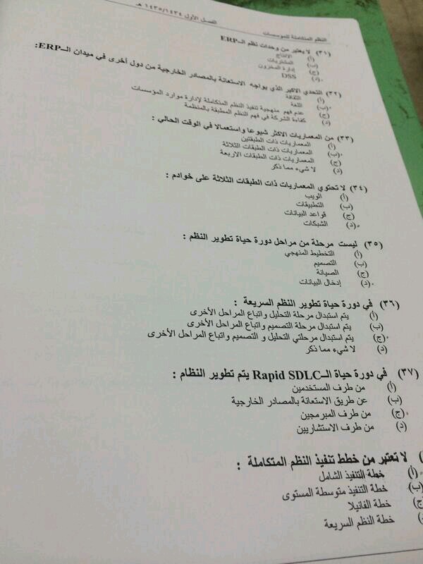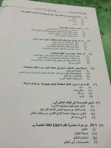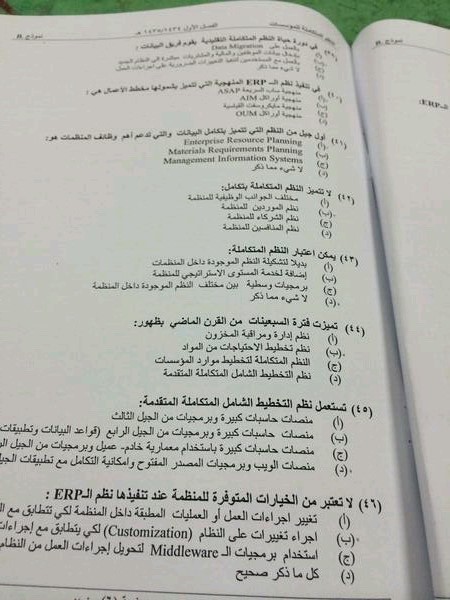 اسئلة اختبار مادة النظم المتكاملة للمؤسسات الفصل الدراسي الأول 1435هـ نموذج (b)