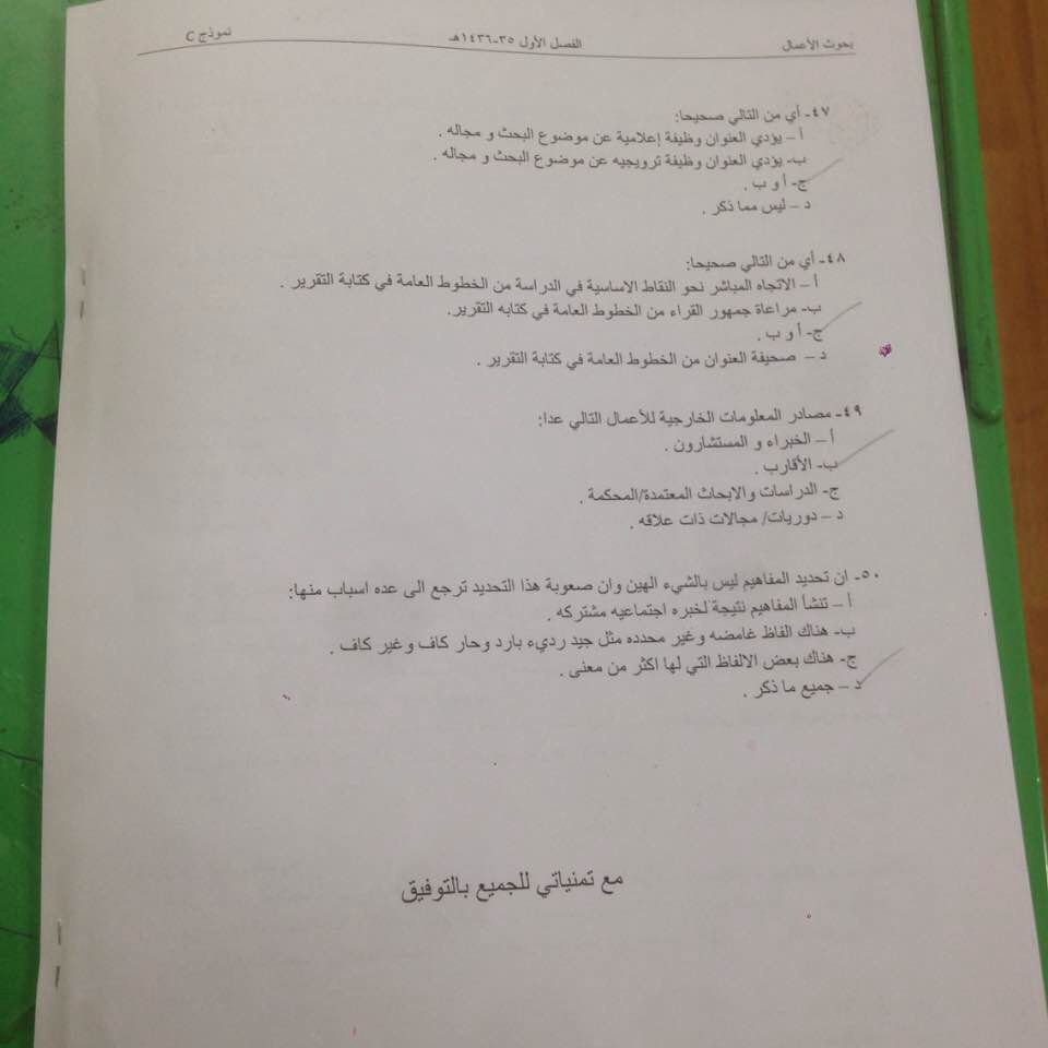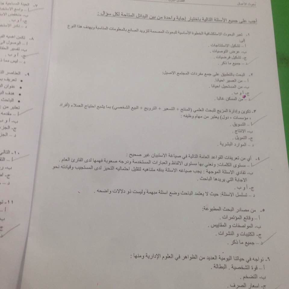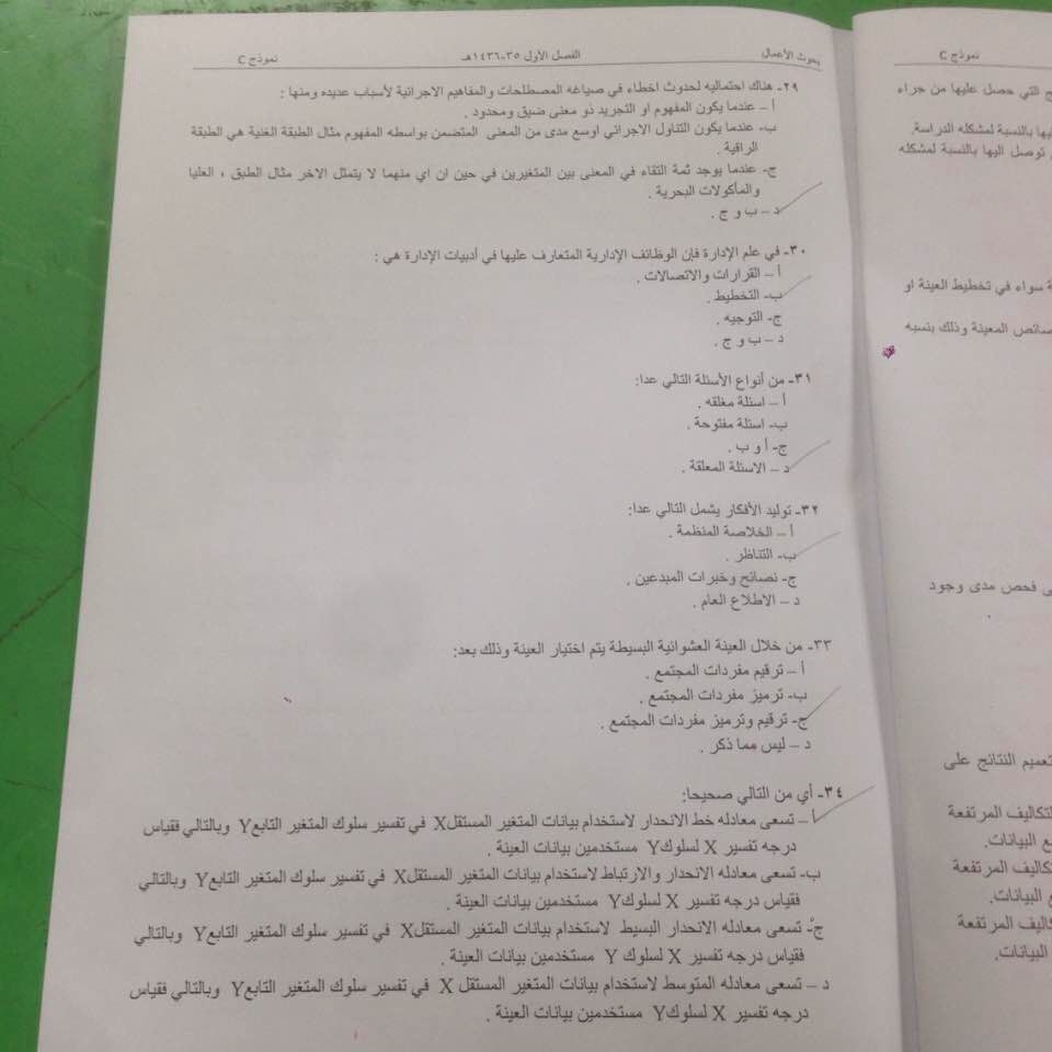 اسئلة اختبار مادة بحوث الأعمال الفصل الدراسي الأول 1435هـ نموذج (b)