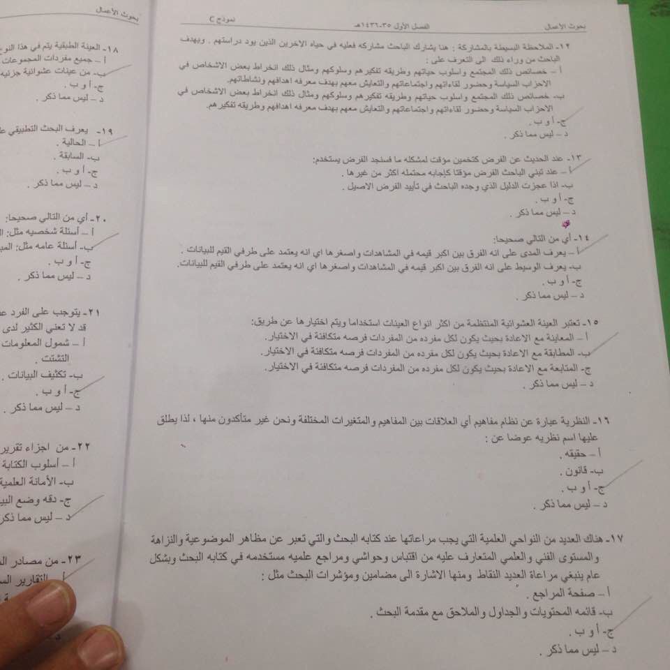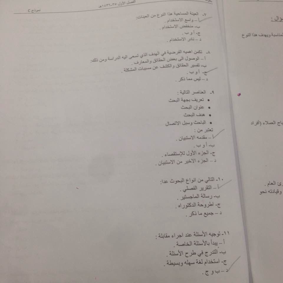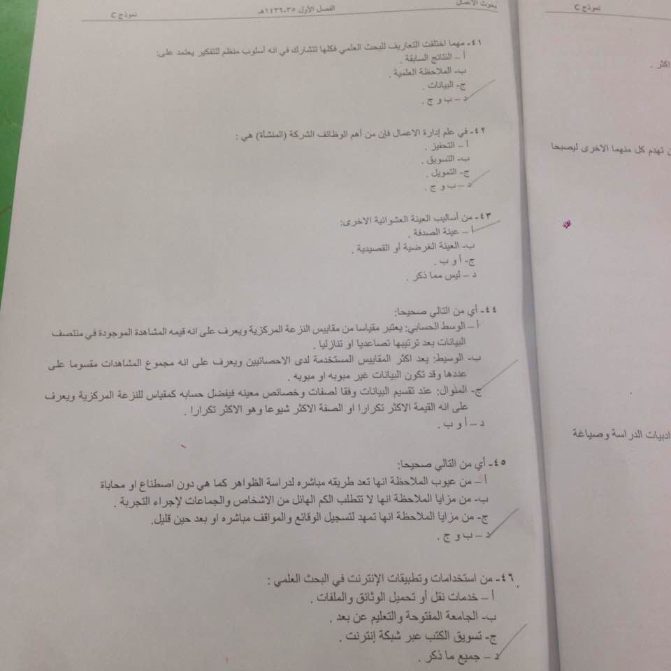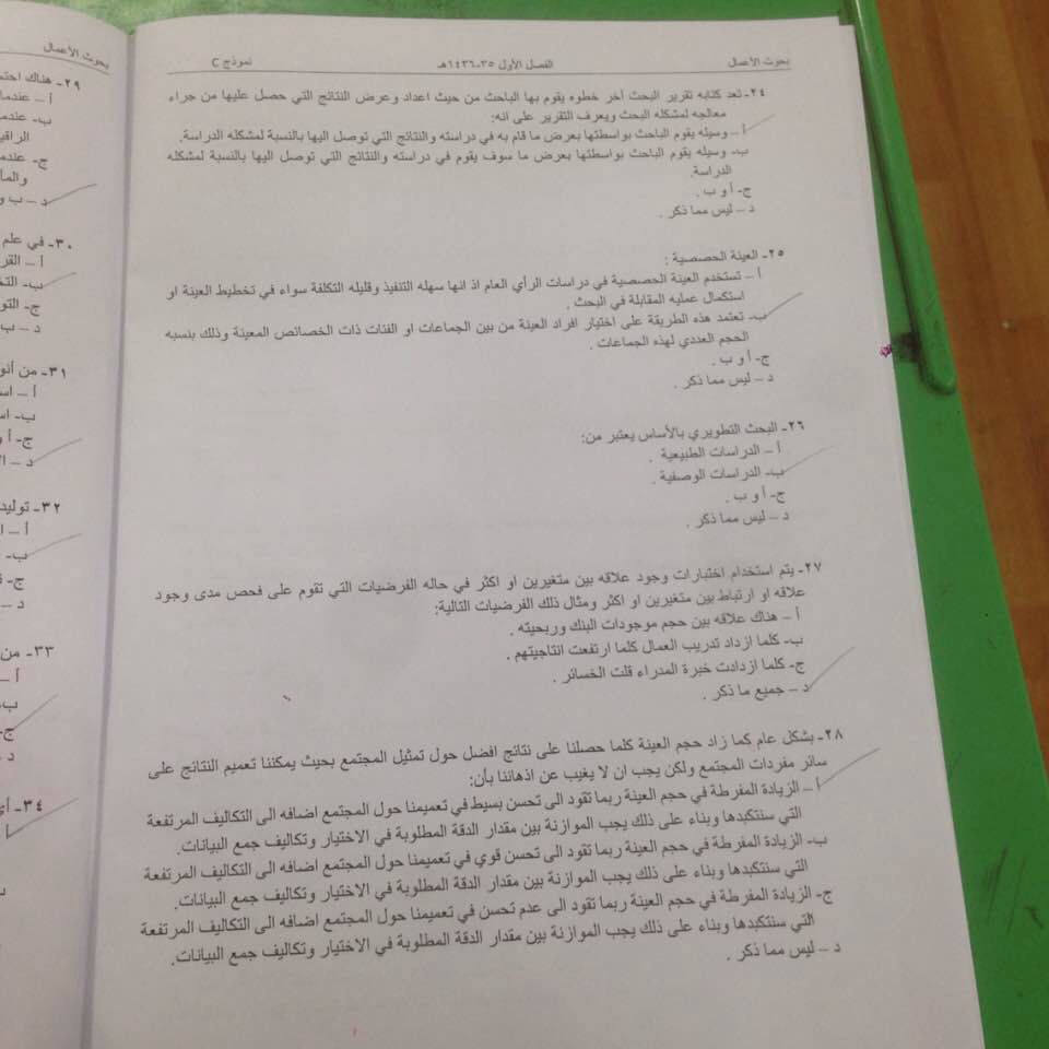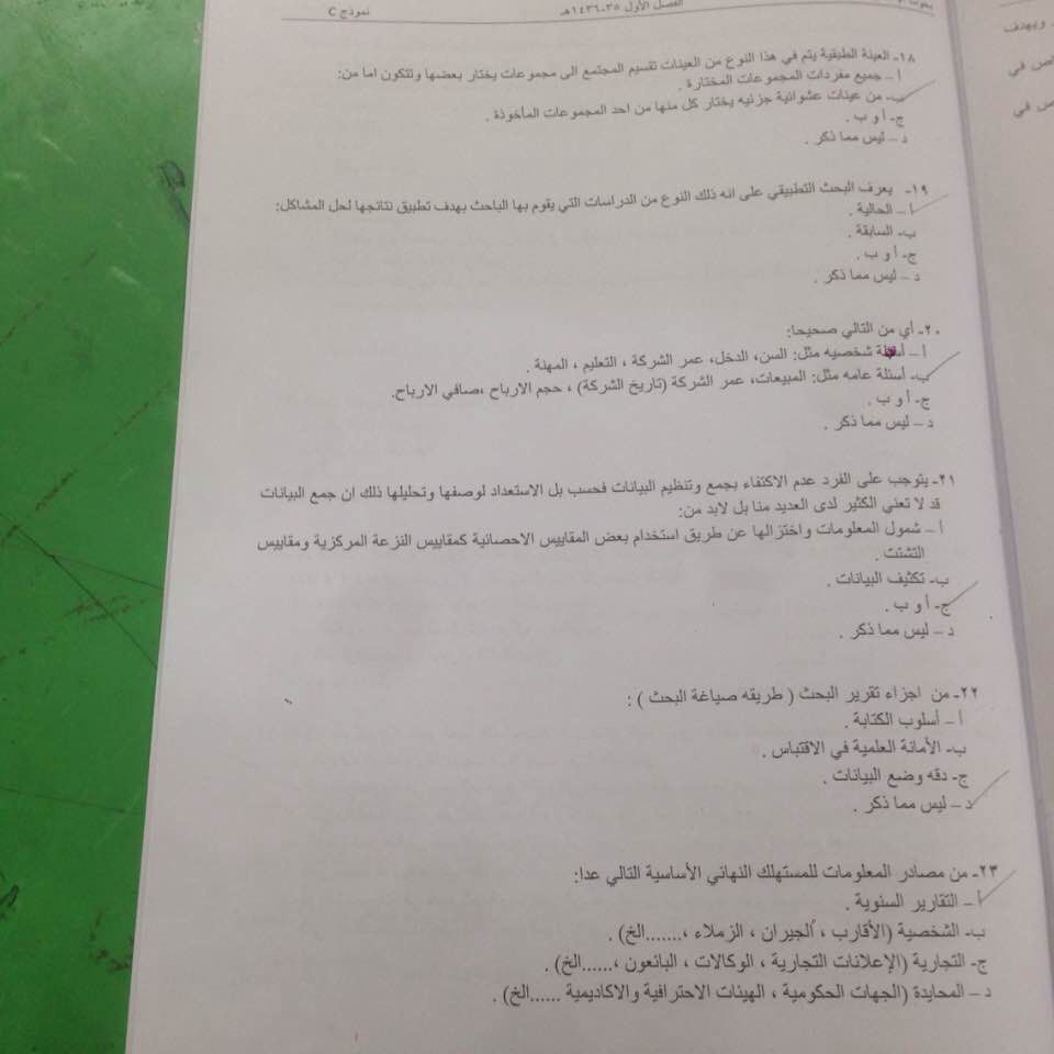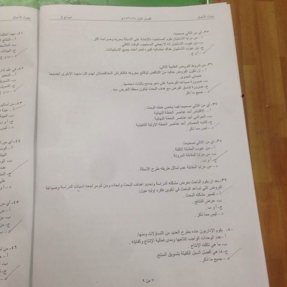 اسئلة اختبار بحوث الأعمال الفصل الدراسي الأول 1436هـ نموذج (C)