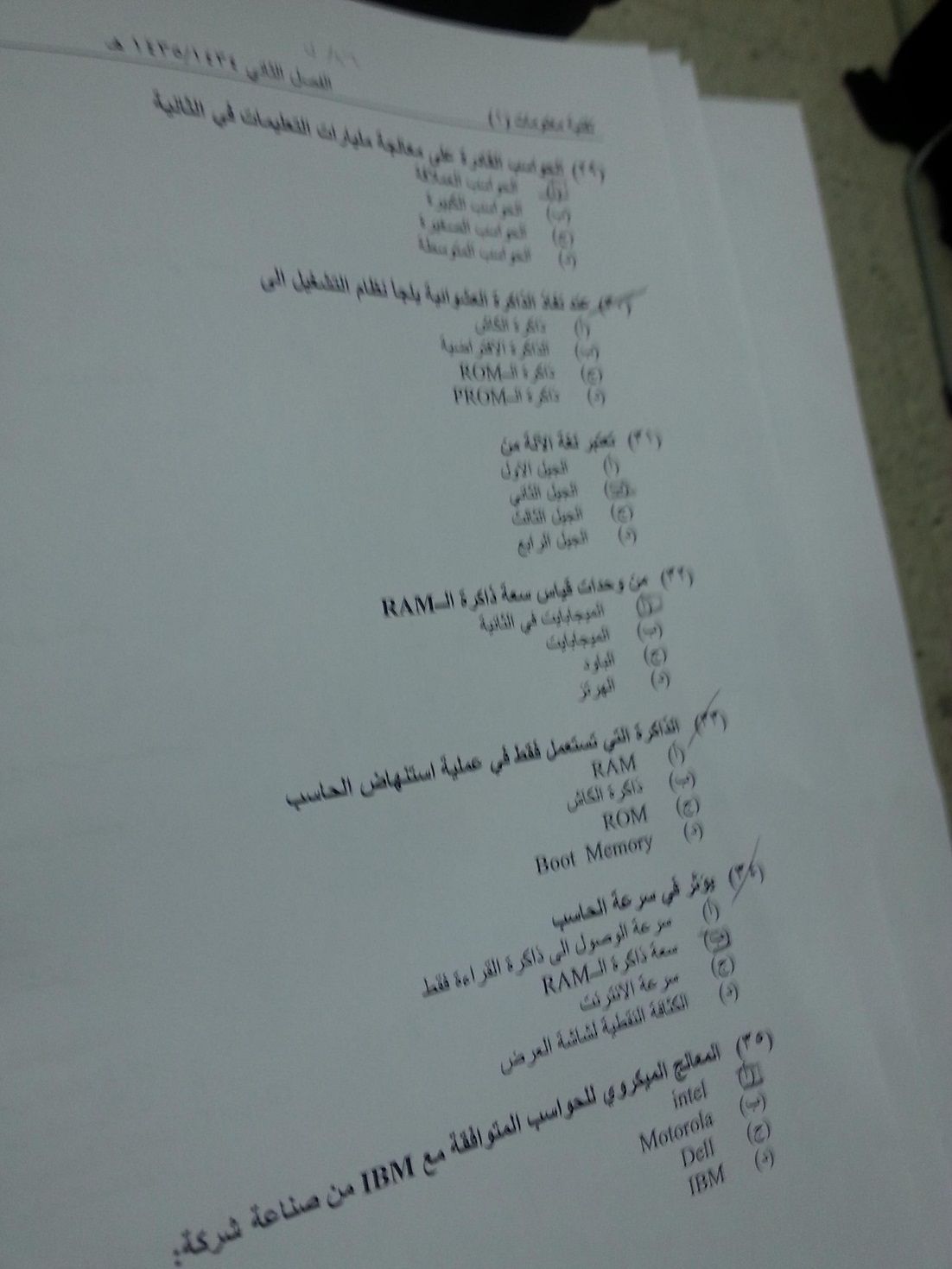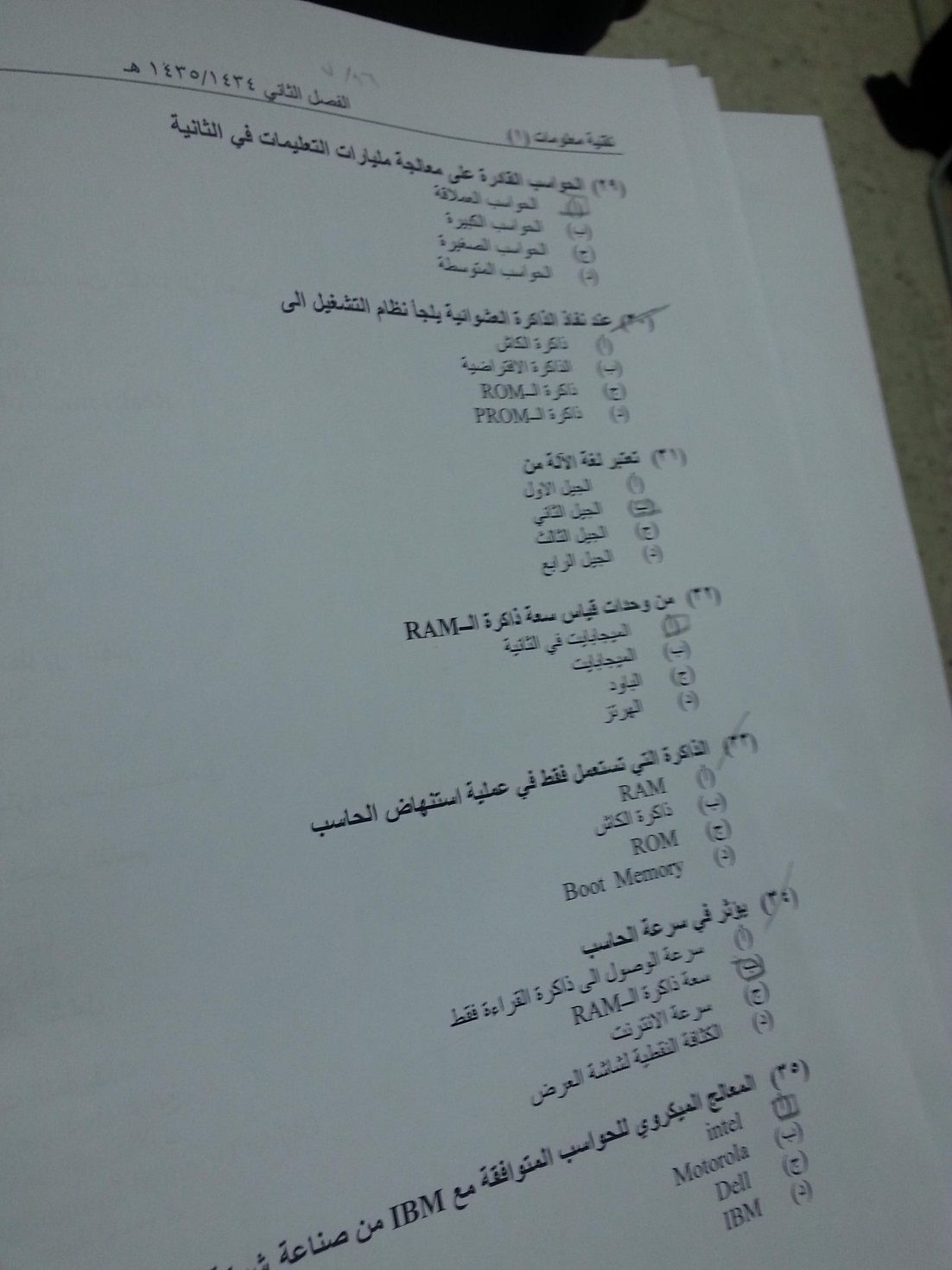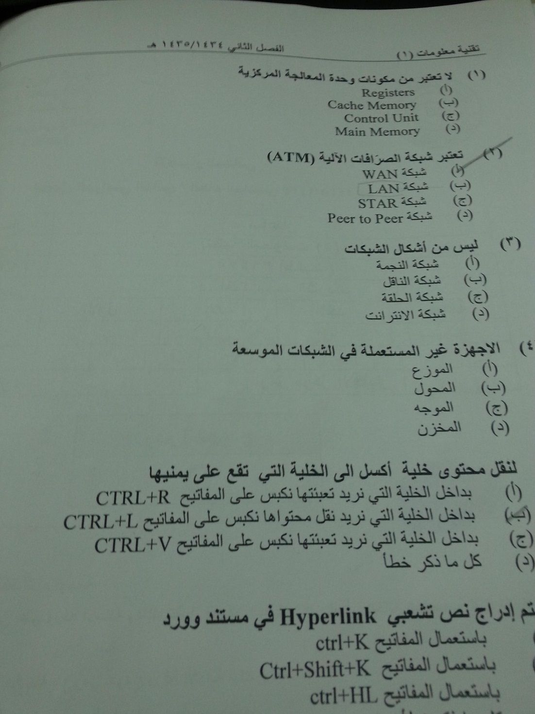 اسئلة اختبار مادة تقنية المعلومات 1 الفصل الدراسي الثاني 1435هـ نموذج (d)