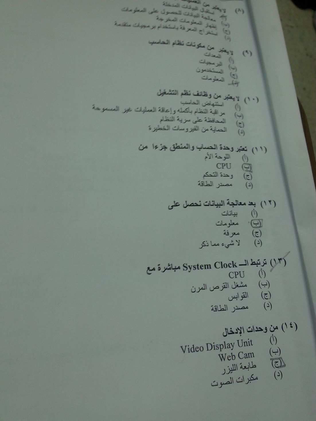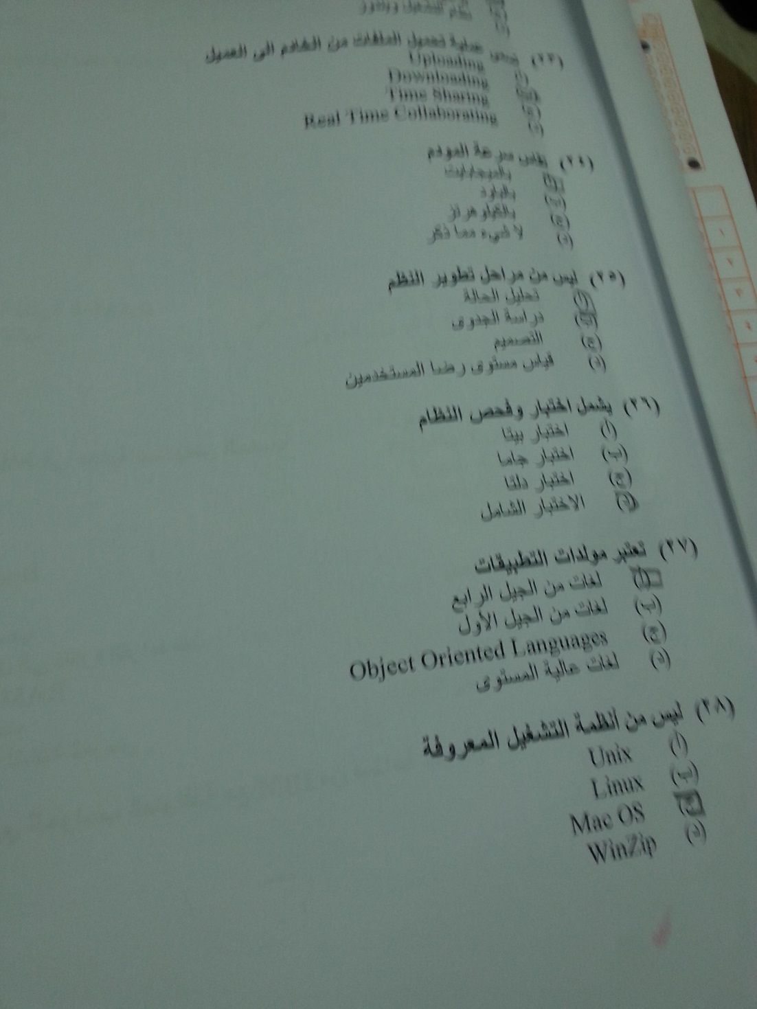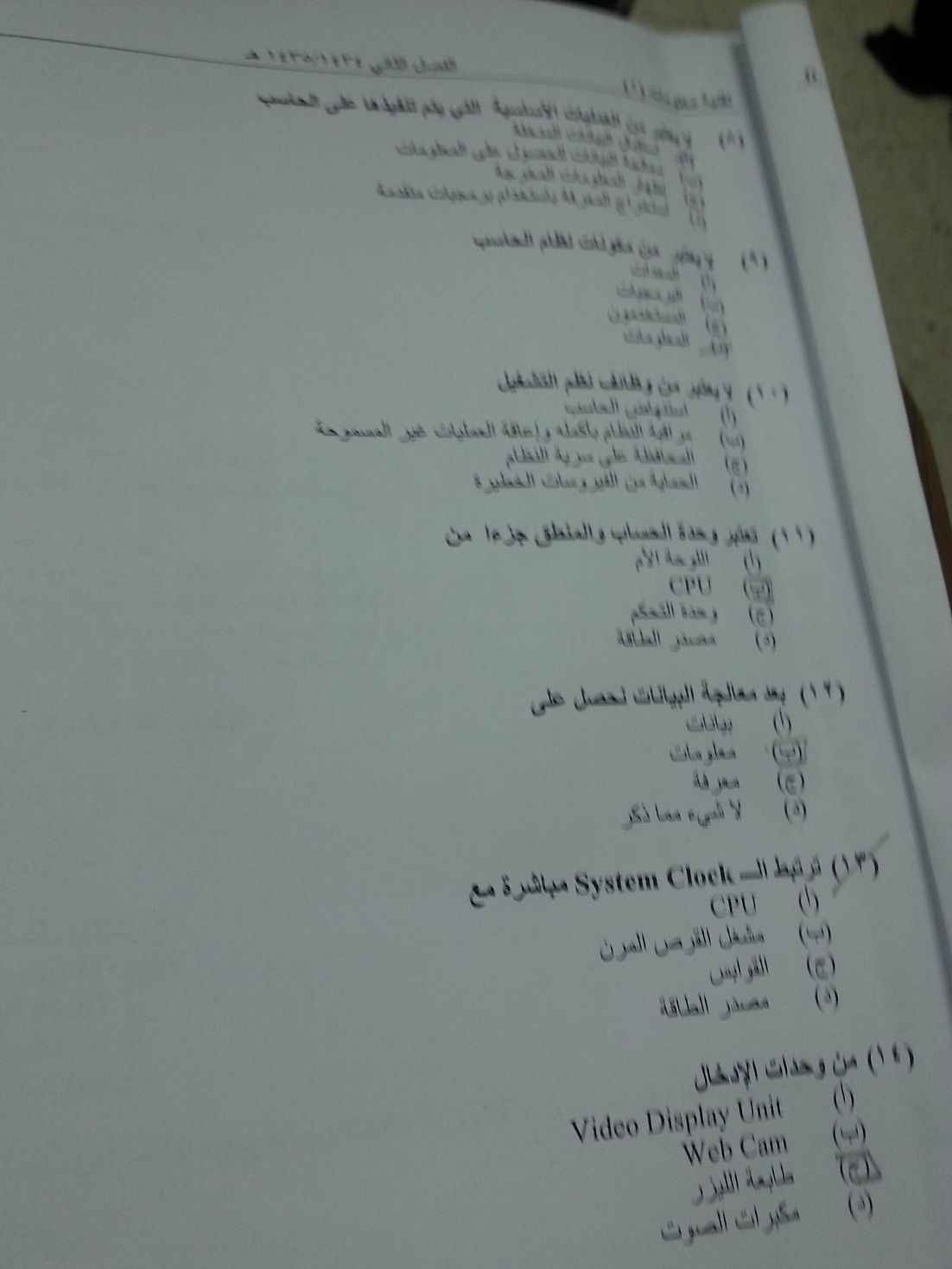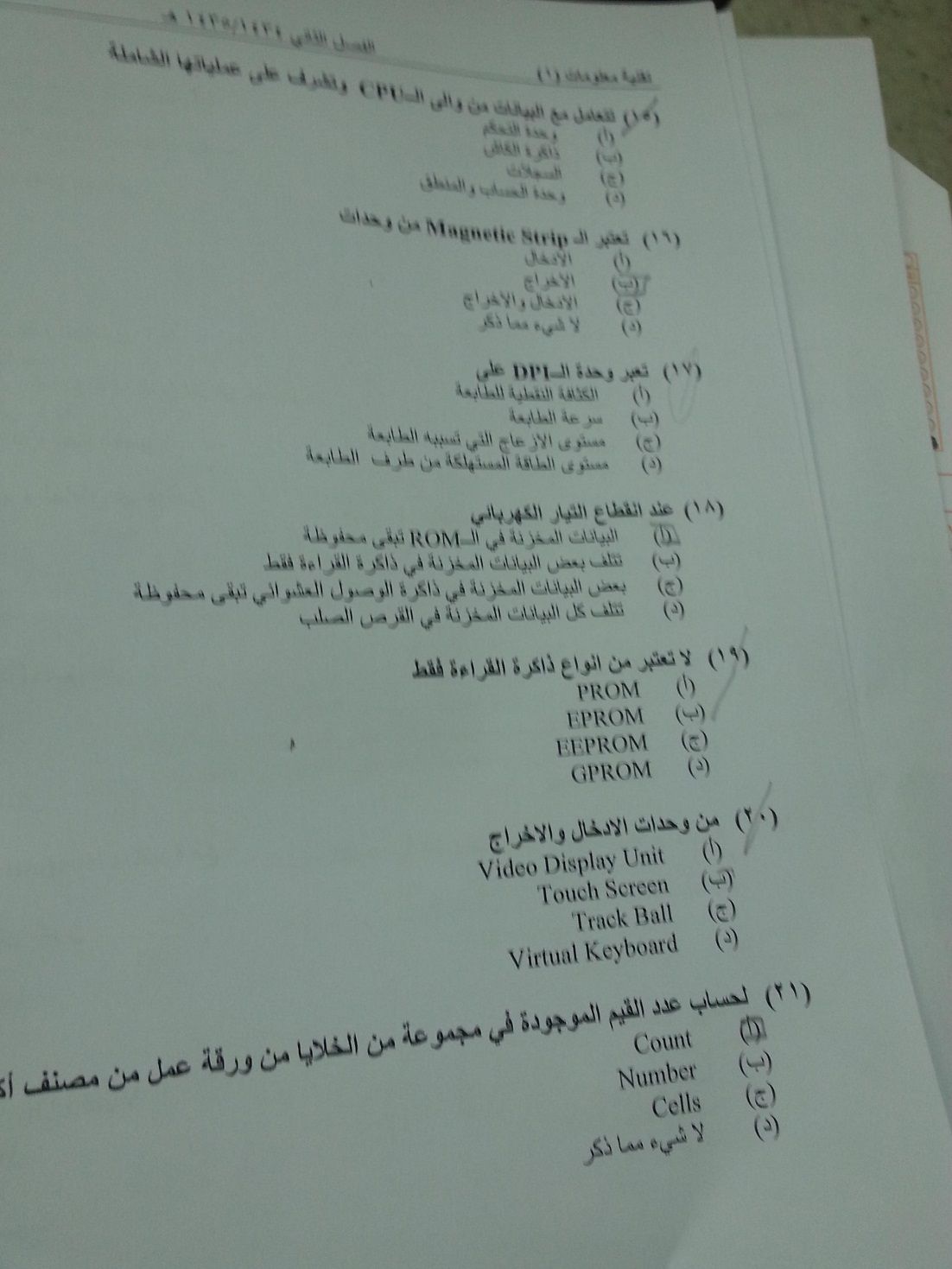 اسئلة اختبار مادة تقنية المعلومات 1 الفصل الدراسي الثاني 1435هـ نموذج (d)