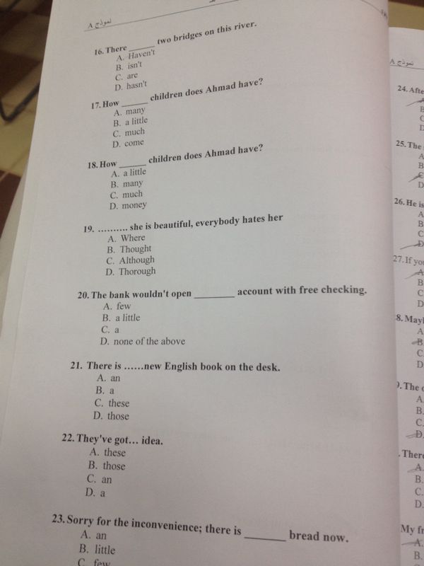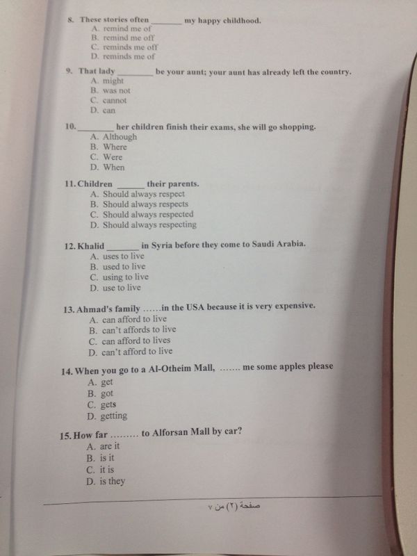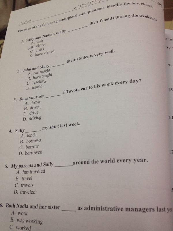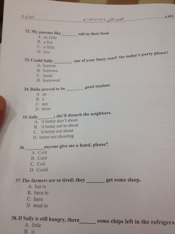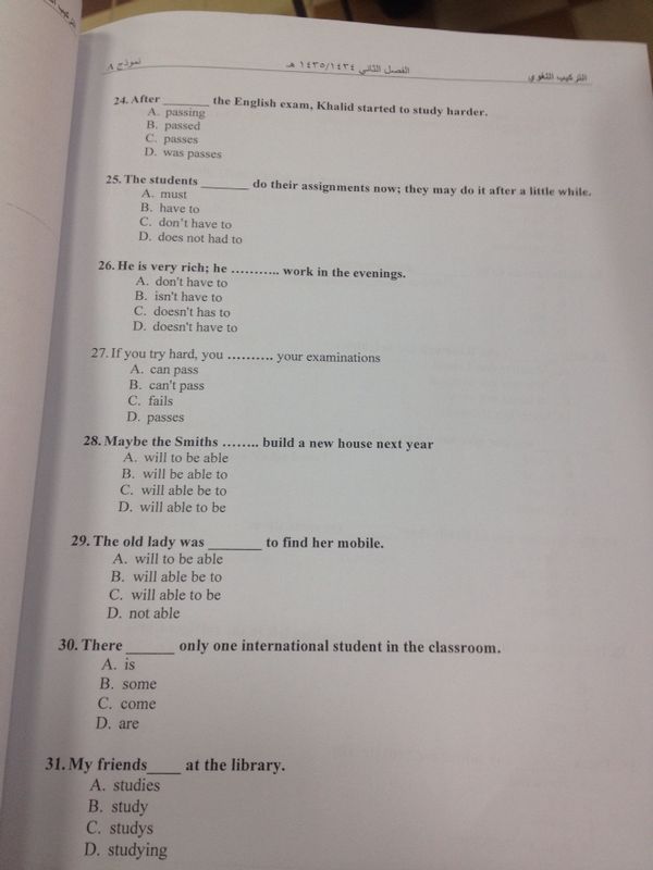 اسئلة اختبار مادة التركيب اللغوي الفصل الدراسي الثاني 1435هـ نموذج (a)