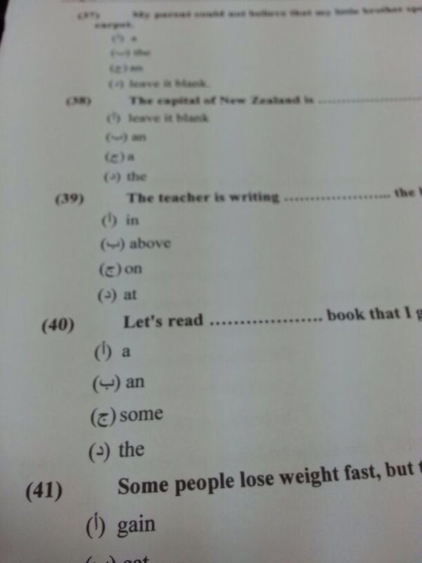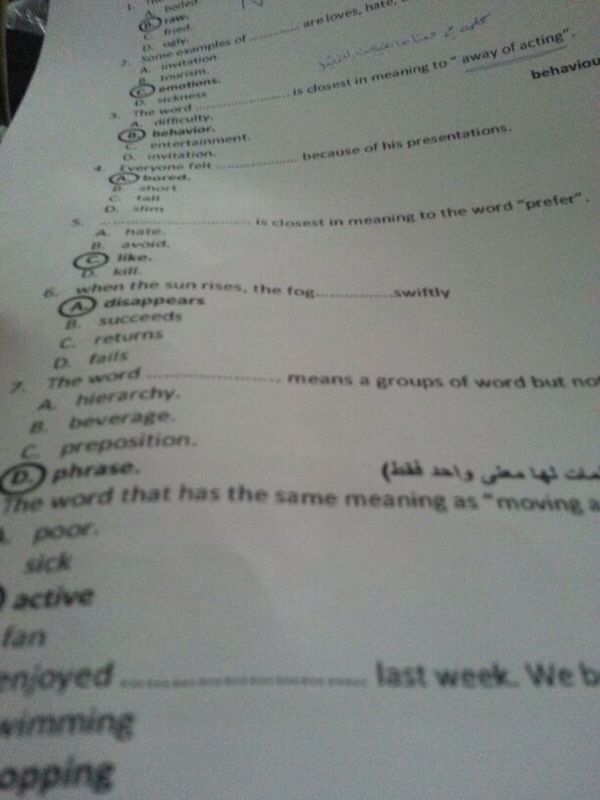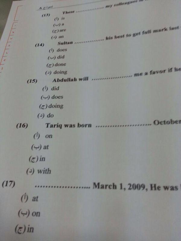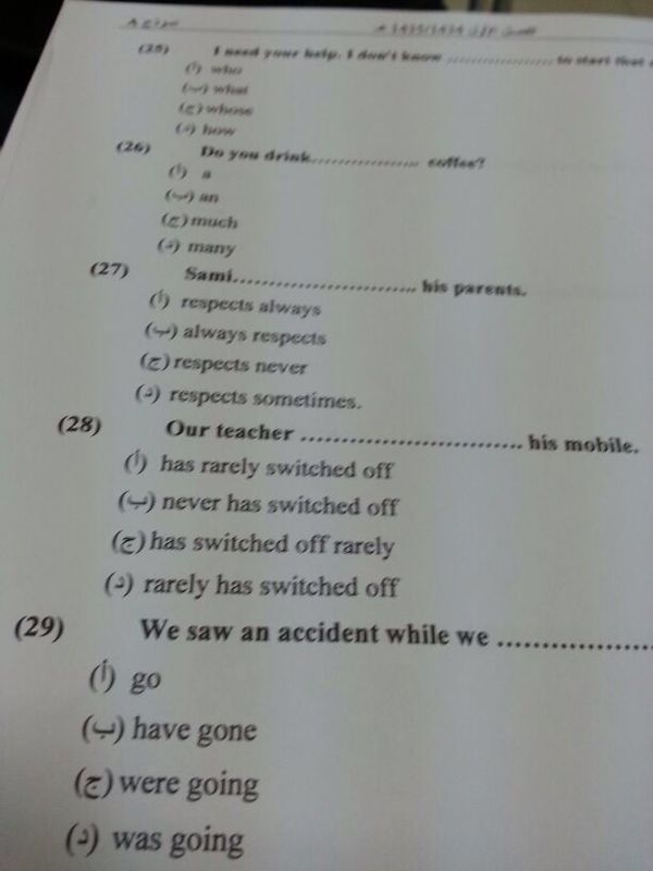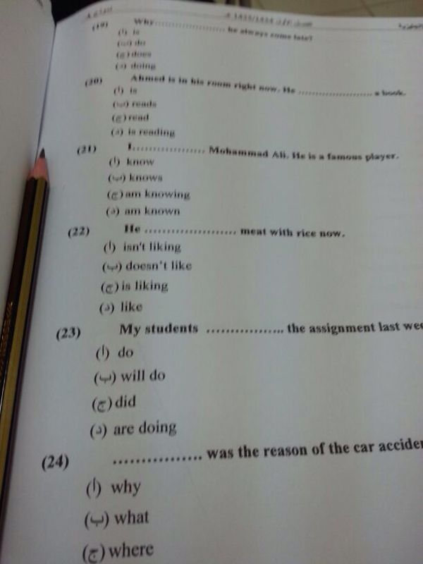 اسئلة اختبار مادة اللغة الإنجليزية الفصل الأول 1435هـ نموذج (a)