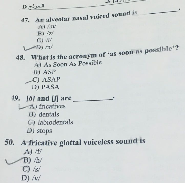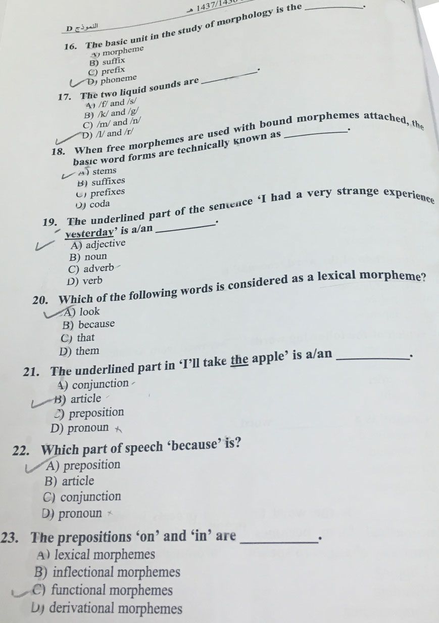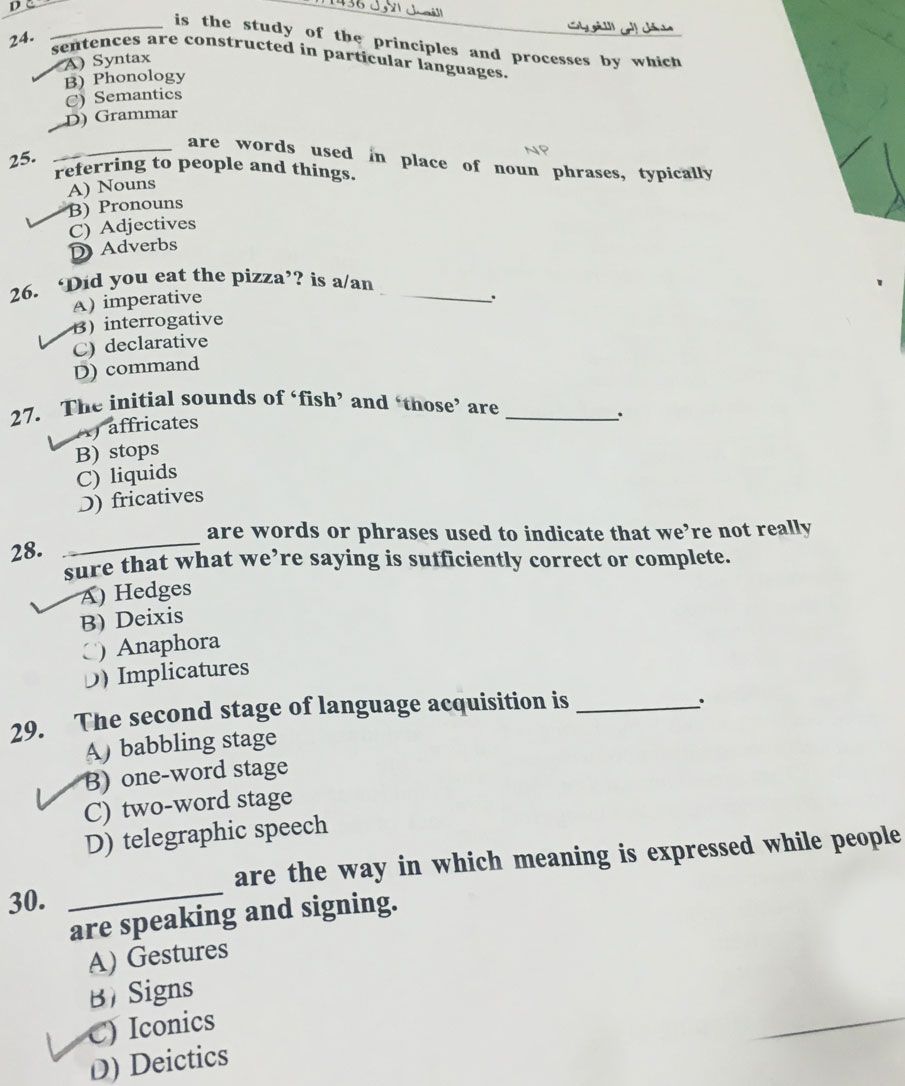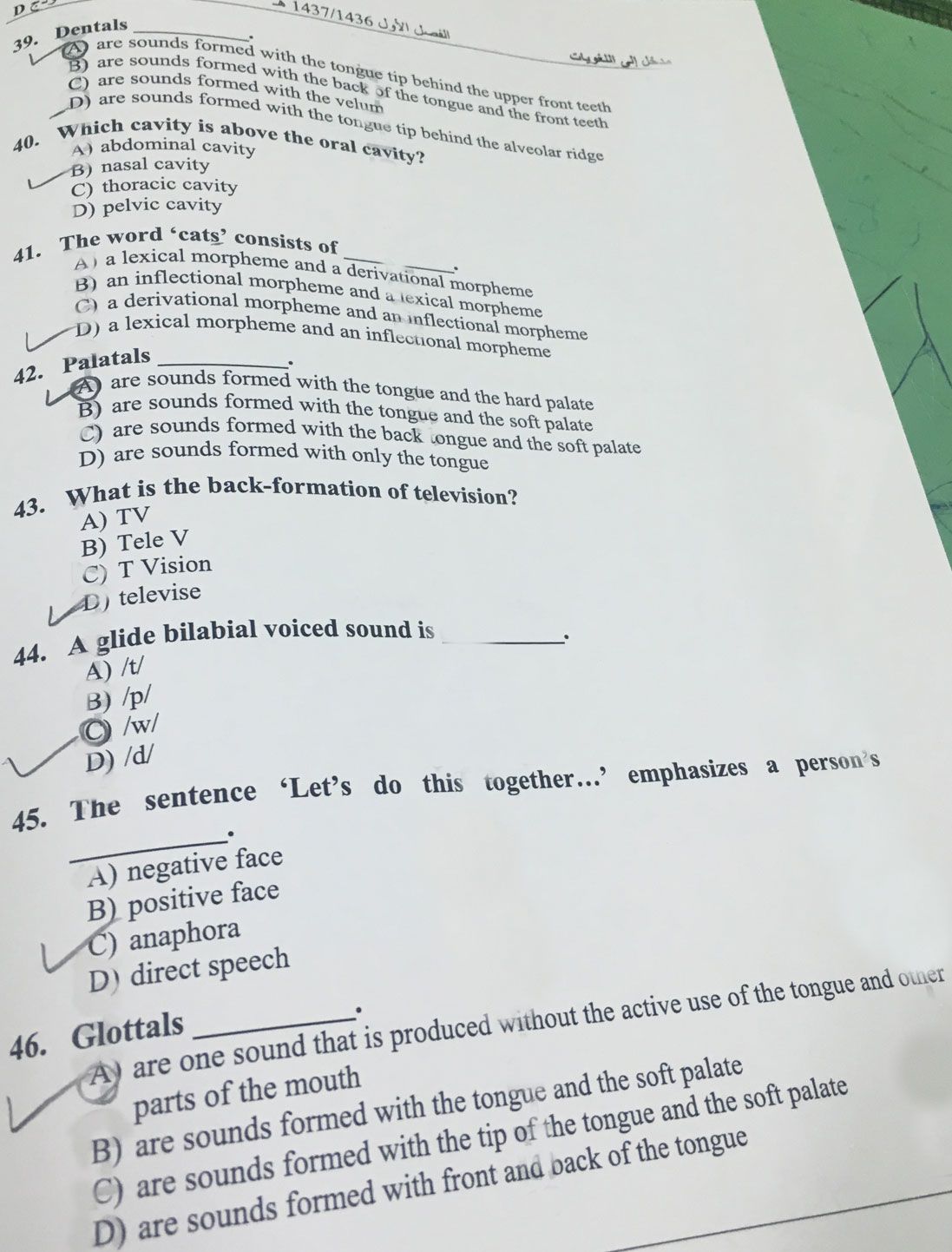 اختبار مدخل إلى اللغويات الفصل الأول 1437هـ نموذج D